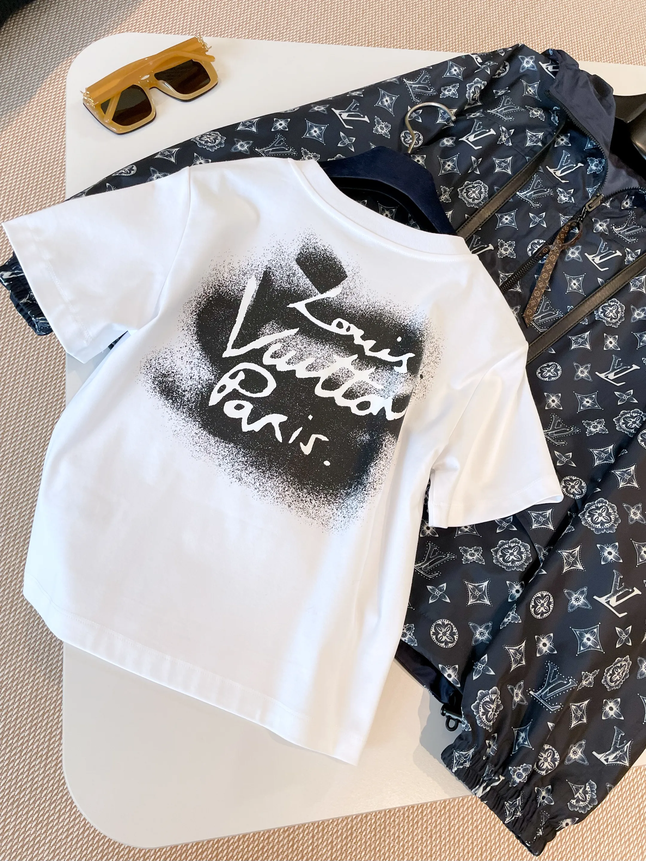 Эта белоснежная трикотажная футболка – яркий акцент для вашего весенне-летнего гардероба. Сделанная из мягкого хлопкового трикотажа, она элегантно облегает фигуру, подчеркивая силуэт. Современный вырез горловины украшен стильной цепочкой LV, добавляя нотку роскоши. Особую изюминку придает задняя часть футболки, украшенная эффектным граффити-логотипом Louis Vuitton Paris, выполненным методом напыления.