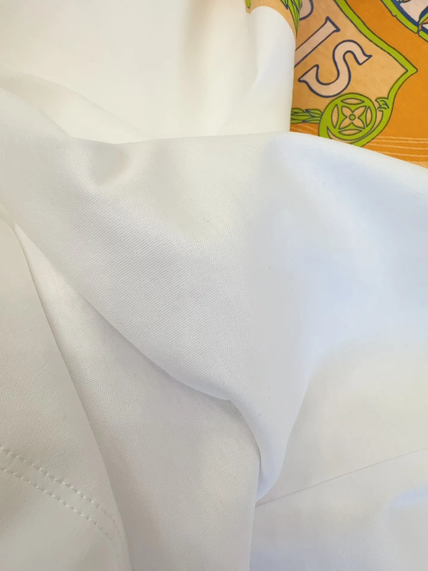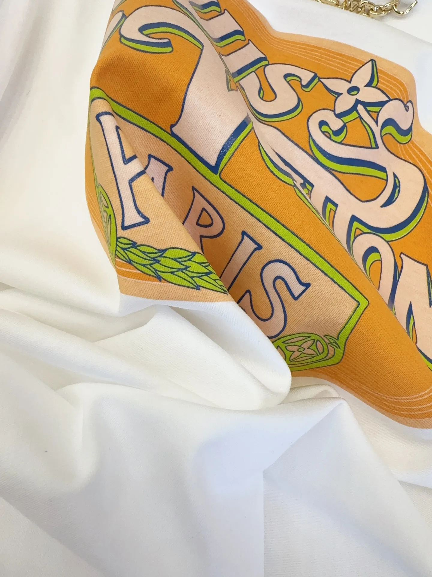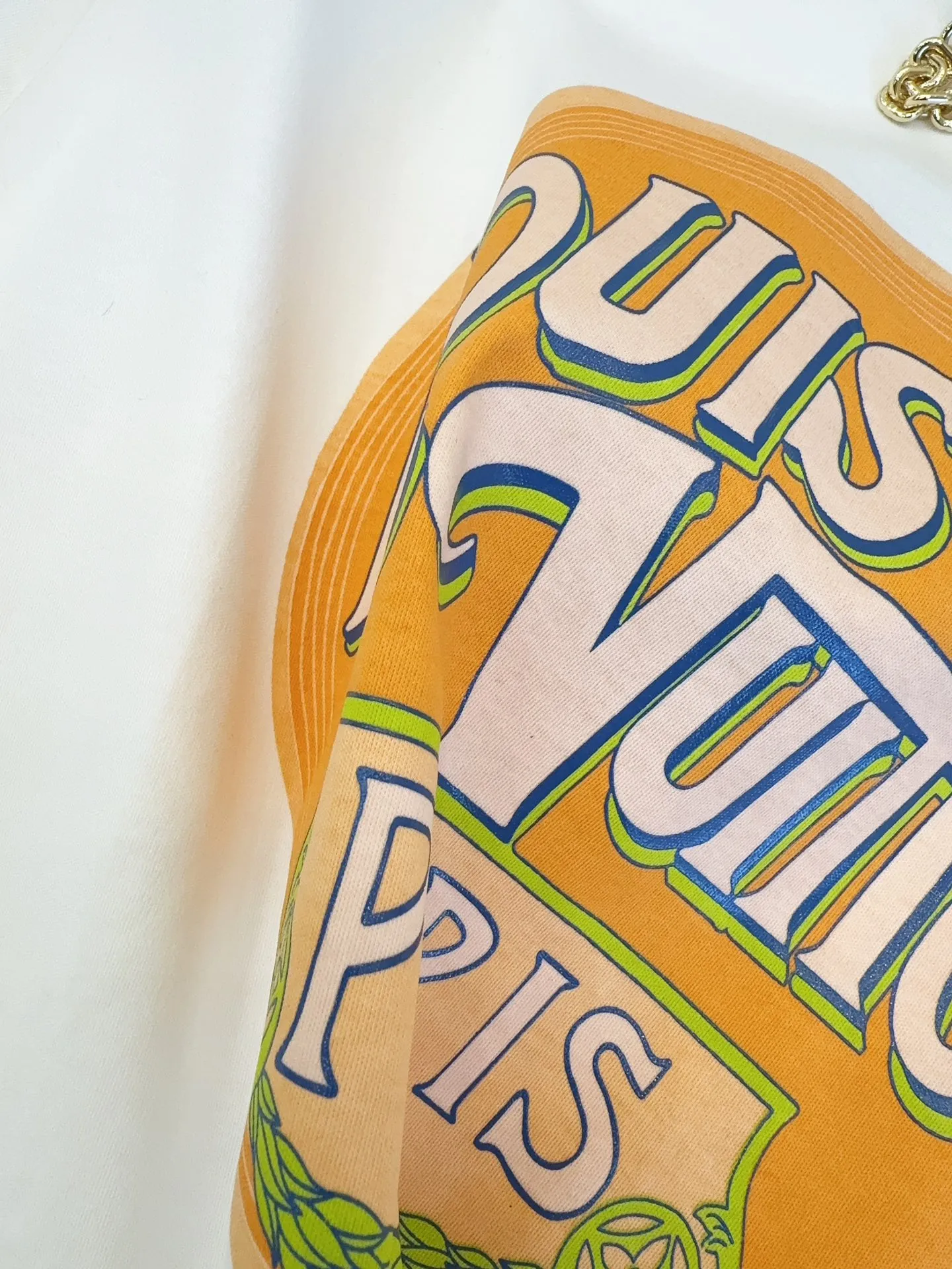 Подчеркните свой стиль с новой футболкой LV2025. Дерзкий принт в виде штампа с надписью на груди приковывает взгляды и подчеркивает вашу индивидуальность. Цепочка с логотипом добавляет изысканный штрих и узнаваемость бренду. Свободный крой с круглым вырезом обеспечивает свободу движений и подходит для любого типа фигуры.
