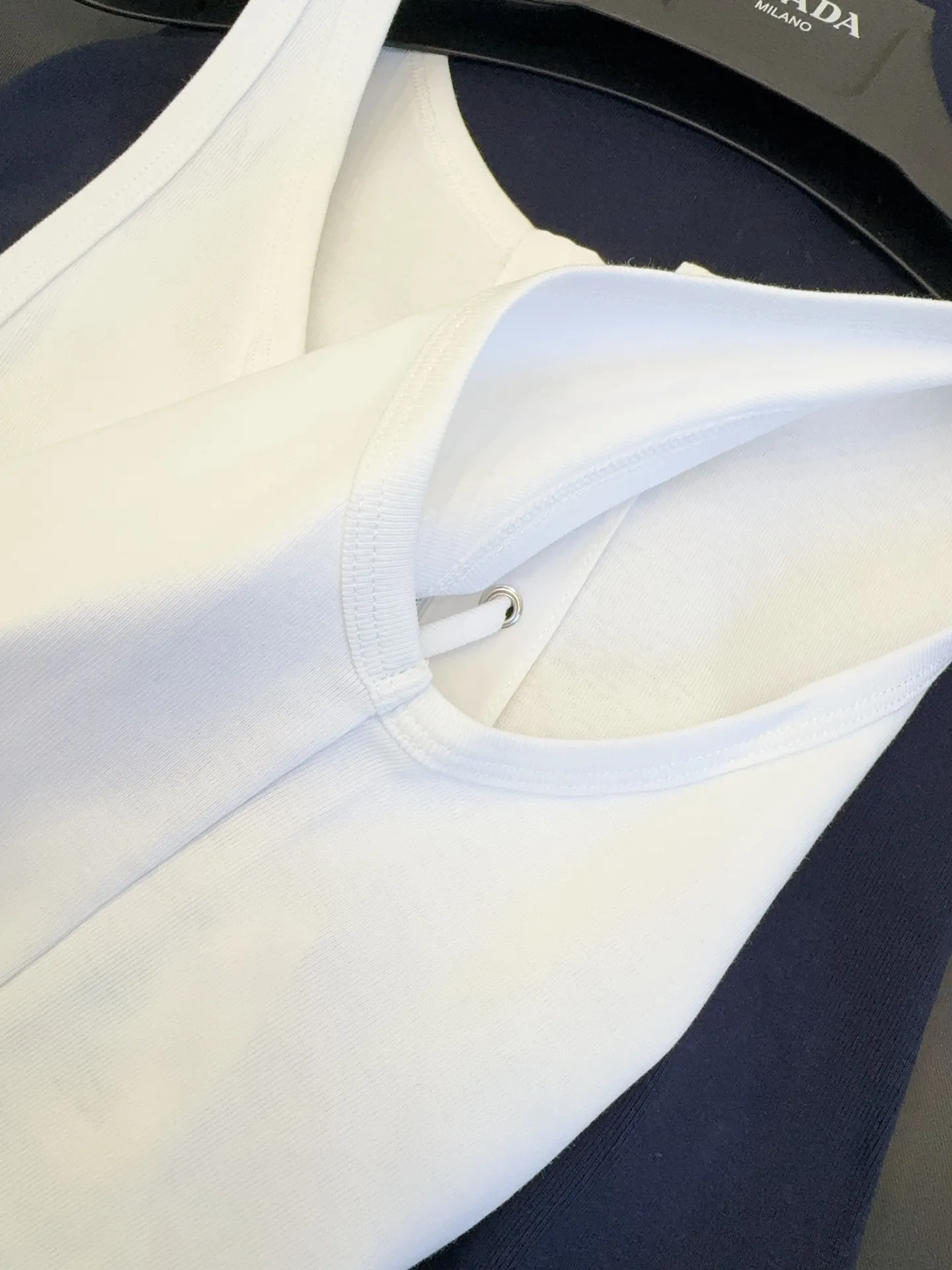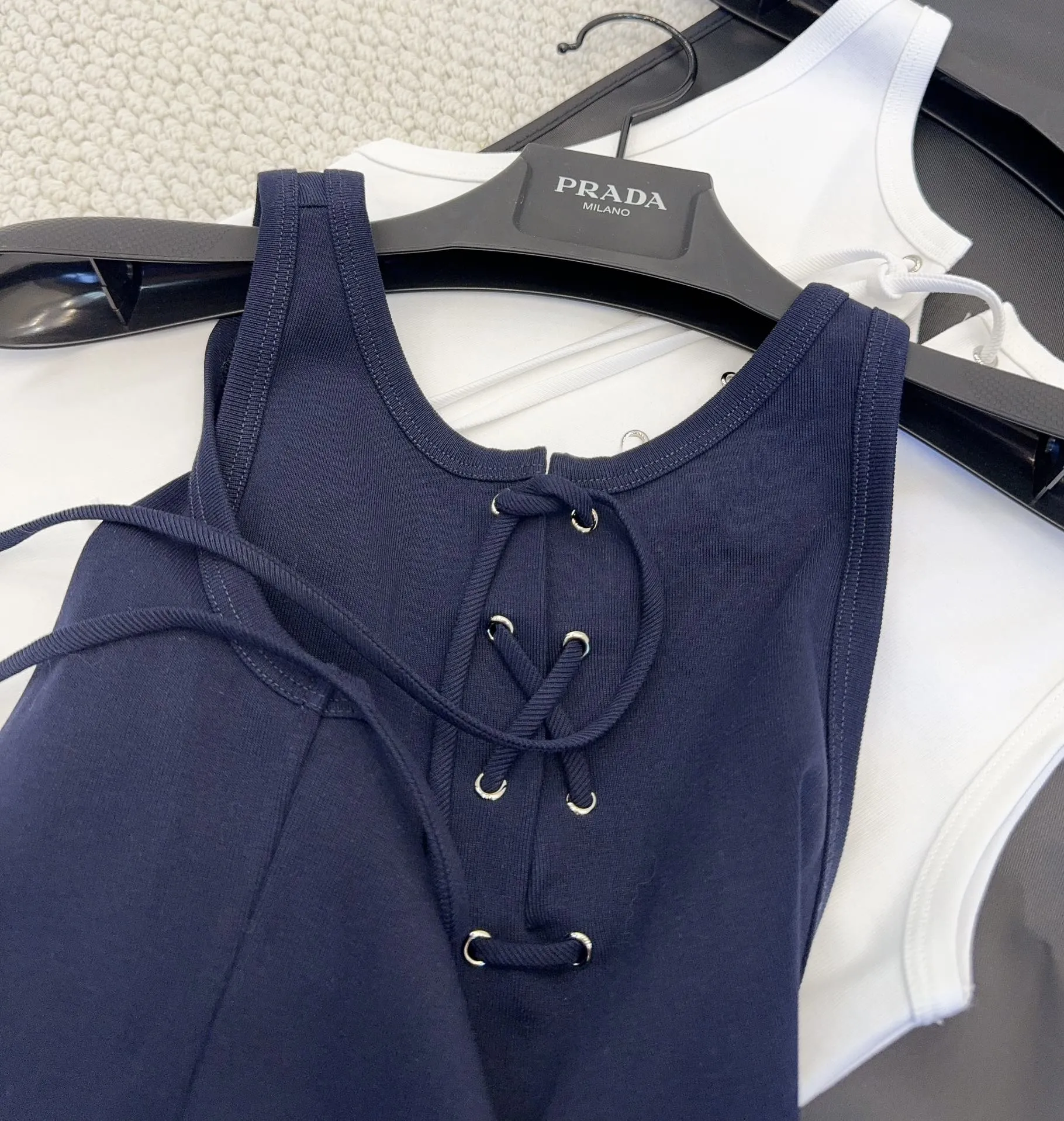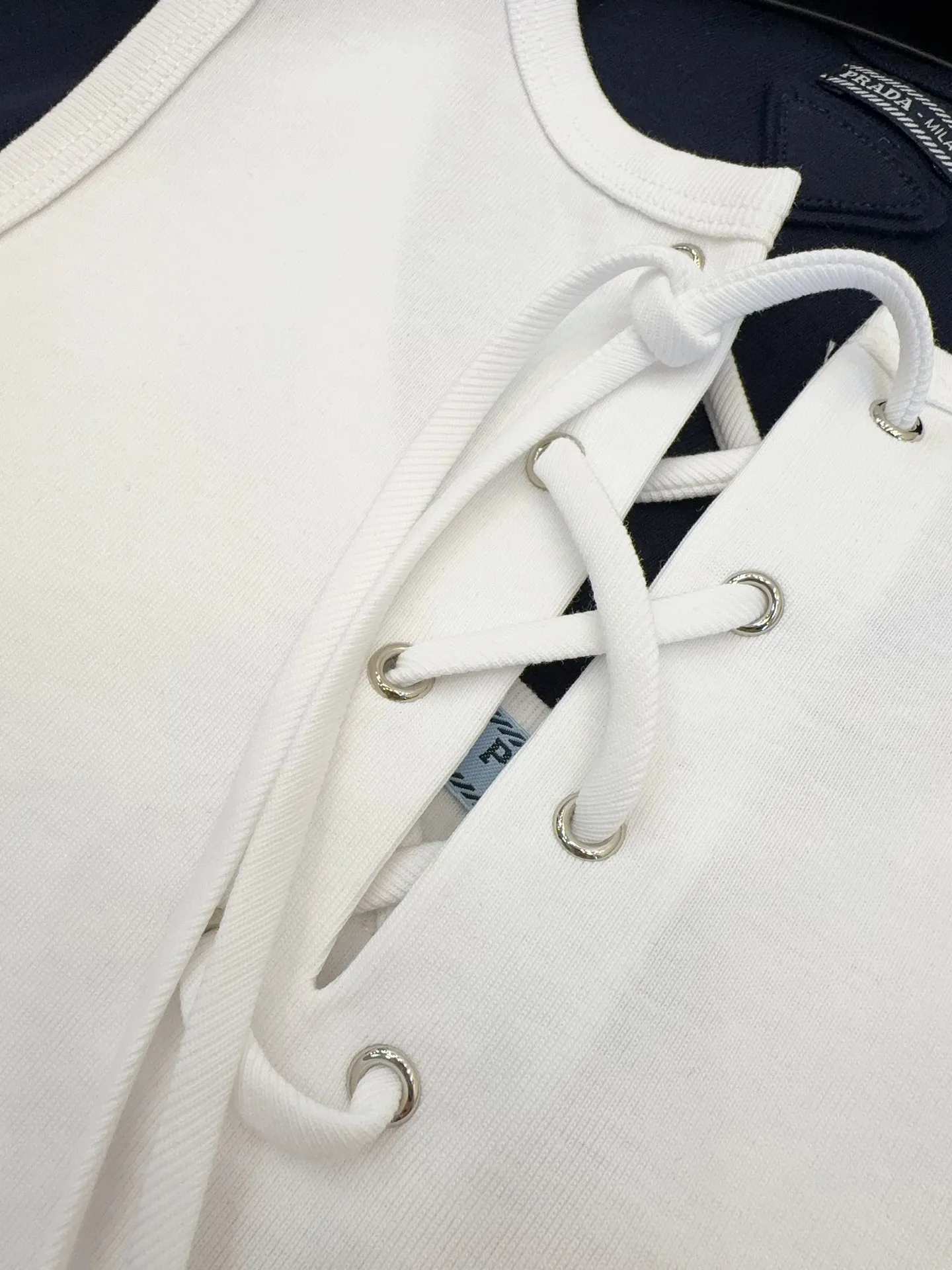 Представляем новый топ Prada 2025 года – воплощение современного стиля и непревзойденного комфорта. Этот топ, выполненный из оригинальной тонкой эластичной ткани в рубчик, приятно удивит вас своей мягкой и эластичной на ощупь текстурой. Особенность этой модели – шнуровка на горловине, позволяющая вам создавать разнообразные образы.