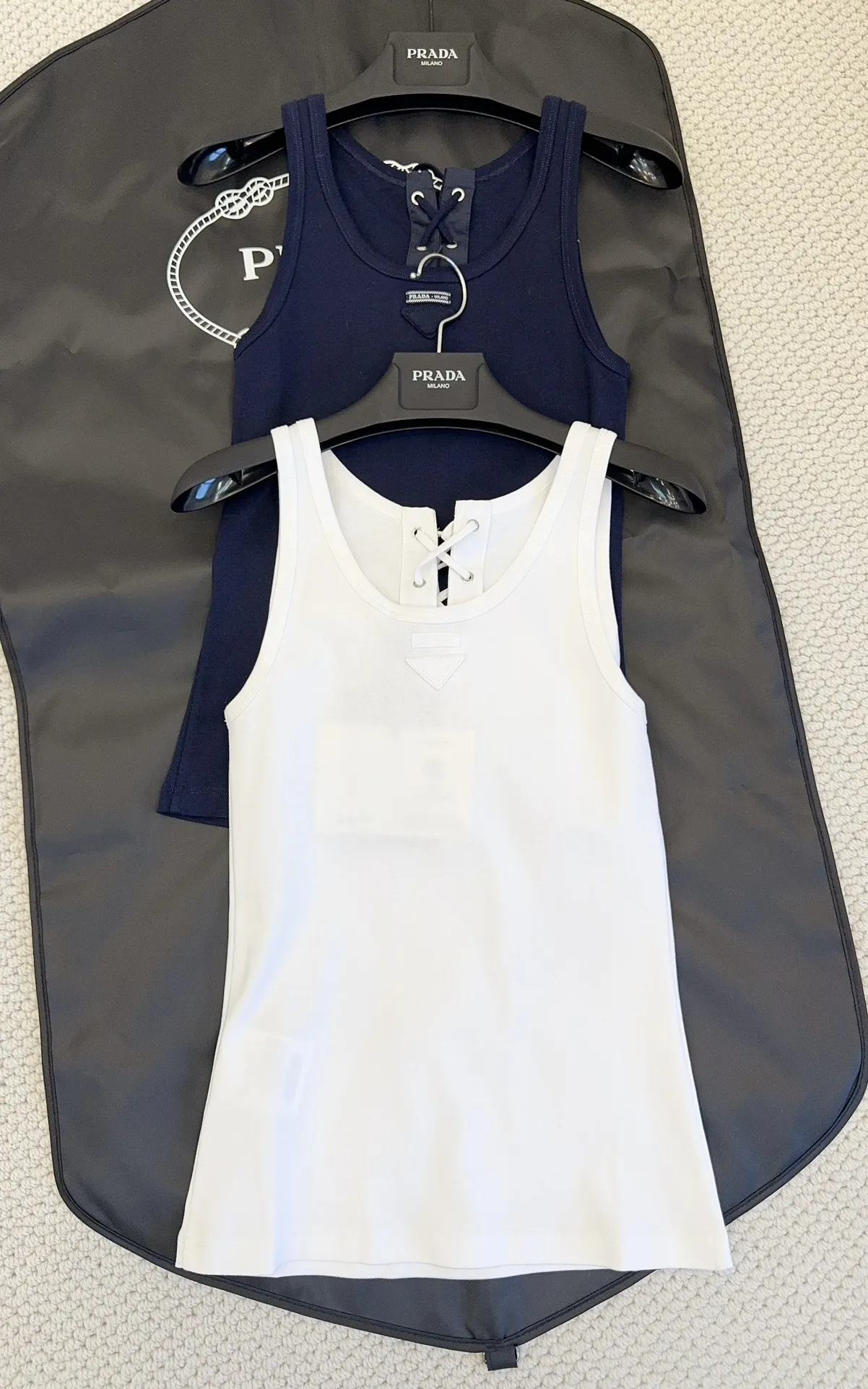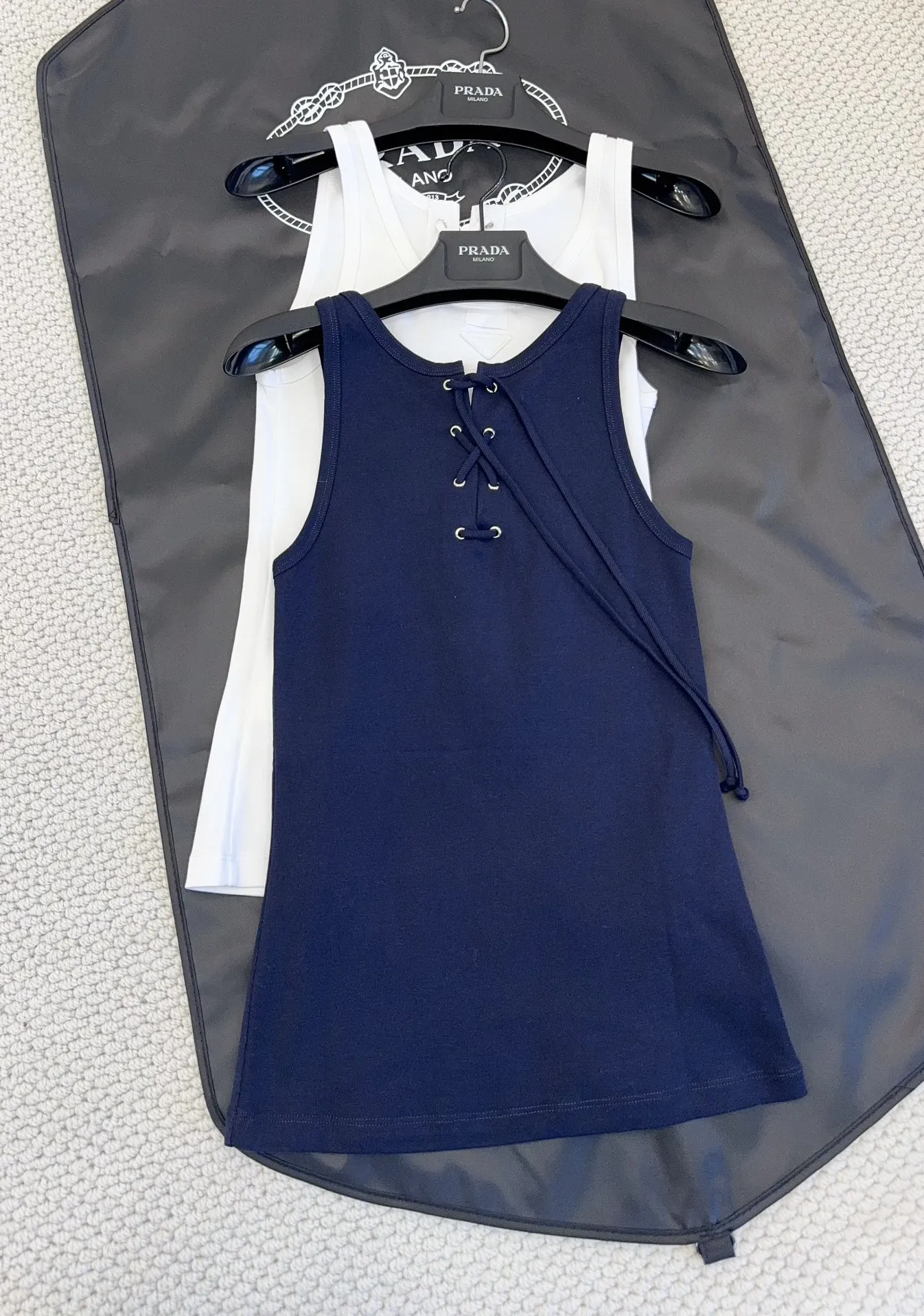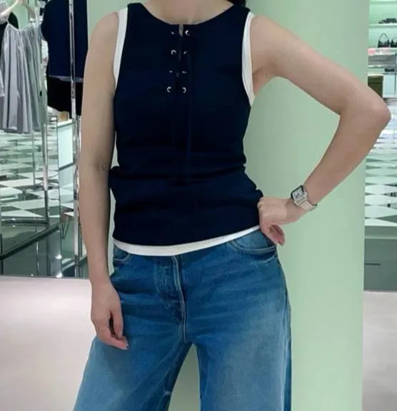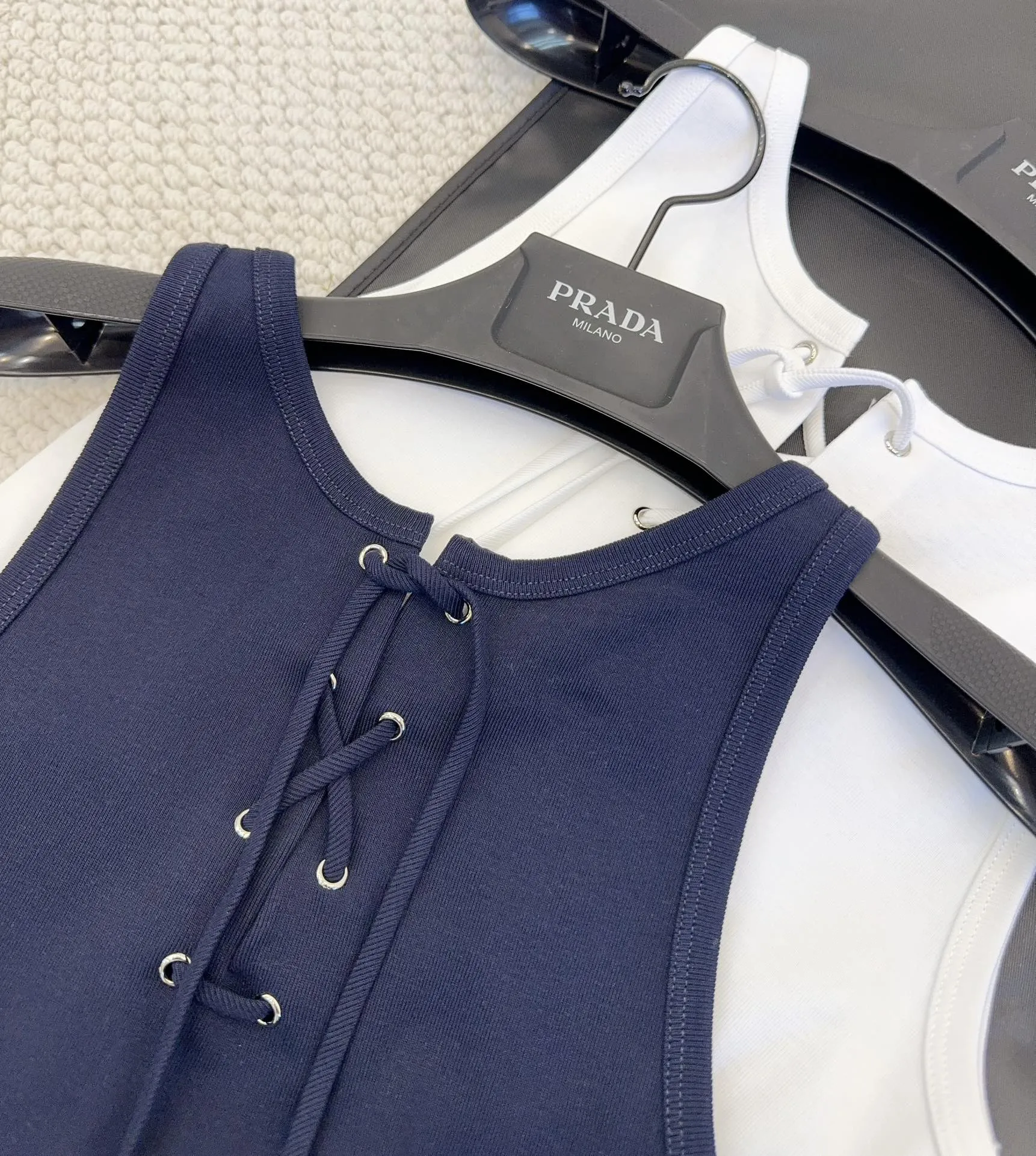 Представляем новый топ Prada 2025 года – воплощение современного стиля и непревзойденного комфорта. Этот топ, выполненный из оригинальной тонкой эластичной ткани в рубчик, приятно удивит вас своей мягкой и эластичной на ощупь текстурой. Особенность этой модели – шнуровка на горловине, позволяющая вам создавать разнообразные образы.