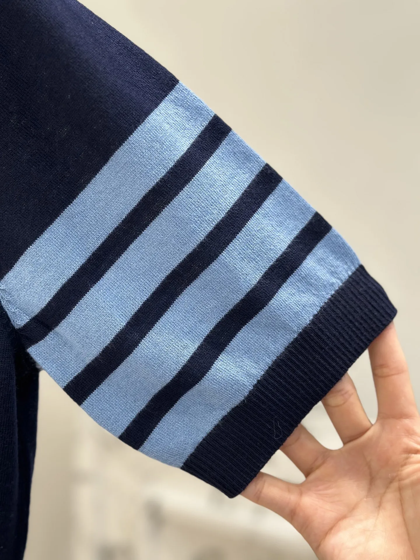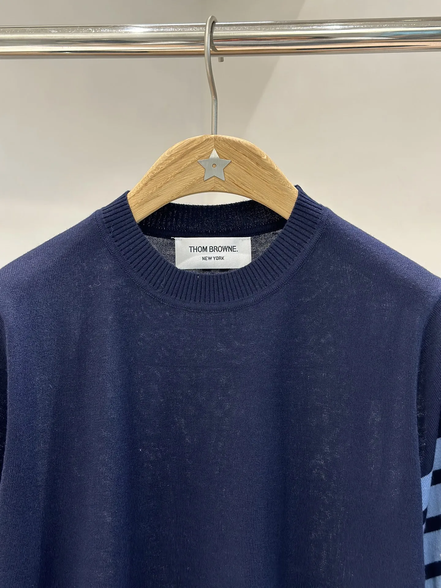 Представляем элегантную и комфортную женскую футболку, выполненную из 100% шерсти мериноса. Эта превосходная ткань обеспечивает мягкость, тепло и естественную воздухопроницаемость, делая футболку идеальным выбором для любого времени года. Гладкая трикотажная вязка не мнется, обеспечивая безупречный внешний вид на протяжении всего дня. Особое внимание привлекает левый рукав, на котором бережно сохранен уникальный дизайн линий, вдохновленный архивными моделями TB. Этот утонченный акцент добавляет свитеру изысканности и подчеркивает его эксклюзивность, делая его не просто базовым элементом гардероба, а стильным заявлением.