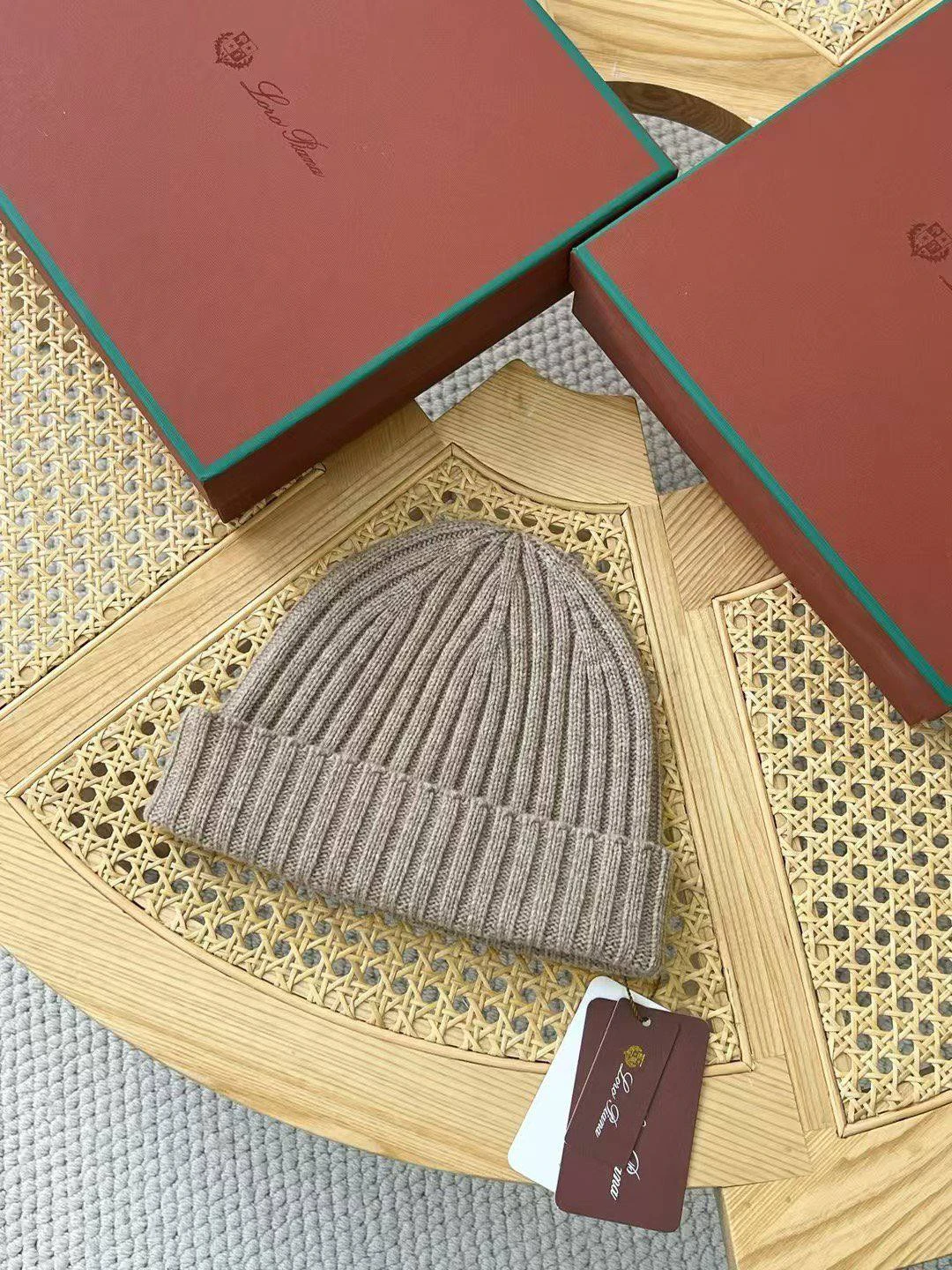• Фасон: классический beanie с отворотом; плотный рубчатый (rib) узор придаёт форму и обеспечивает хорошую посадку.