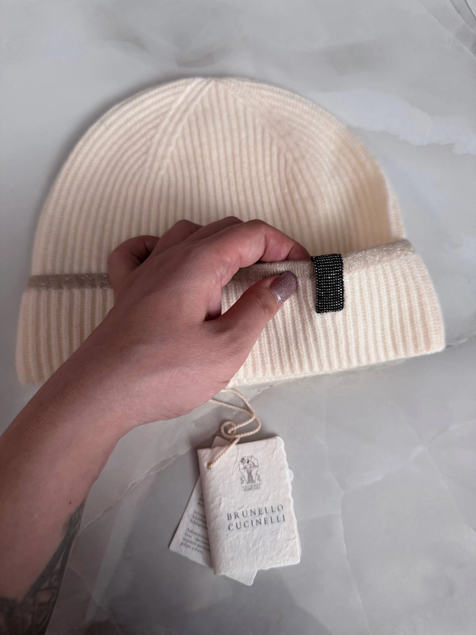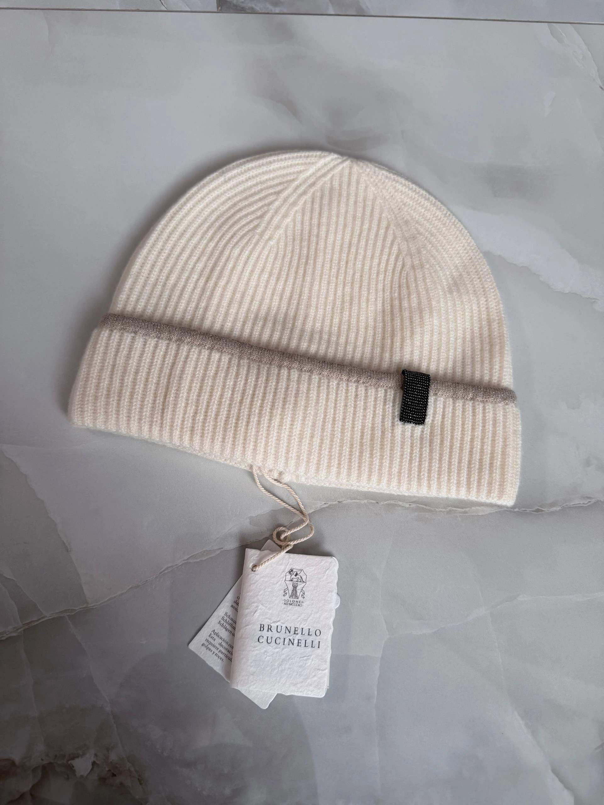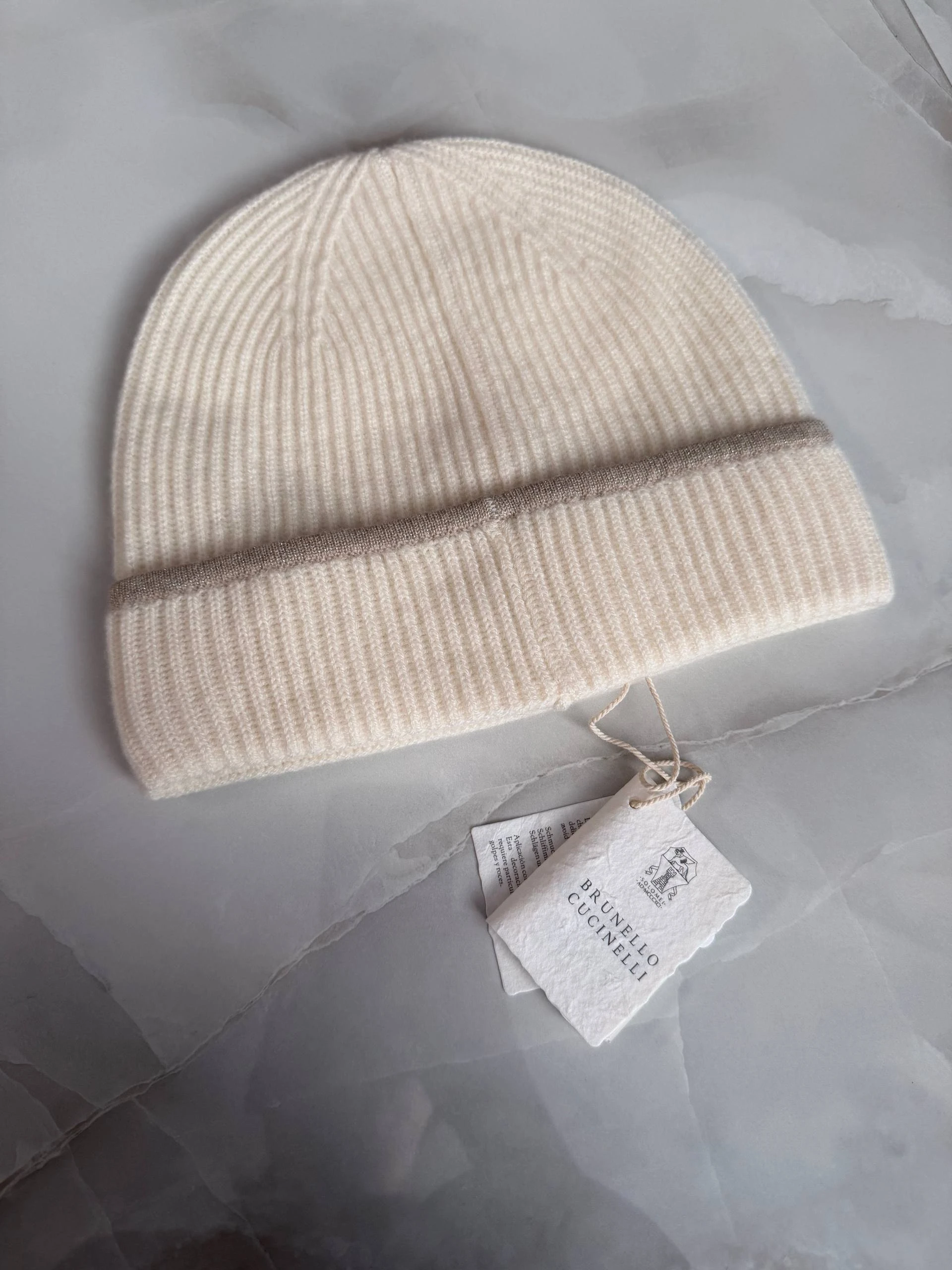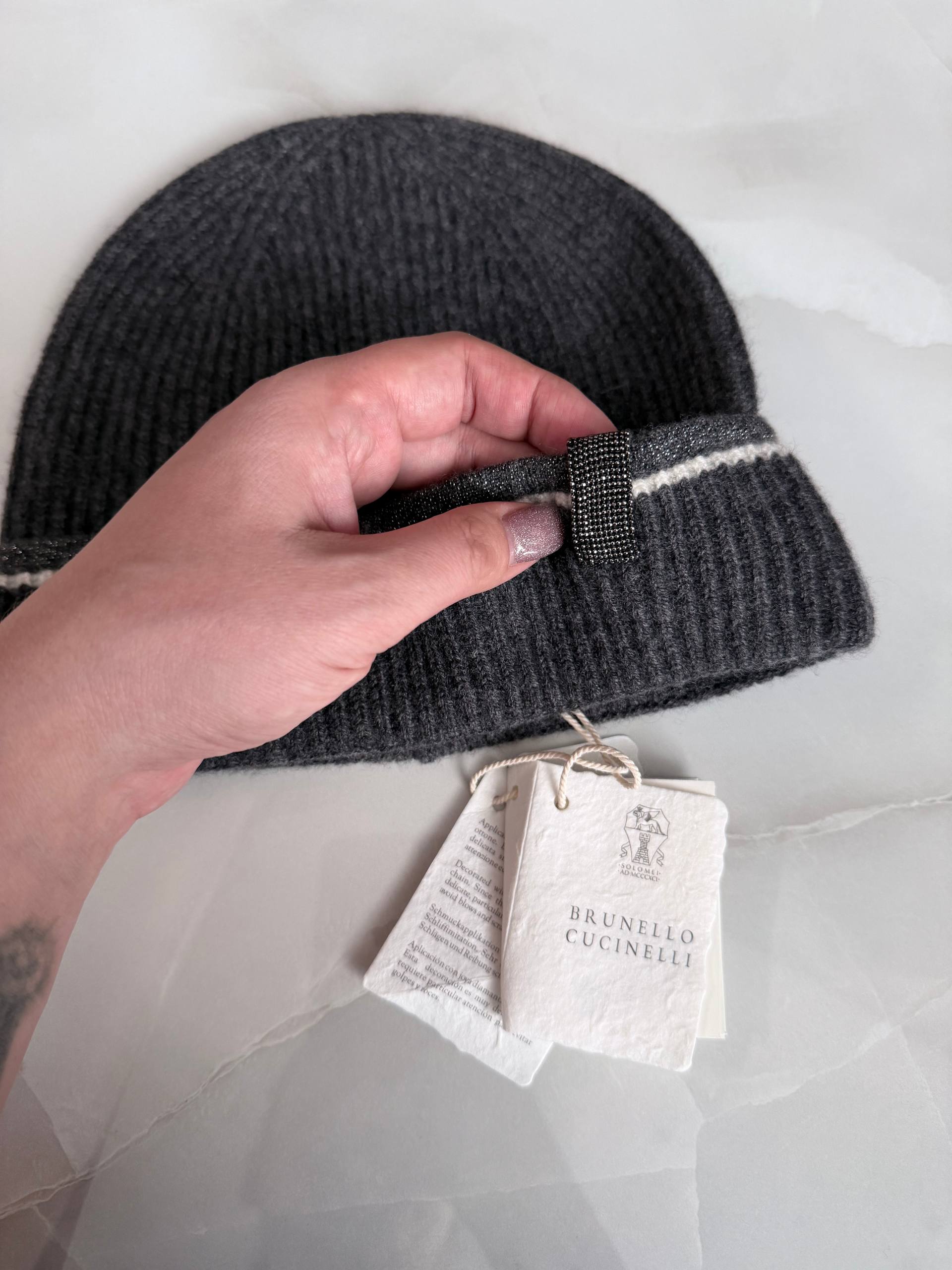 Элегантная и сдержанная вязаная шапка Brunello Cucinelli в глубокo‑антрацитовом оттенке с тонкой светлой контрастной полосой по линии отворота. Минималистичный дизайн, чистые линии и мелкие детали создают образ комфортной повседневной роскоши.