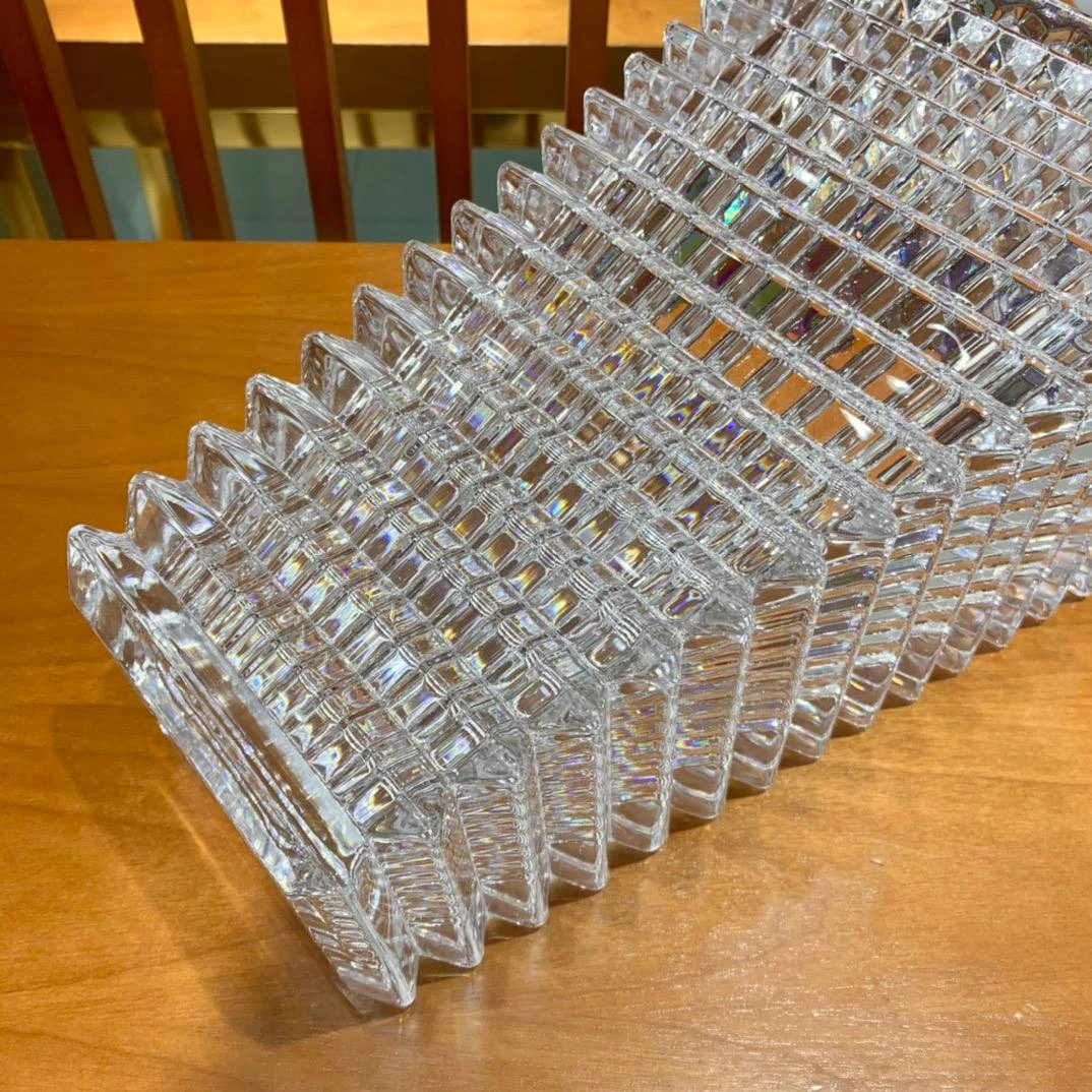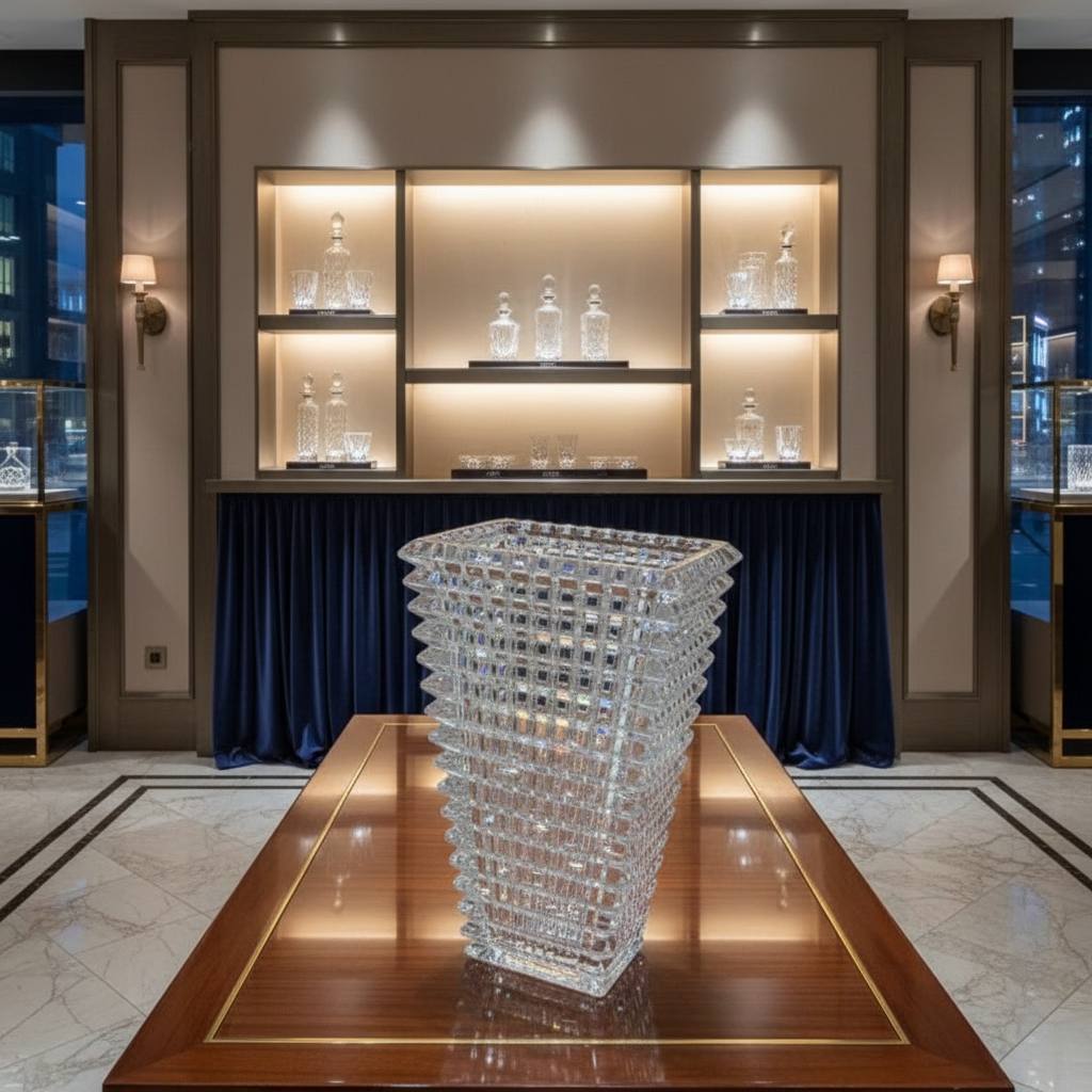 Элегантная ваза Baccarat высотой 30 см, выполненная из бесцветного хрусталя с характерной высокой прозрачностью и блеском. Геометрический, «ступенчатый» дизайн с фасетной сеткой создает эффект игры света и прекрасно смотрится как самостоятельный декор или под композицию из средних по длине цветов.