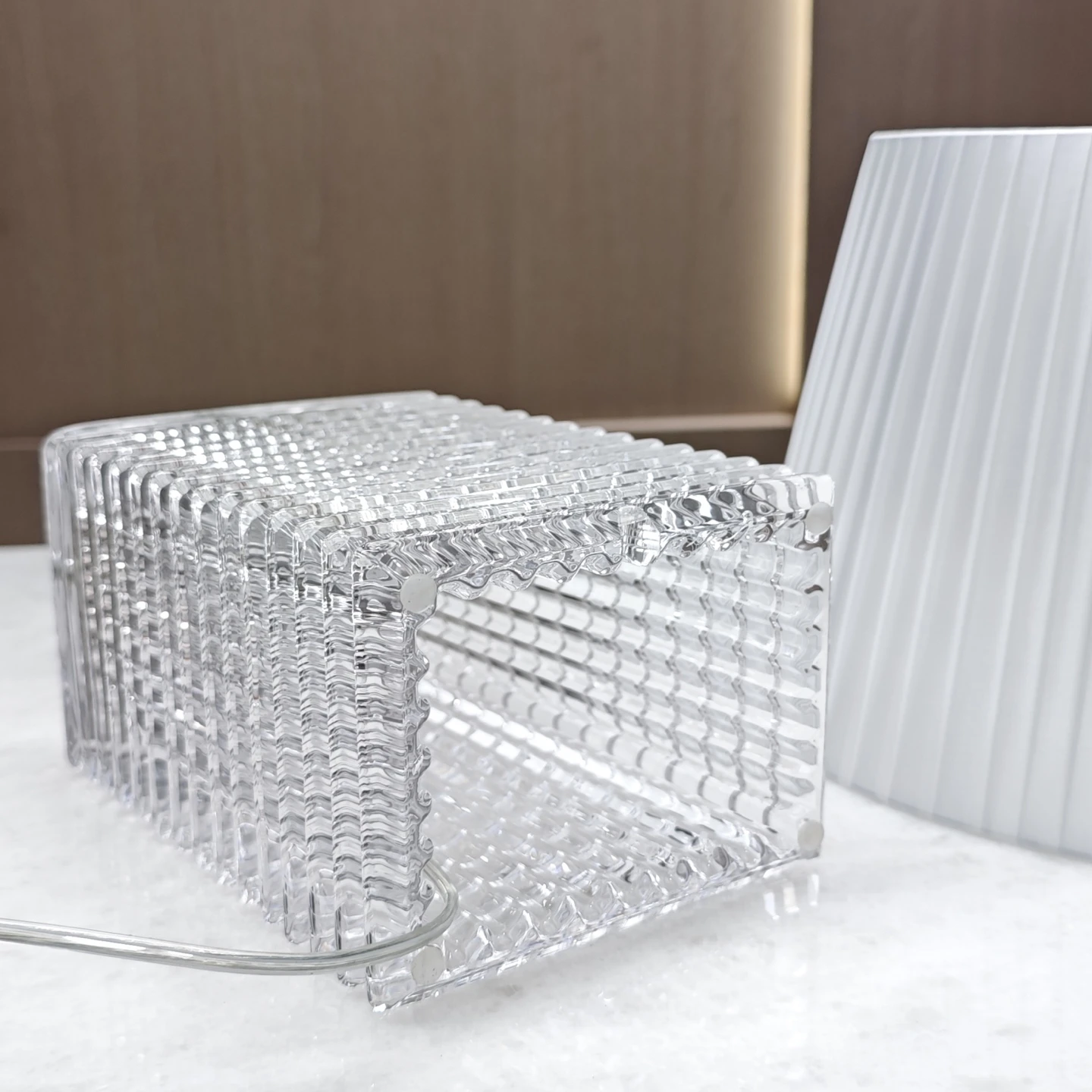 Лампа не просто освещает комнату, но и создает атмосферу. Изменения яркости и текстуры света в зависимости от угла зрения добавляют глубину и динамику в интерьер, что делает ее настоящим акцентом в любом пространстве.
