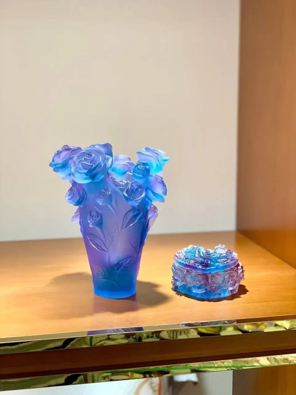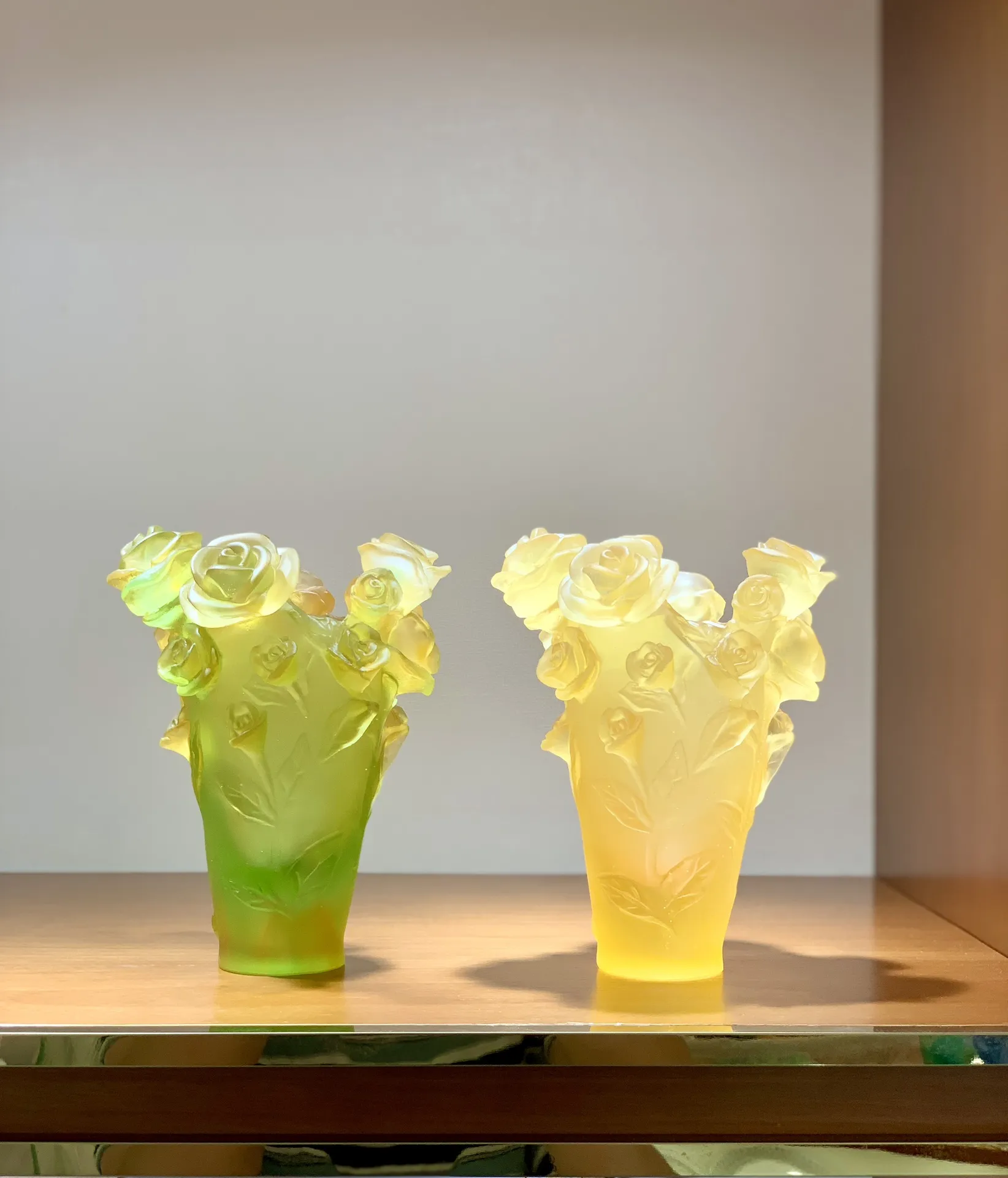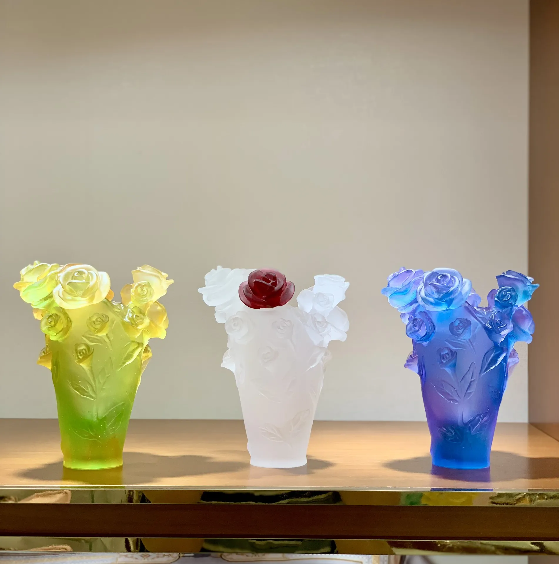 Moдель Rose вдохновлена формами и цветами роз, что придает вазе романтический и элегантный вид. Продукция Daum часто становится коллекционным предметом и высоко ценится как за качество, так и за оригинальный дизайн.