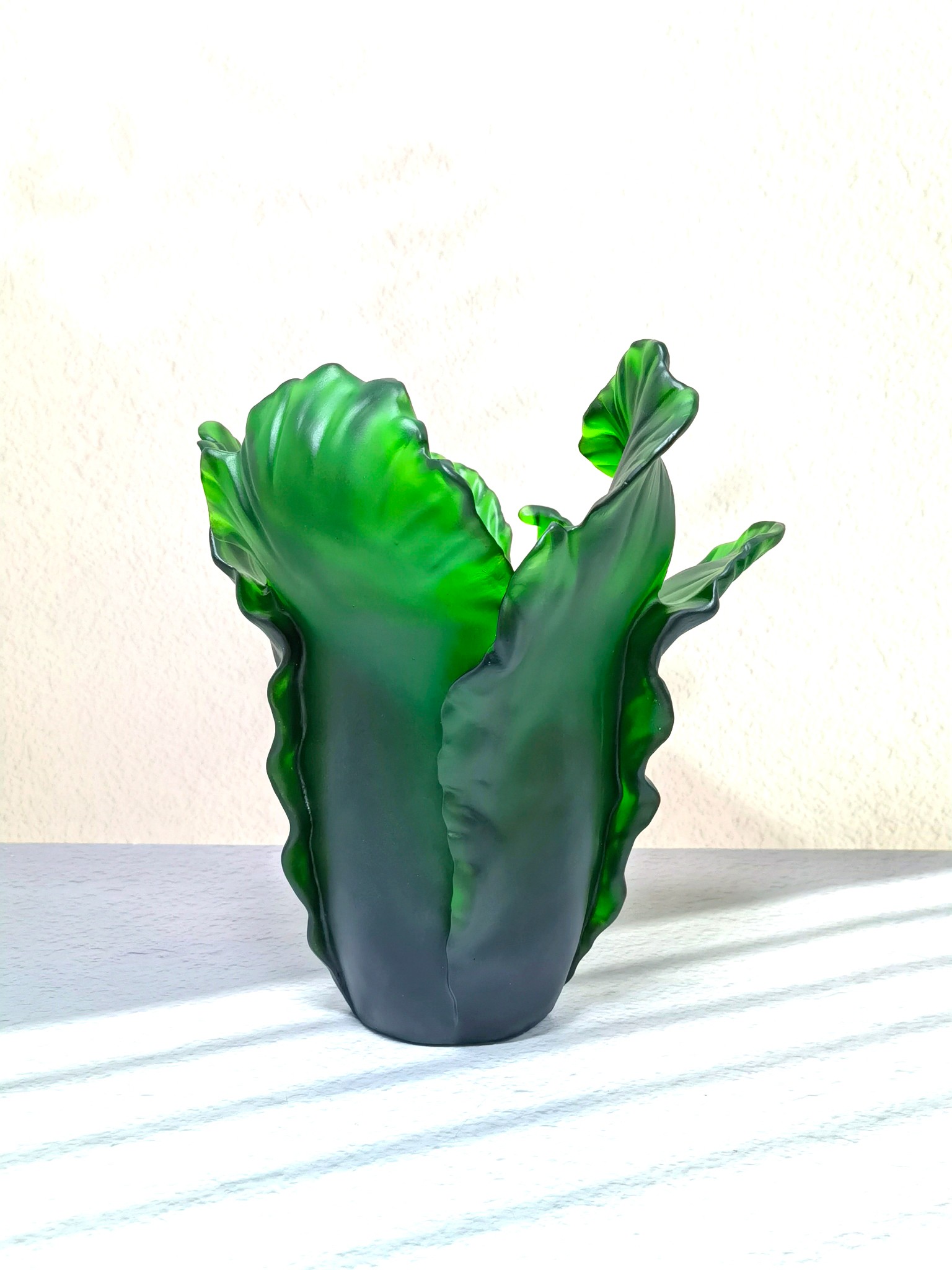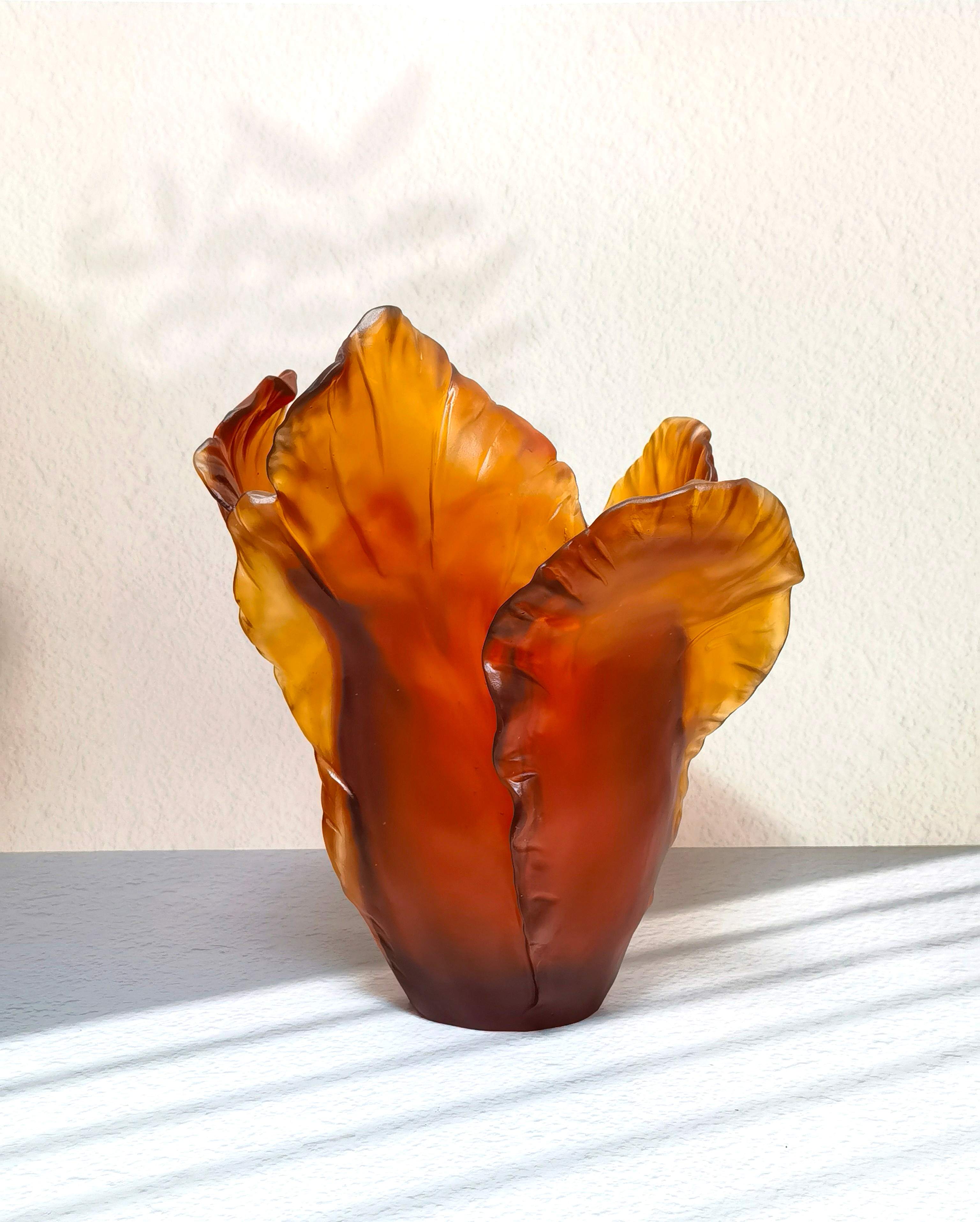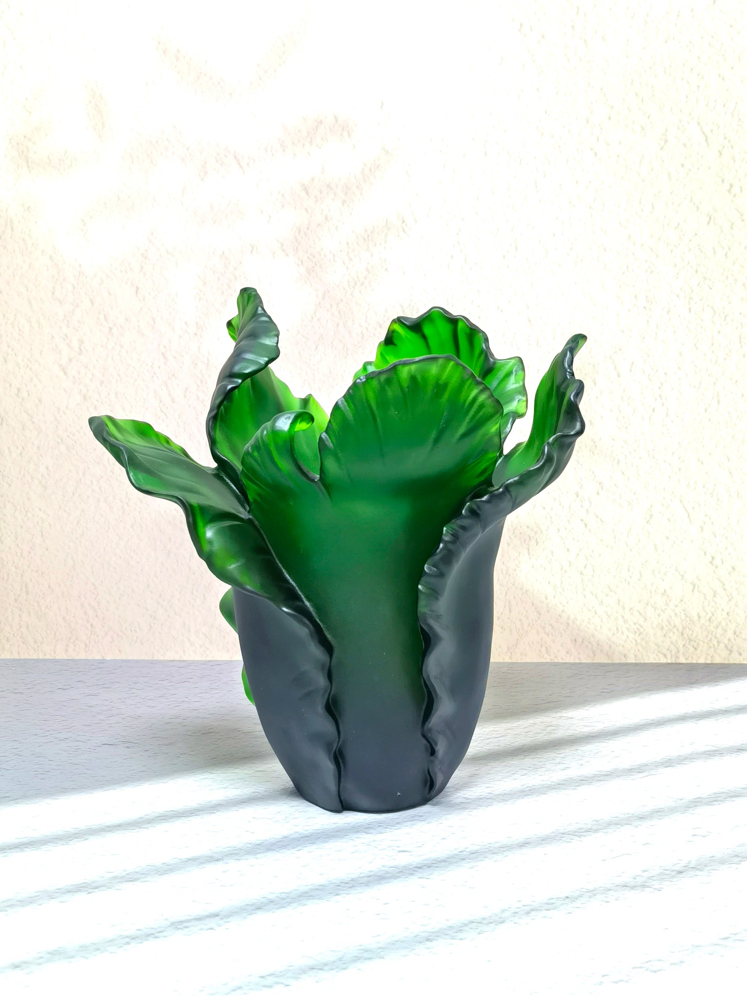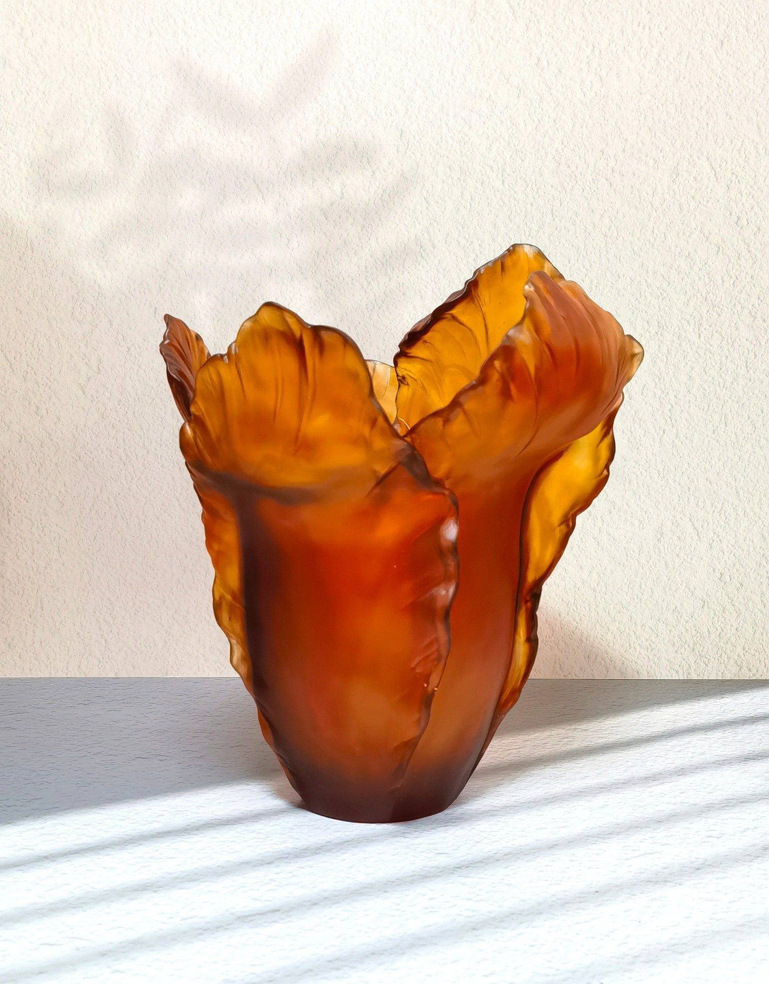 Ваза из коллекции Daum Tulip является великолепным произведением искусства, отражающим красоту цветов тюльпана. Использование техники потерянного воска позволяет мастерам создавать сложные формы и текстуры, что придает изделию невероятную реалистичность.