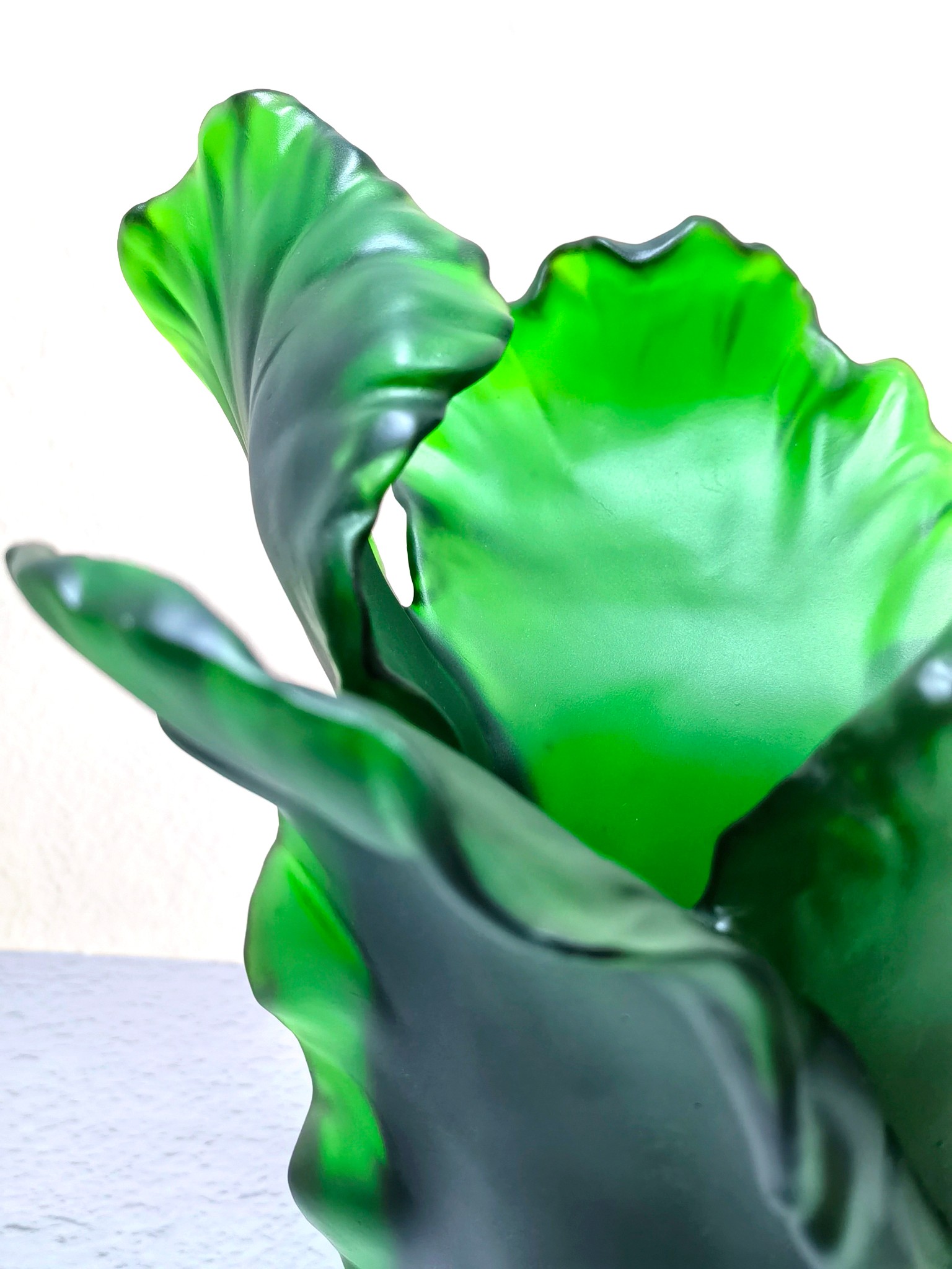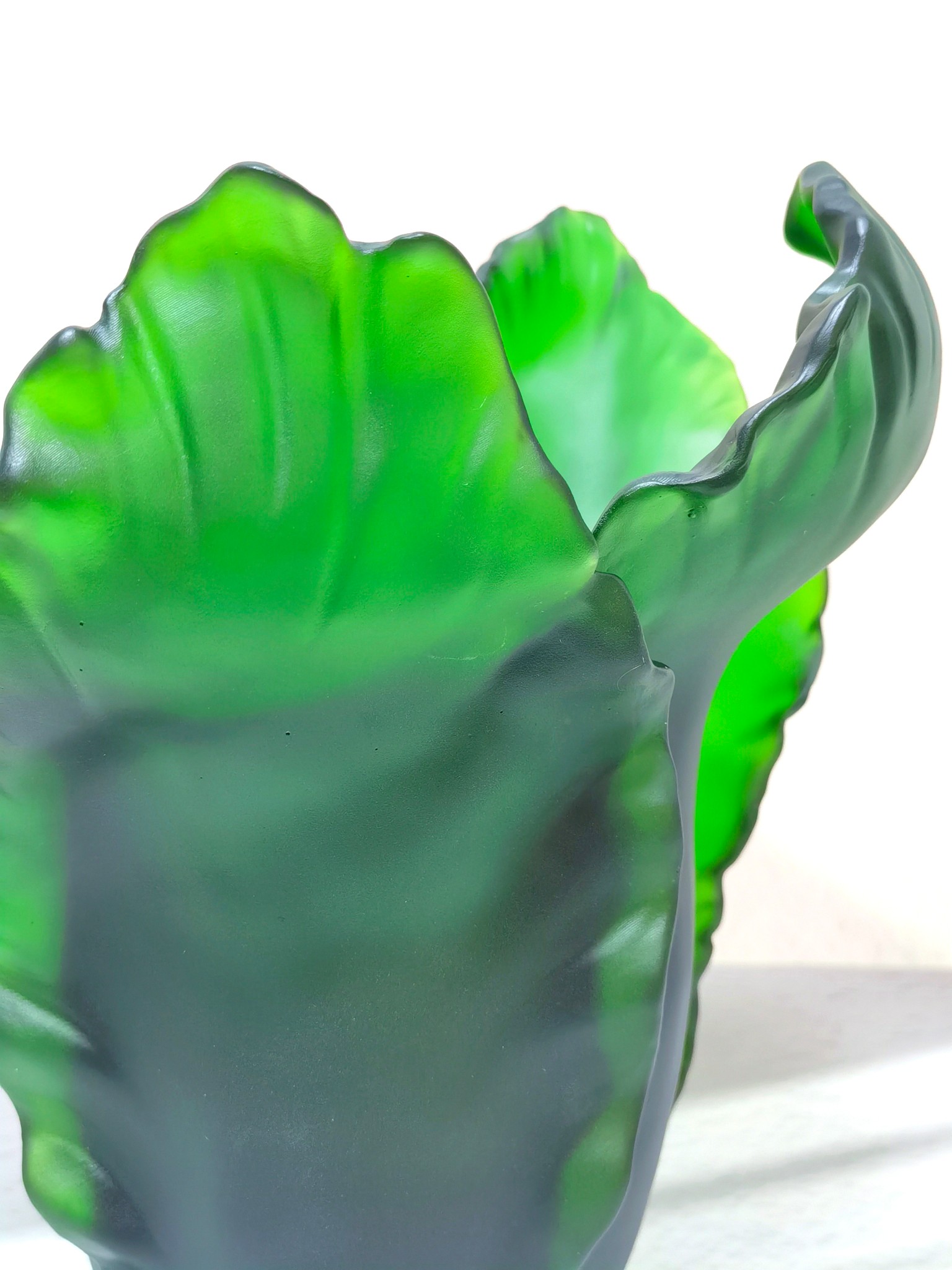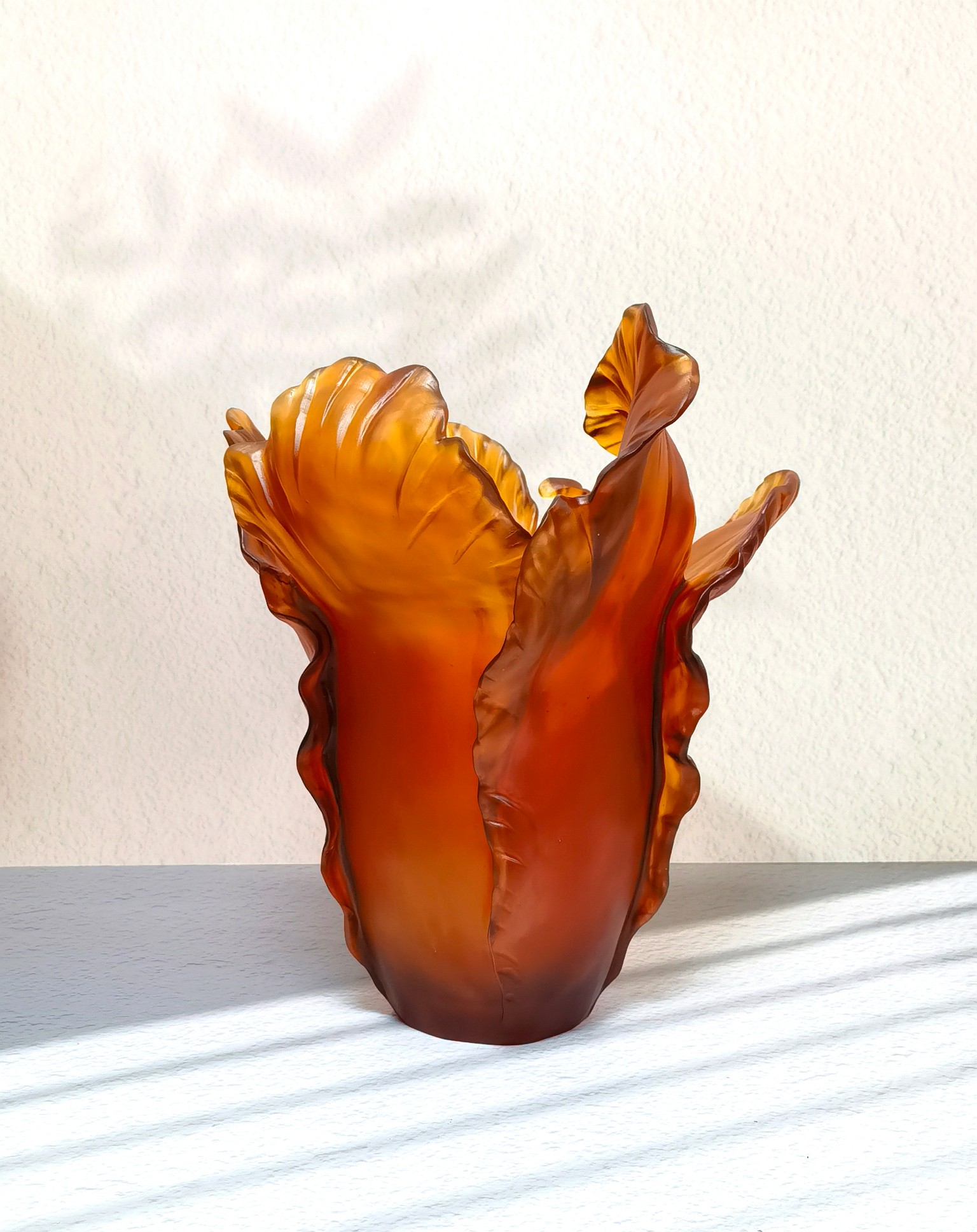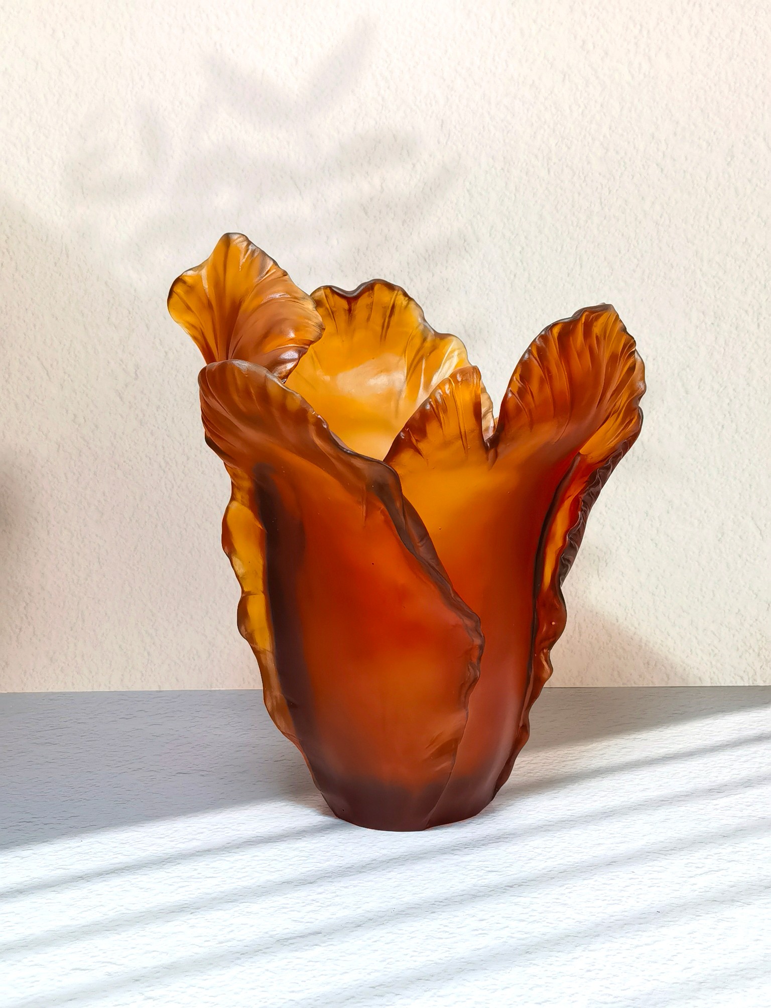 Ваза из коллекции Daum Tulip является великолепным произведением искусства, отражающим красоту цветов тюльпана. Использование техники потерянного воска позволяет мастерам создавать сложные формы и текстуры, что придает изделию невероятную реалистичность.