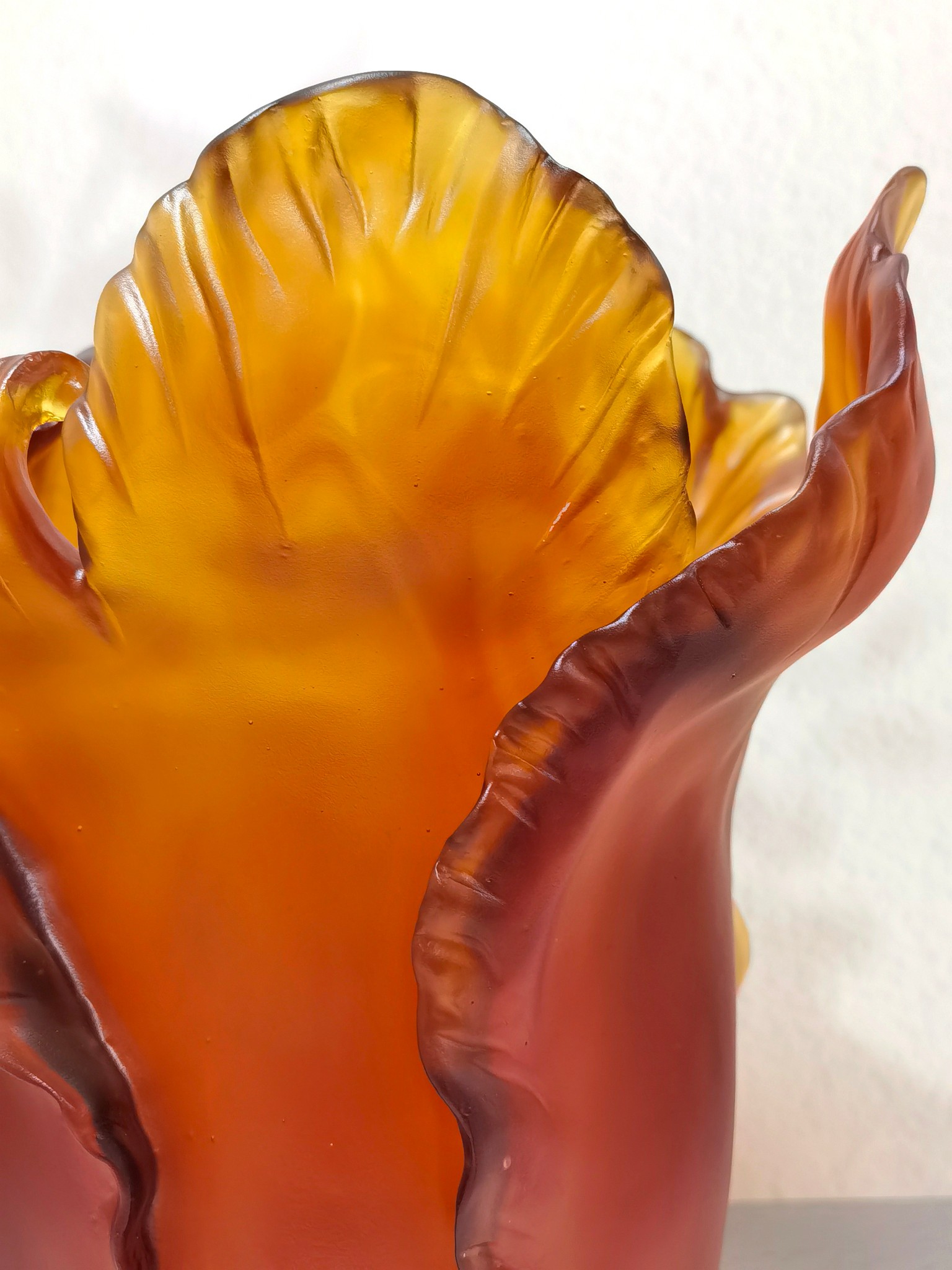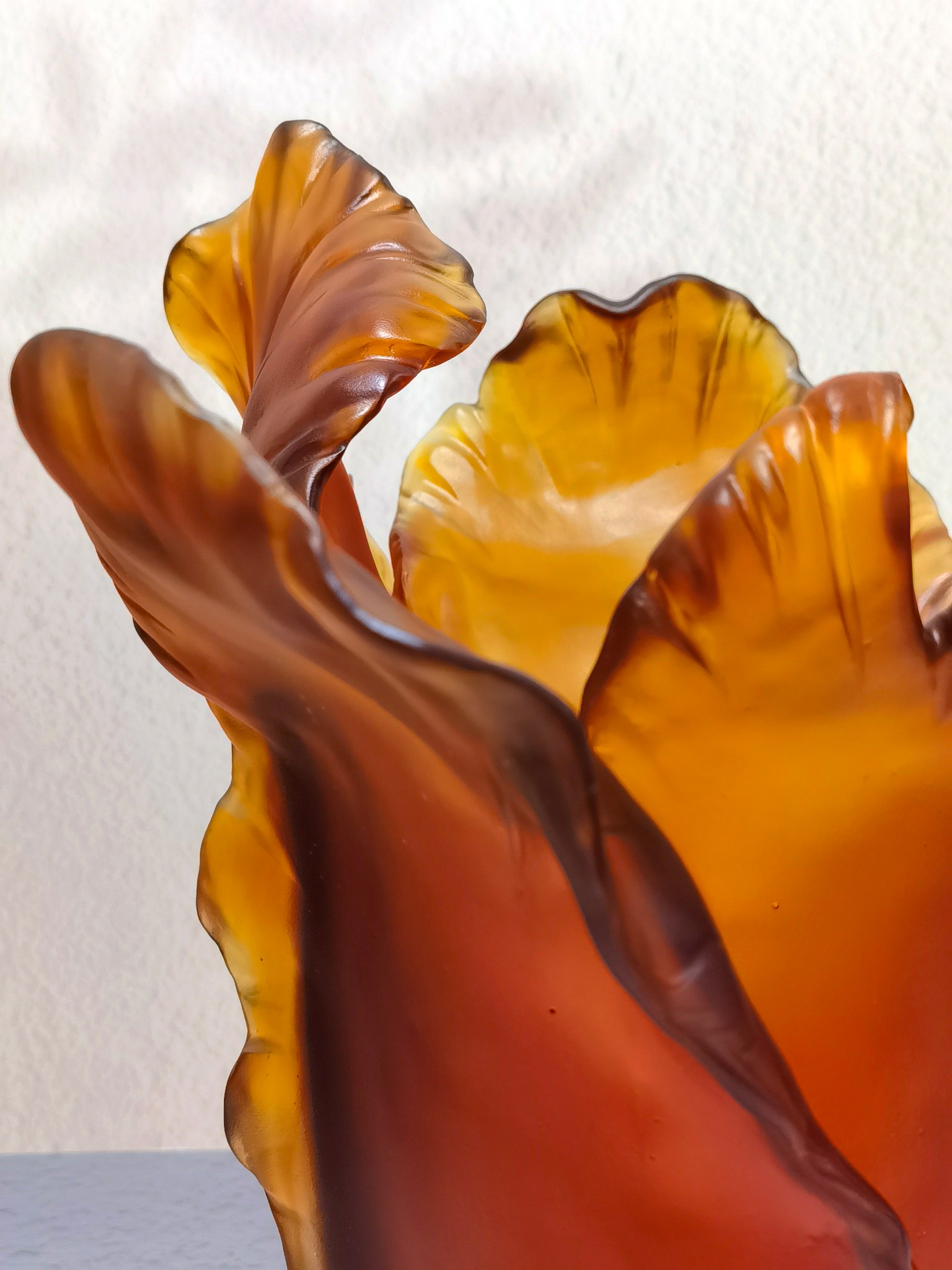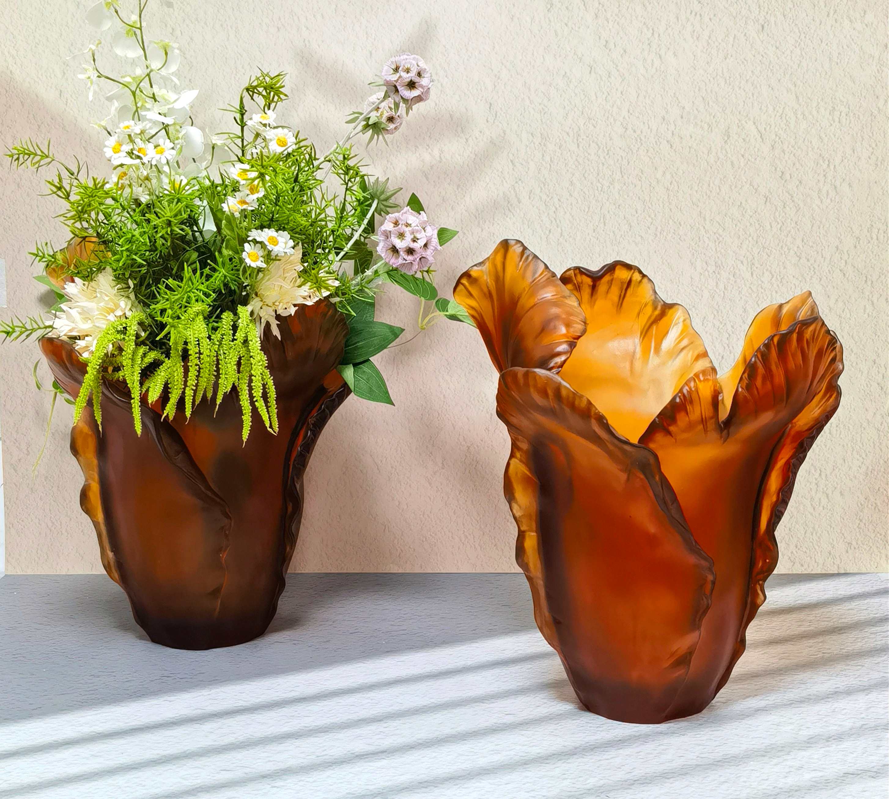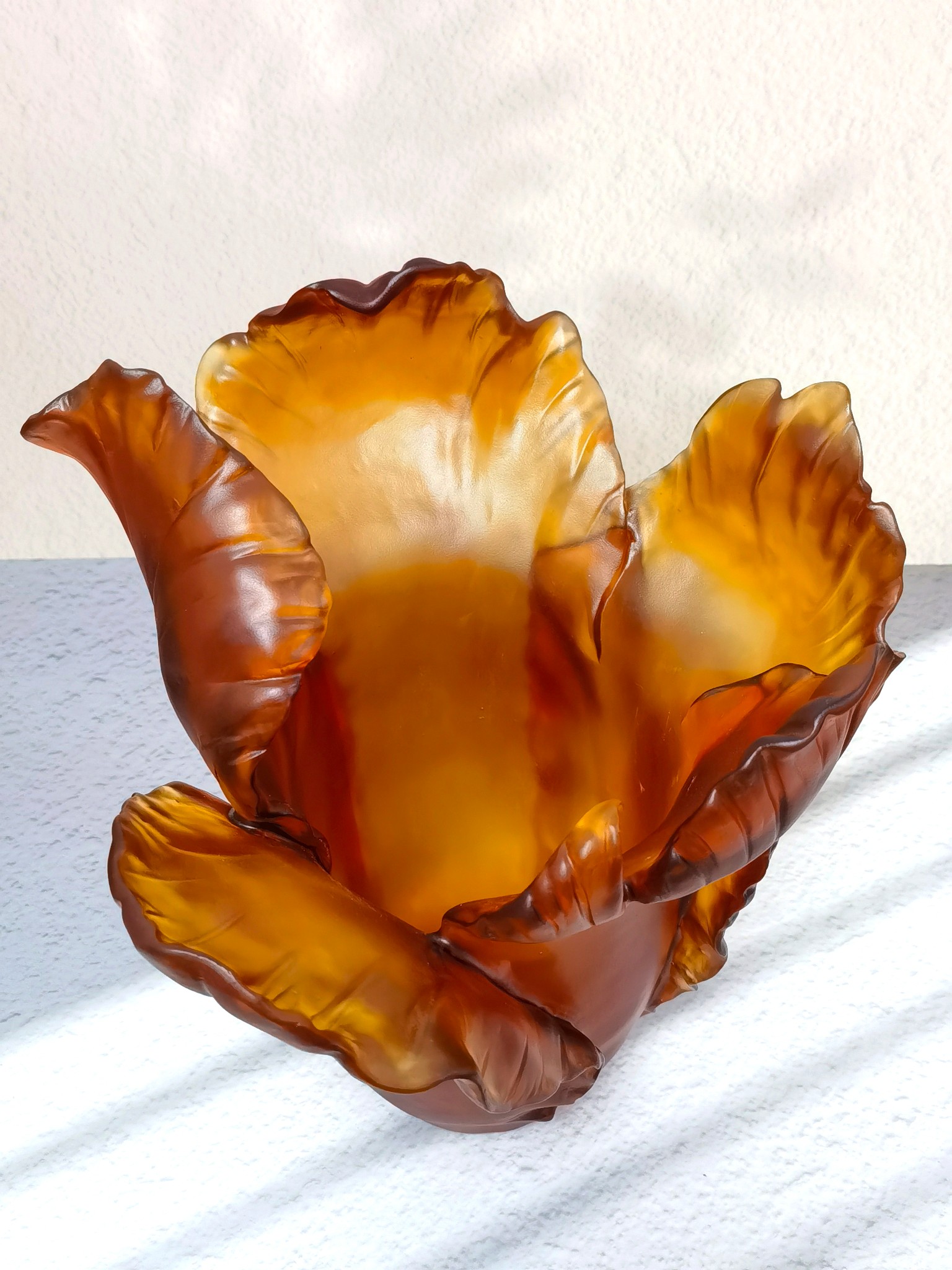 Ваза из коллекции Daum Tulip является великолепным произведением искусства, отражающим красоту цветов тюльпана. Использование техники потерянного воска позволяет мастерам создавать сложные формы и текстуры, что придает изделию невероятную реалистичность.