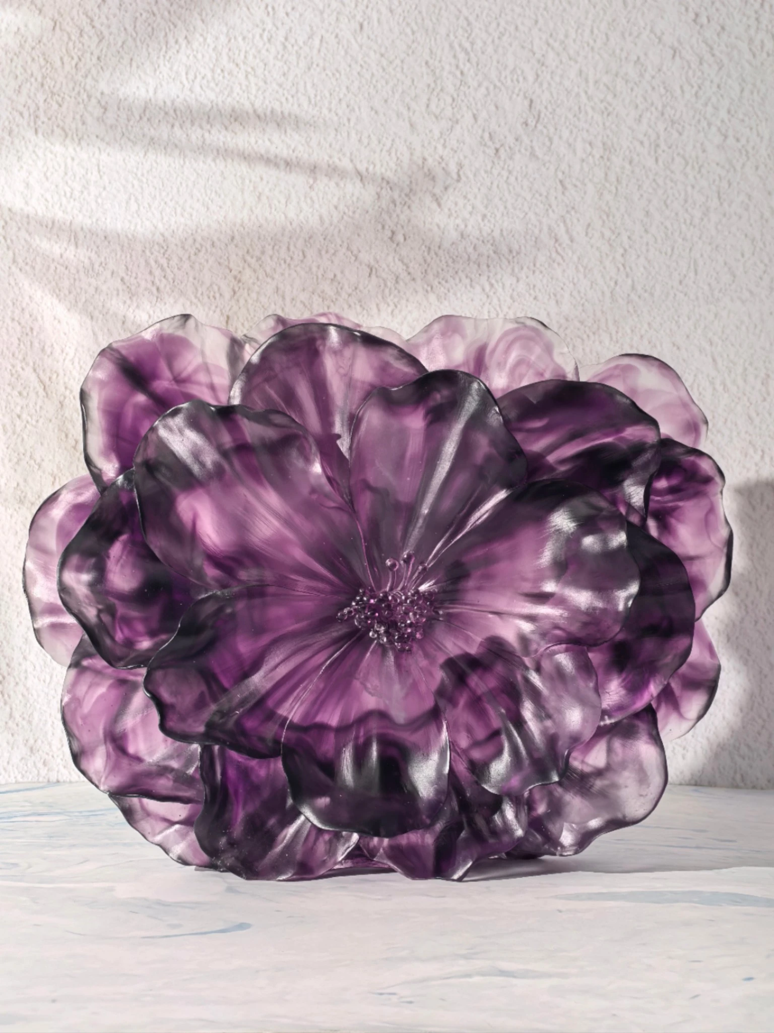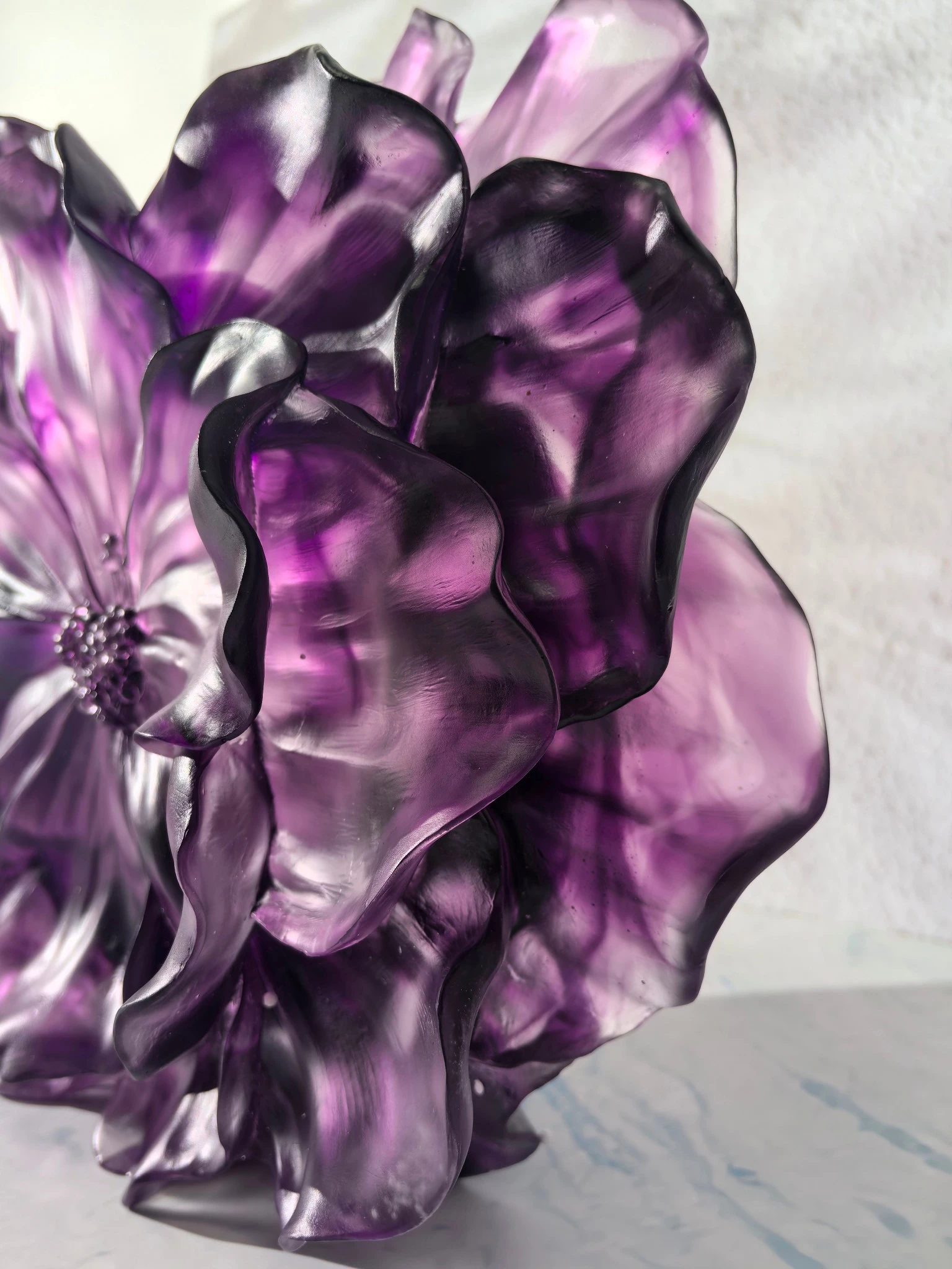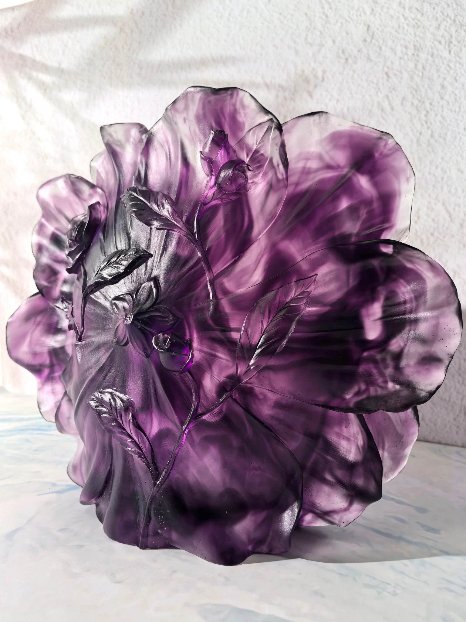 Ваза Daum «Камелия» является великолепным примером мастерства и художественного видения. Использование метода литья по выплавляемым моделям позволяет добиться высокой степени детализации, что особенно заметно в проработке бутонов и почек. Каждая деталь вазы, от текстуры до формы, создает ощущение живых цветов, словно они только что распустились.