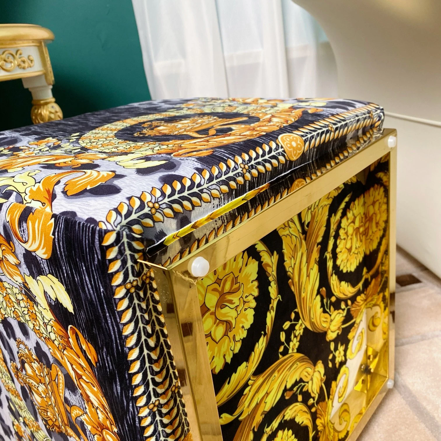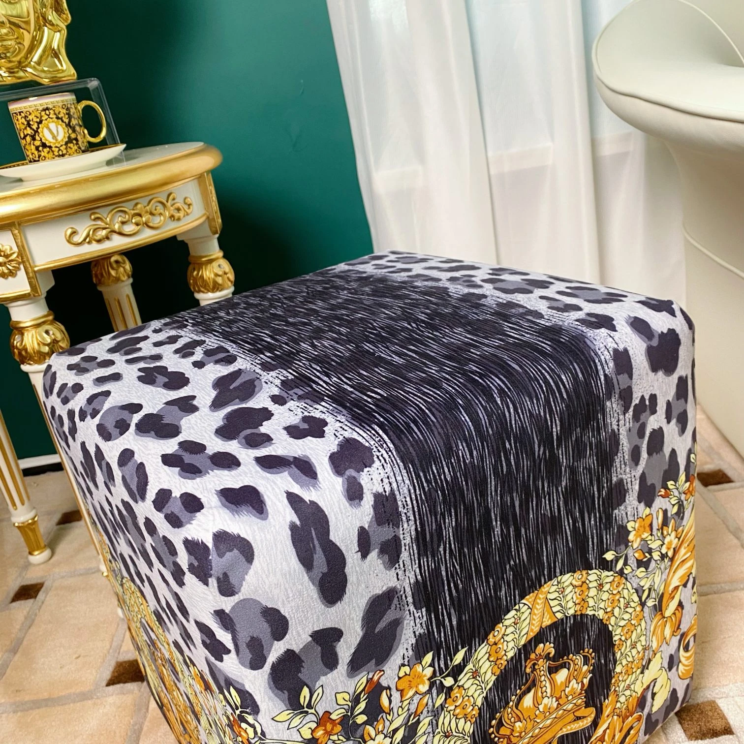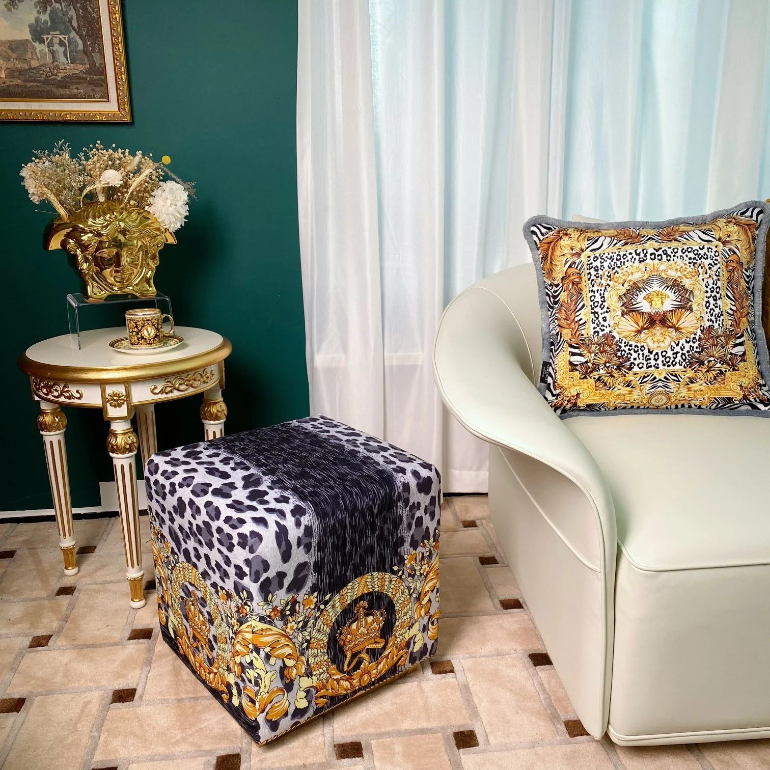 Погрузитесь в мир роскоши и стиля с пуфиком Versace, который станет ярким акцентом вашего интерьера. Этот уникальный предмет мебели выполнен из мягкого бархата с эффектной цифровой печатью, отражающей знаменитые узоры бренда Versace.
