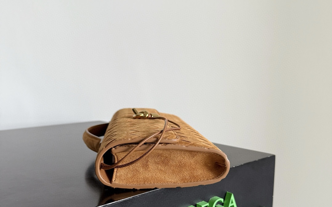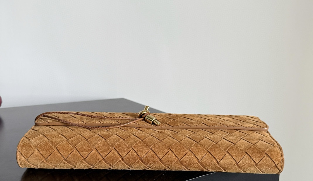 Эта модель отличается фирменным плетёным дизайном Intrecciato, придающим аксессуару утончённый и узнаваемый вид. Компактная прямоугольная форма, удобная короткая ручка и элегантная металлическая застёжка-кольцо делают сумку идеальным выбором как для торжественных выходов, так и для стильных повседневных образов.