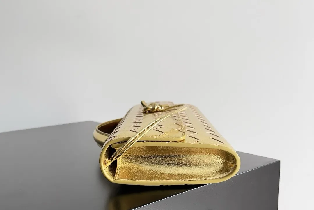 Женский клатч Andiamo от Bottega Veneta — воплощение современной элегантности и узнаваемого стиля бренда. Модель выполнена из высококачественной кожи в фирменной технике Intrecciato, которая придаёт аксессуару роскошное текстурное оформление.