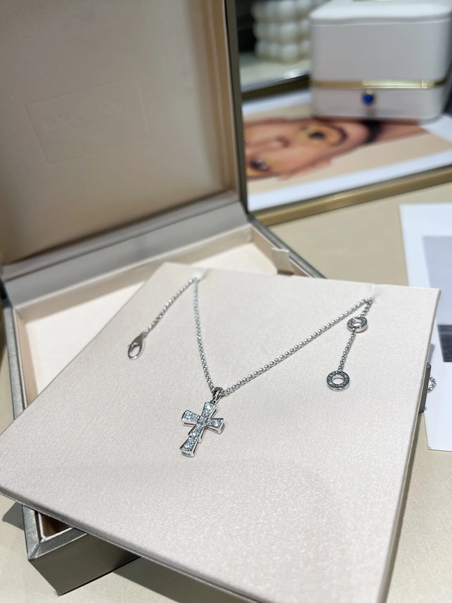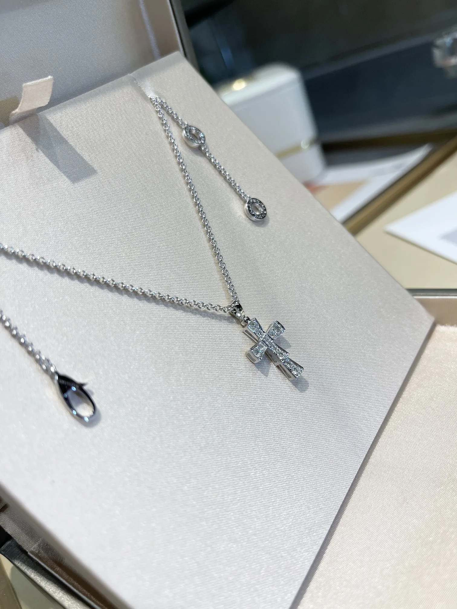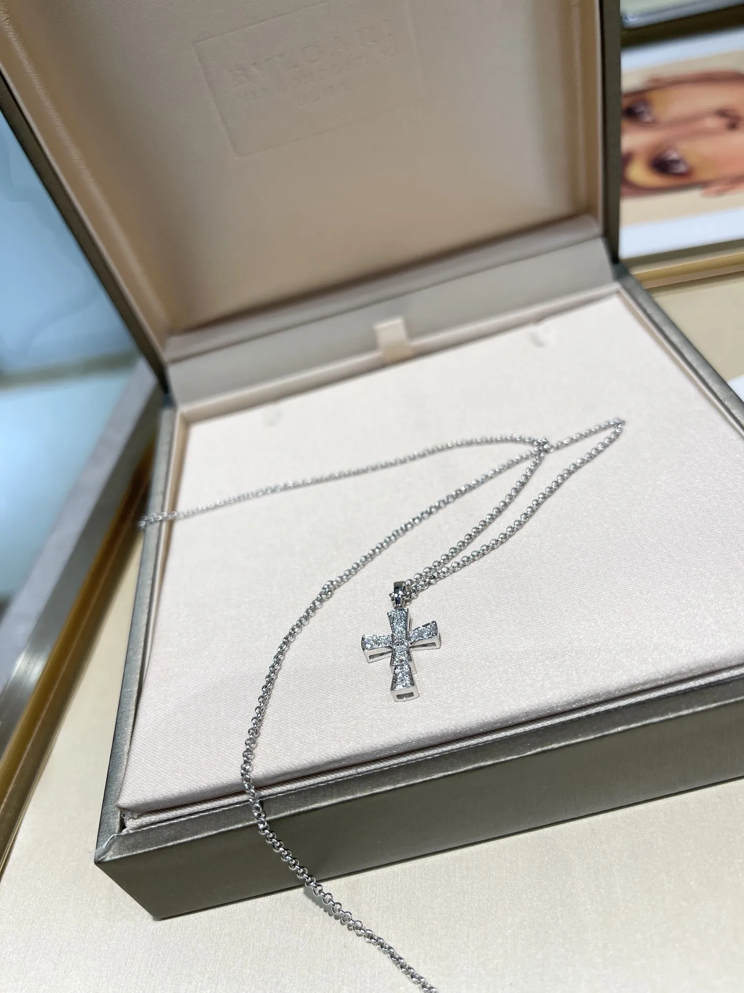 Эзысканное колье Bvlgari из 18-каратного белого золота, сверкающее россыпью бриллиантов.