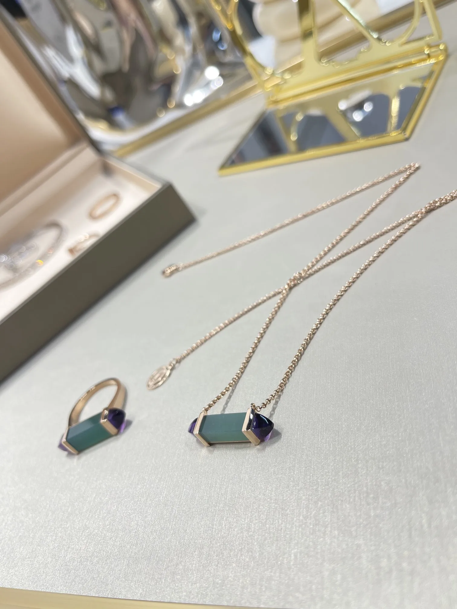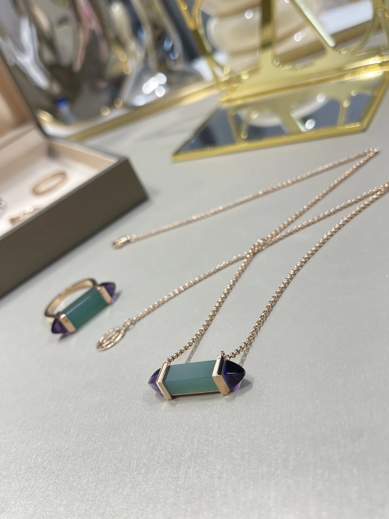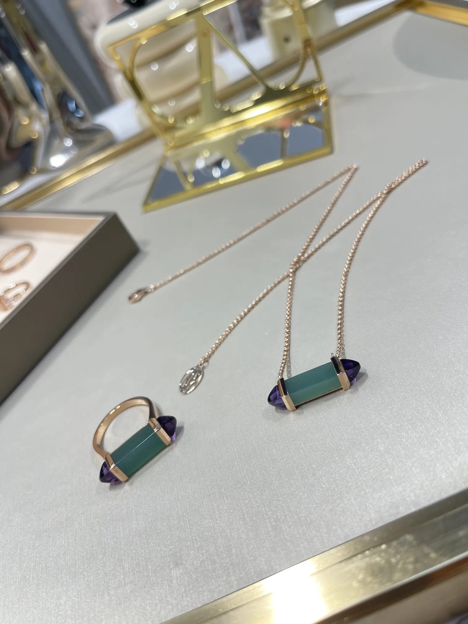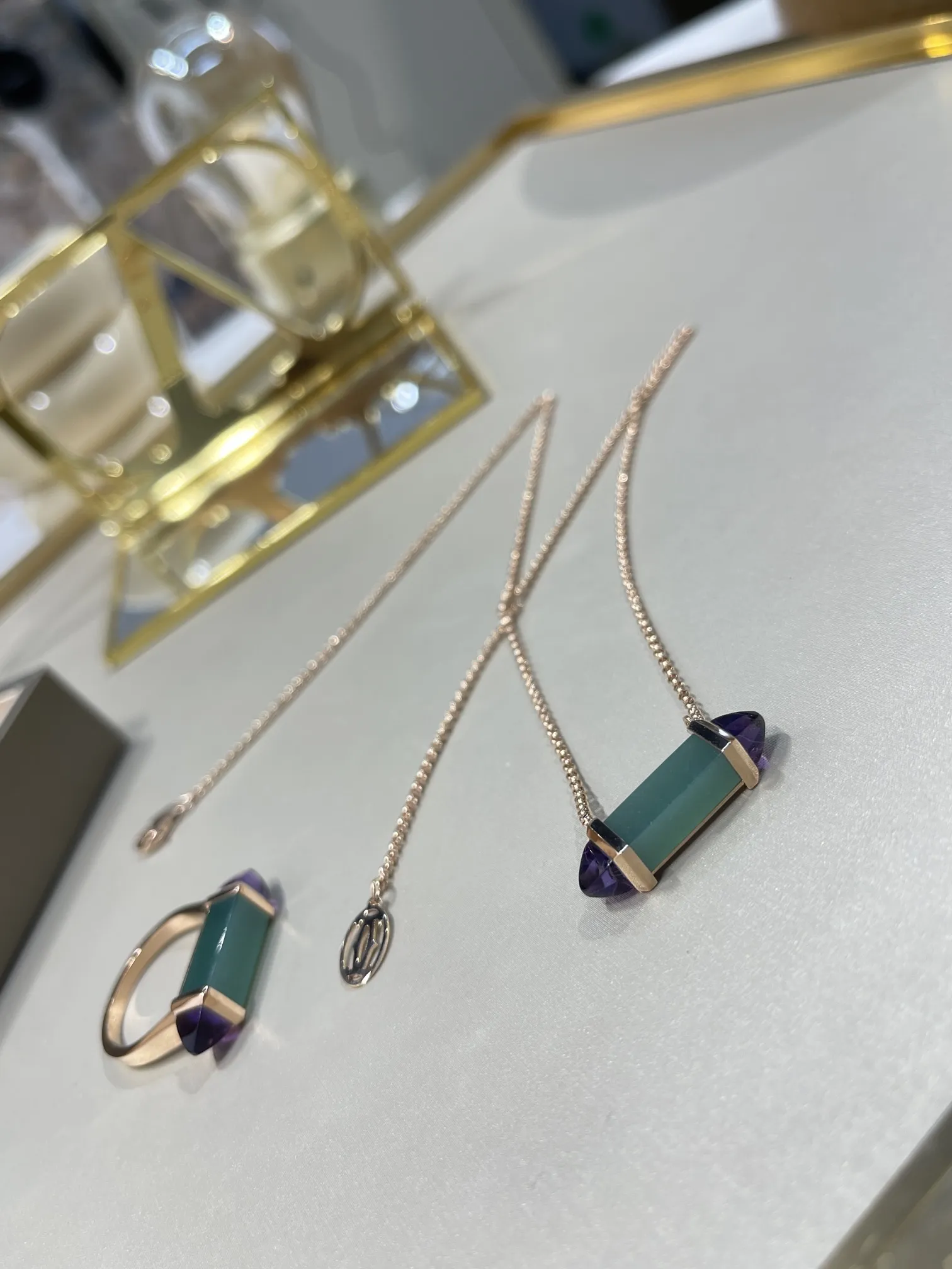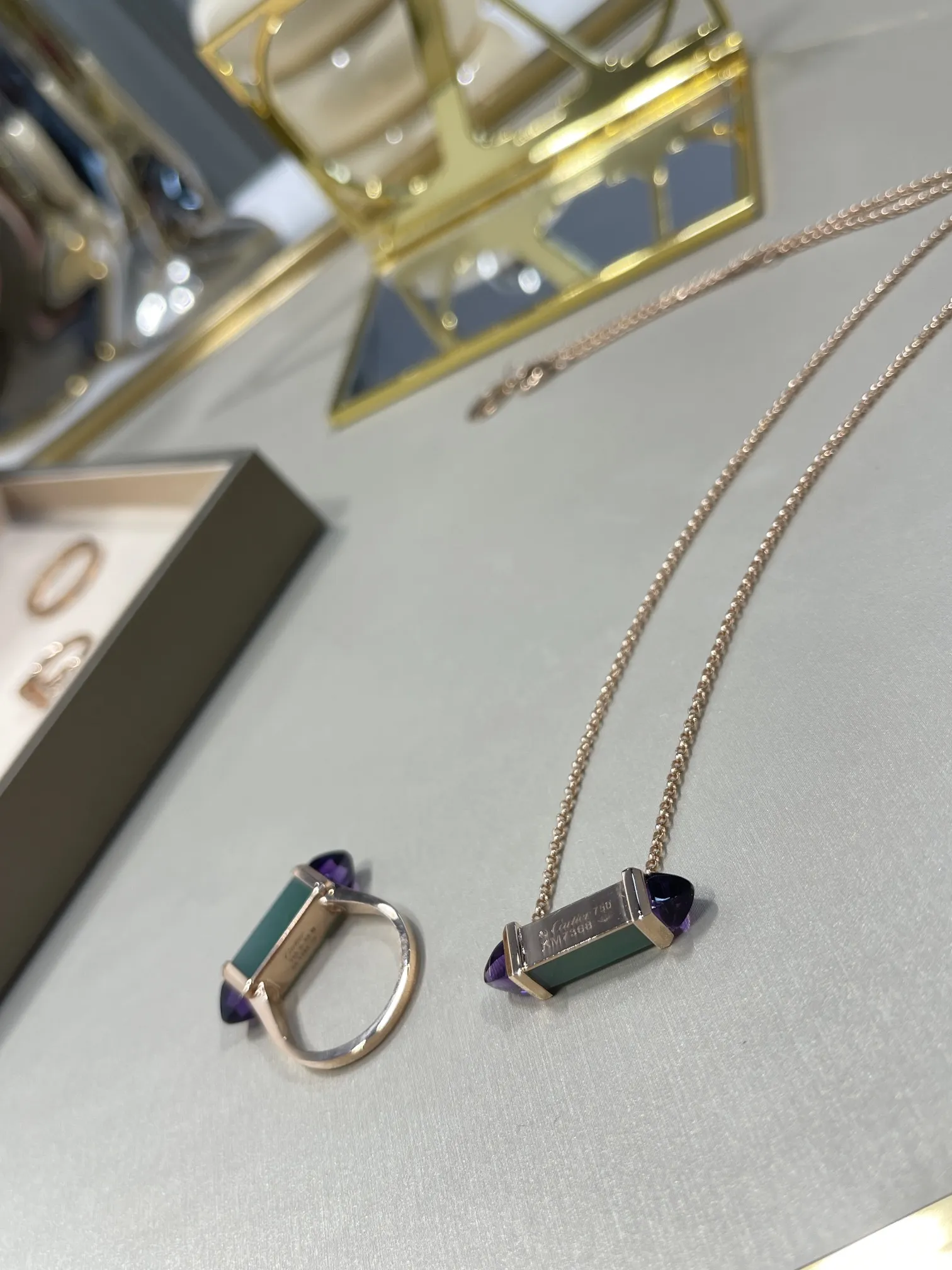 CARTIER Колье Les Berlingots розовое золото, хризопраз, аметист