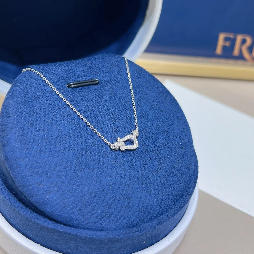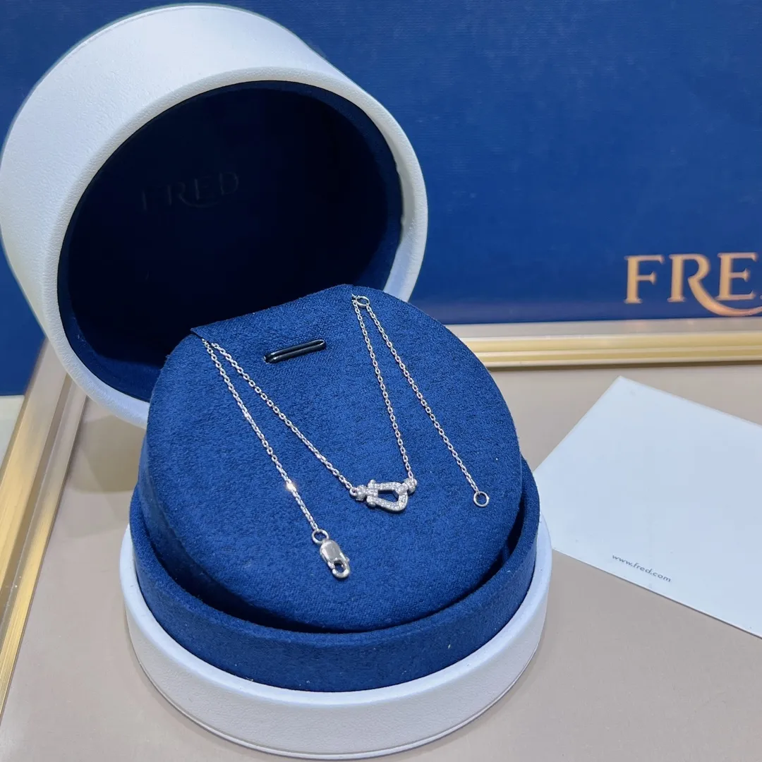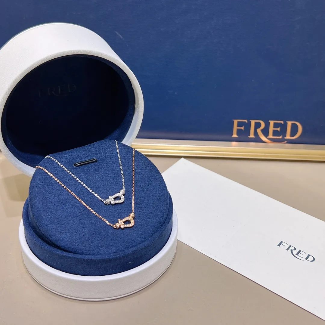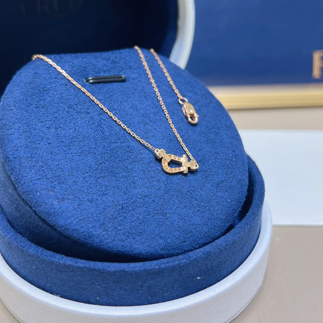 Fred колье с пряжкой-подковой из 18-каратного розового и белого золота с бриллиантами. Центральным элементом колье является пряжка-подкова, символ удачи и благополучия, инкрустированная бриллиантами.