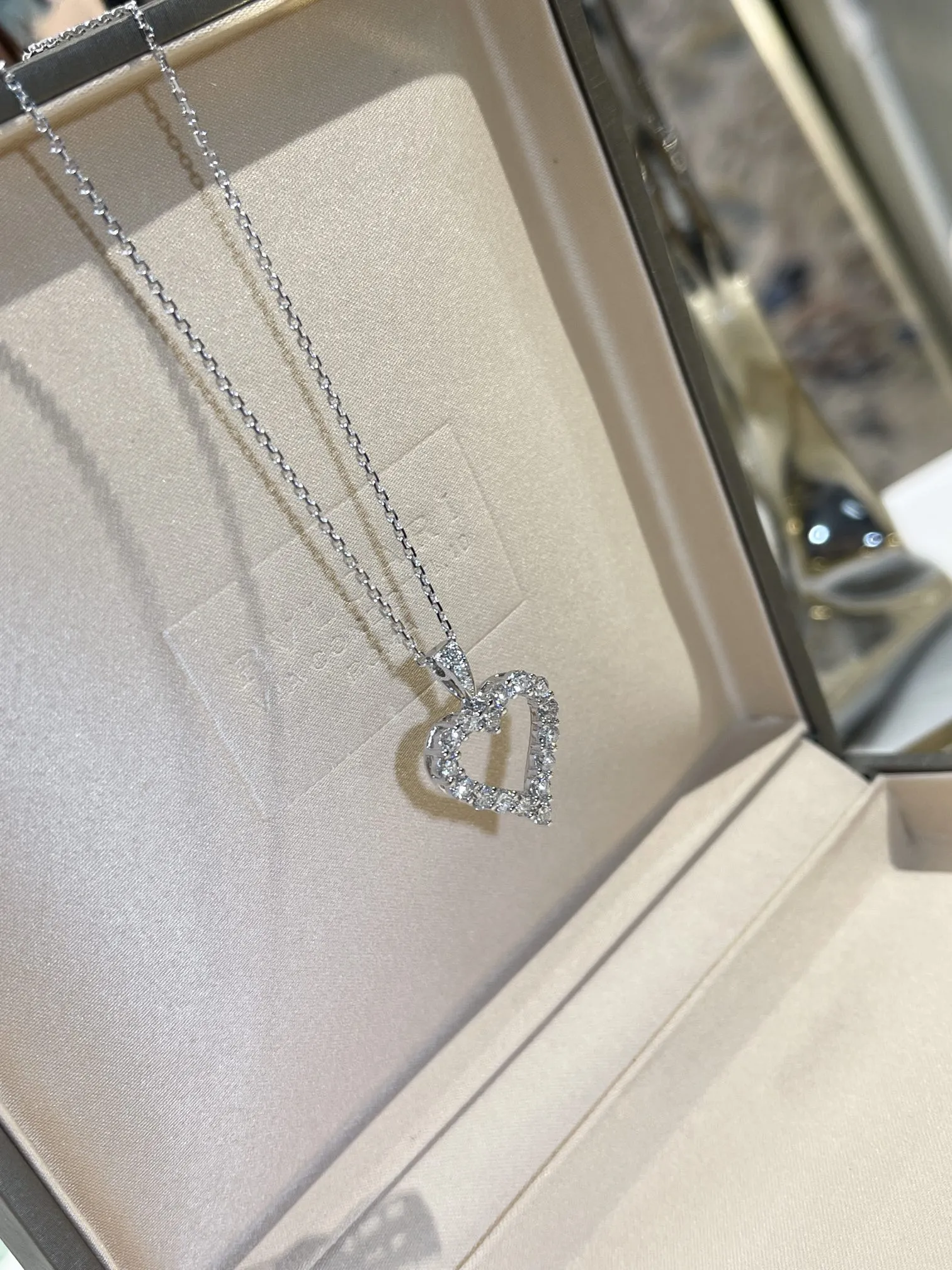GRAFF Колье белое золото 18 карат и бриллианты. Эта изящная подвеска в форме сердца, украшенная бриллиантами паве, является воплощением любви и романтики.