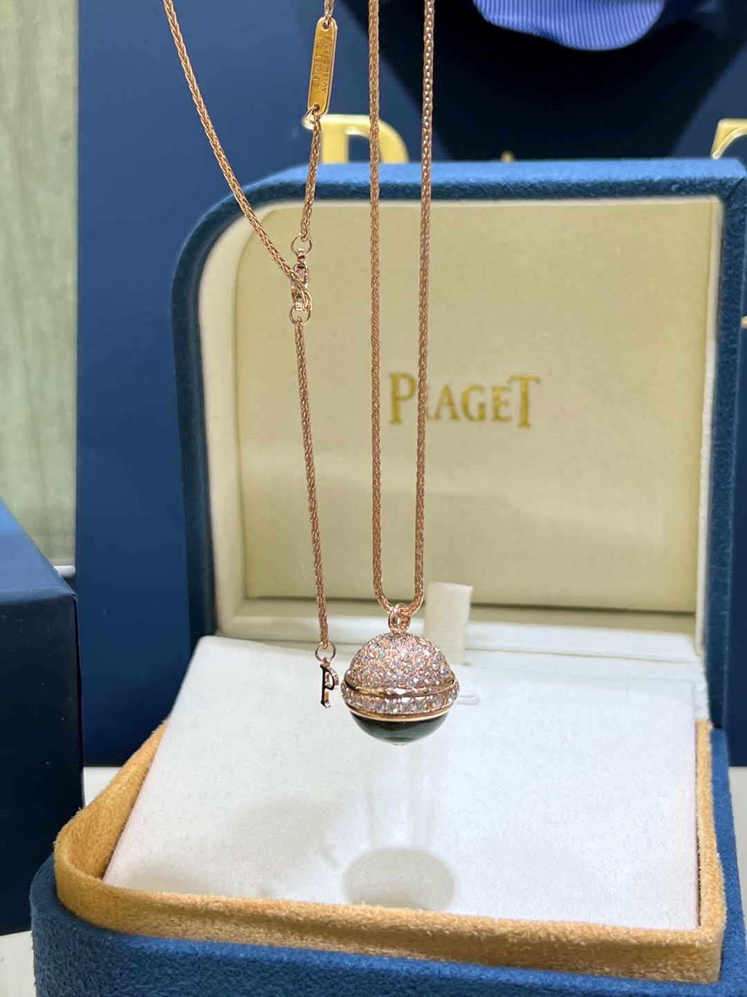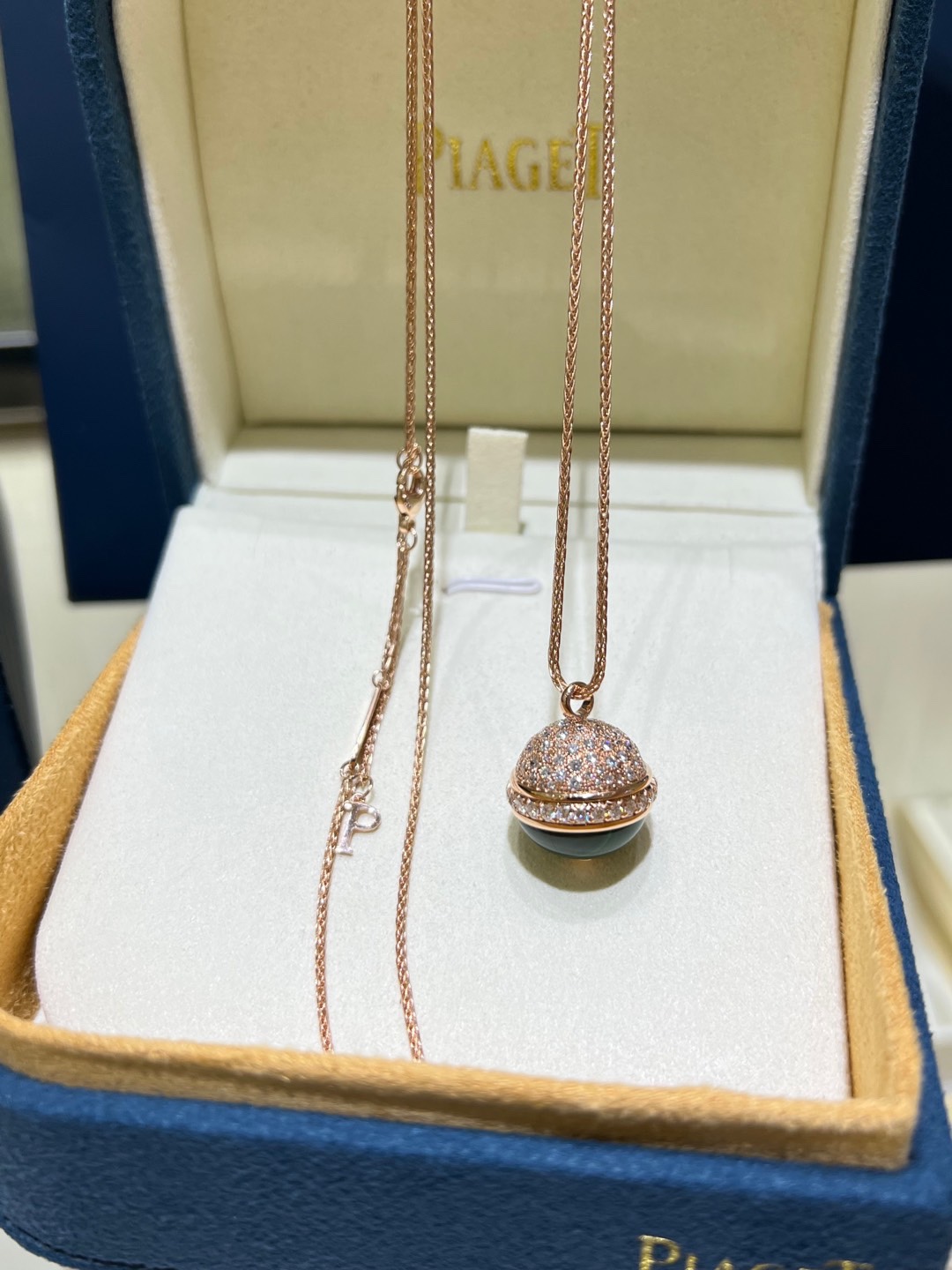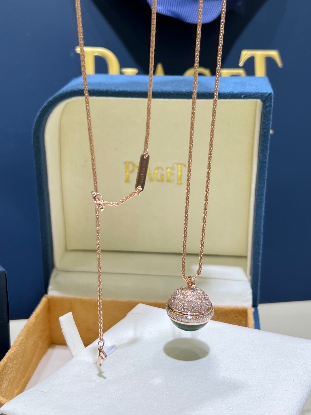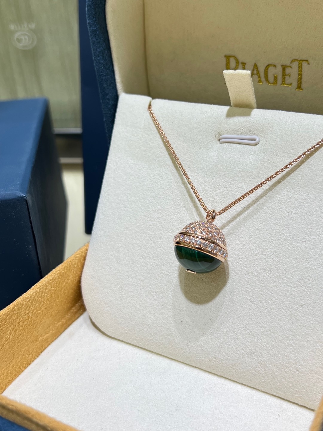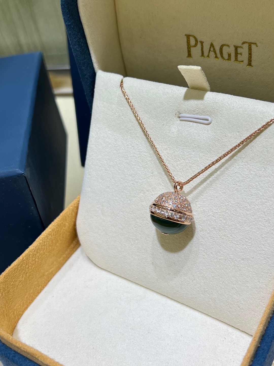 Piaget Колье из 18-каратного розового золота с бриллиантами и малахитом. Малахит, известный своим глубоким зеленым цветом и бархатной поверхностью, придает колье роскошный вид.