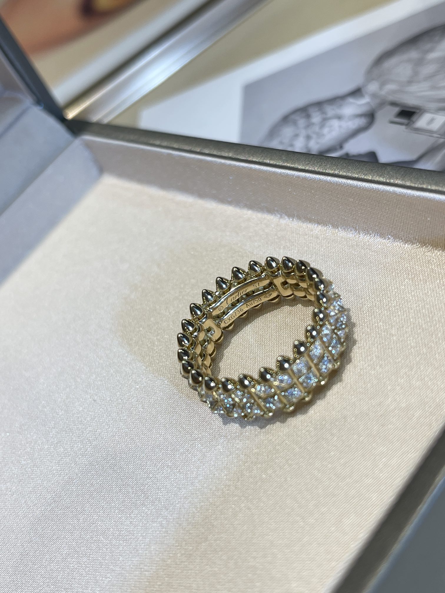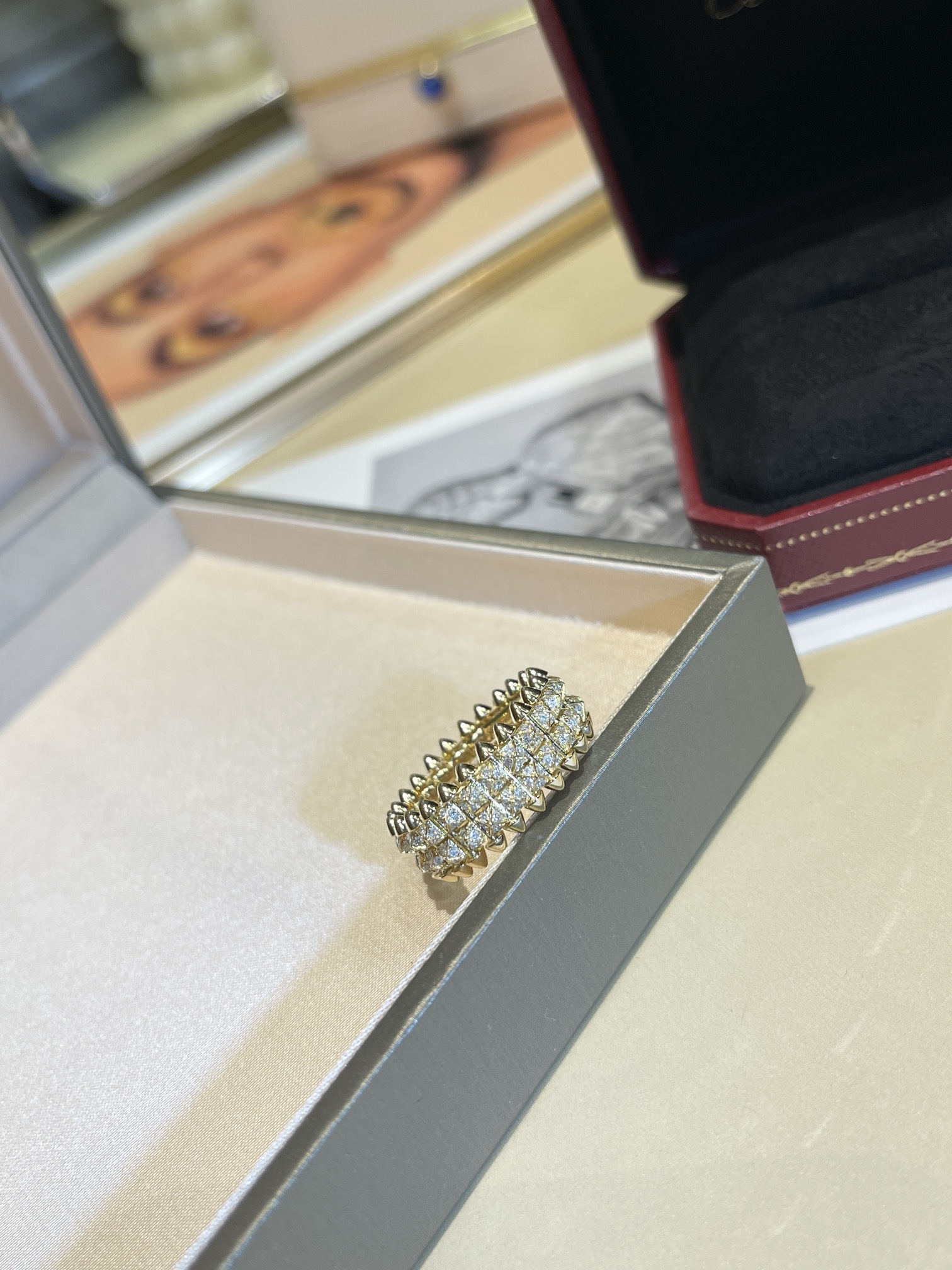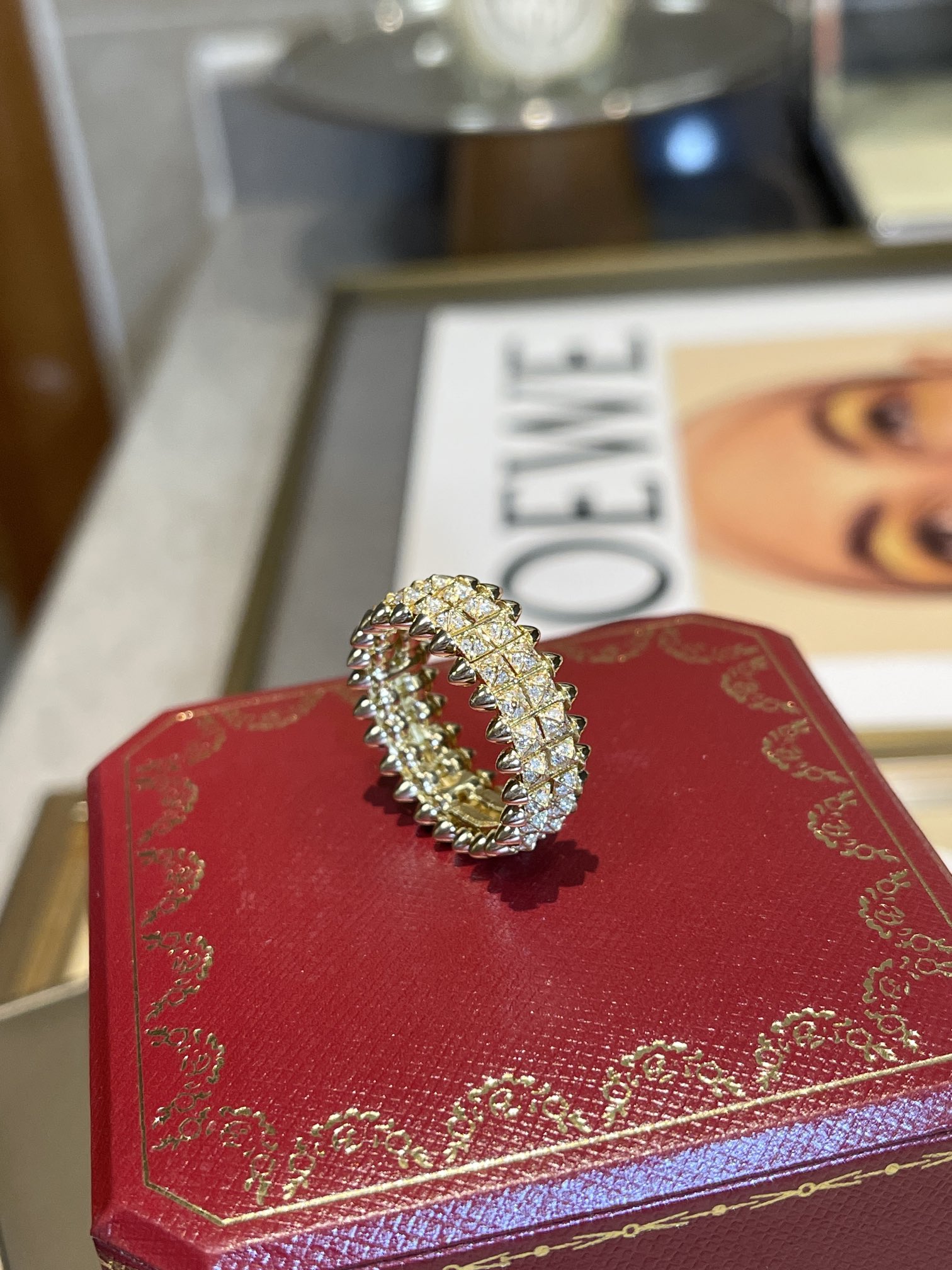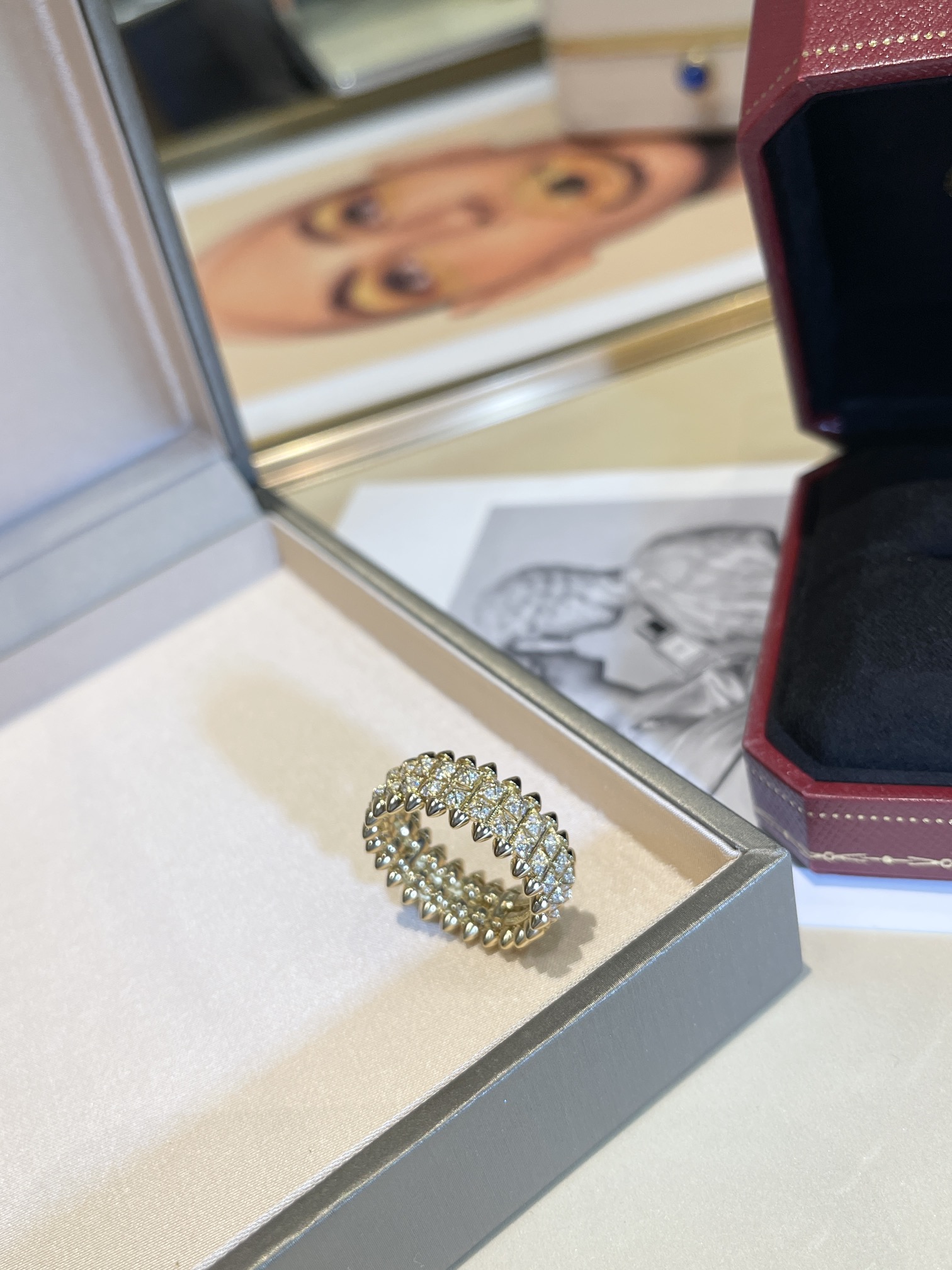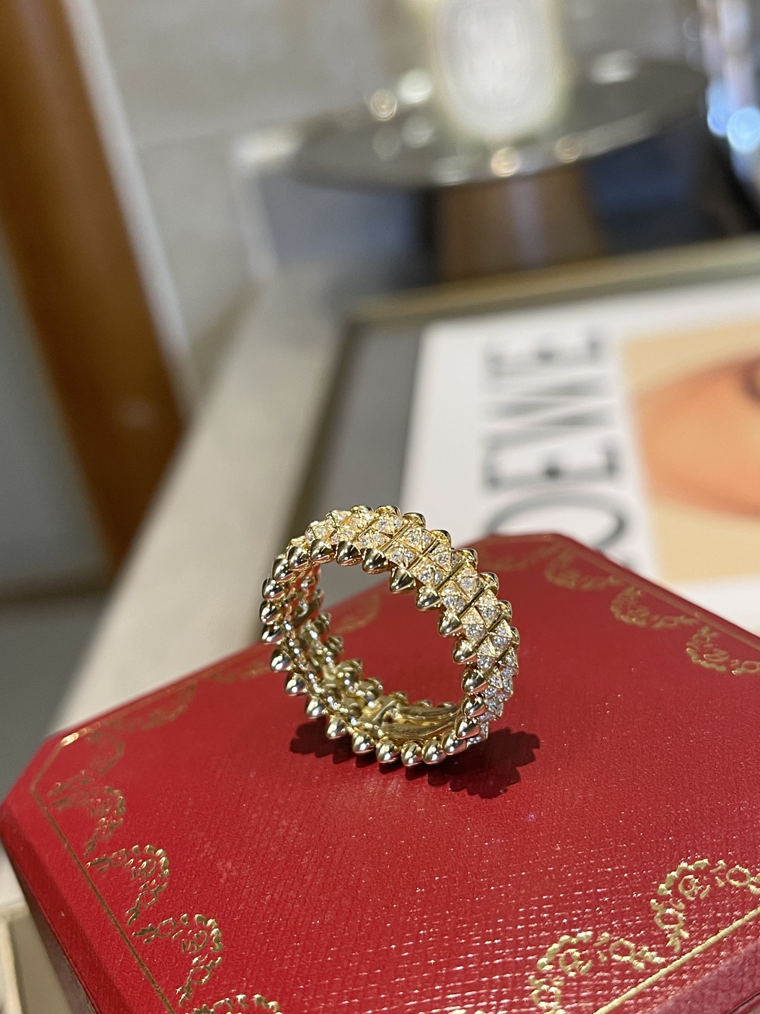 Кольцо Clash de Cartier, два ряда, желтое золото и бриллианты. Шипы символизируют силу, индивидуальность и смелость. Их угловатая форма создает контраст с традиционной ювелирной эстетикой.