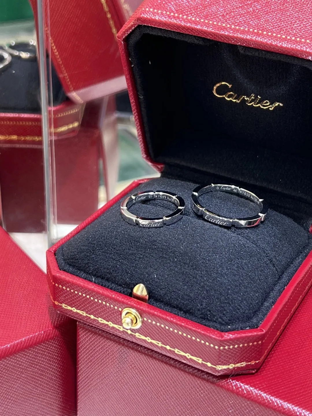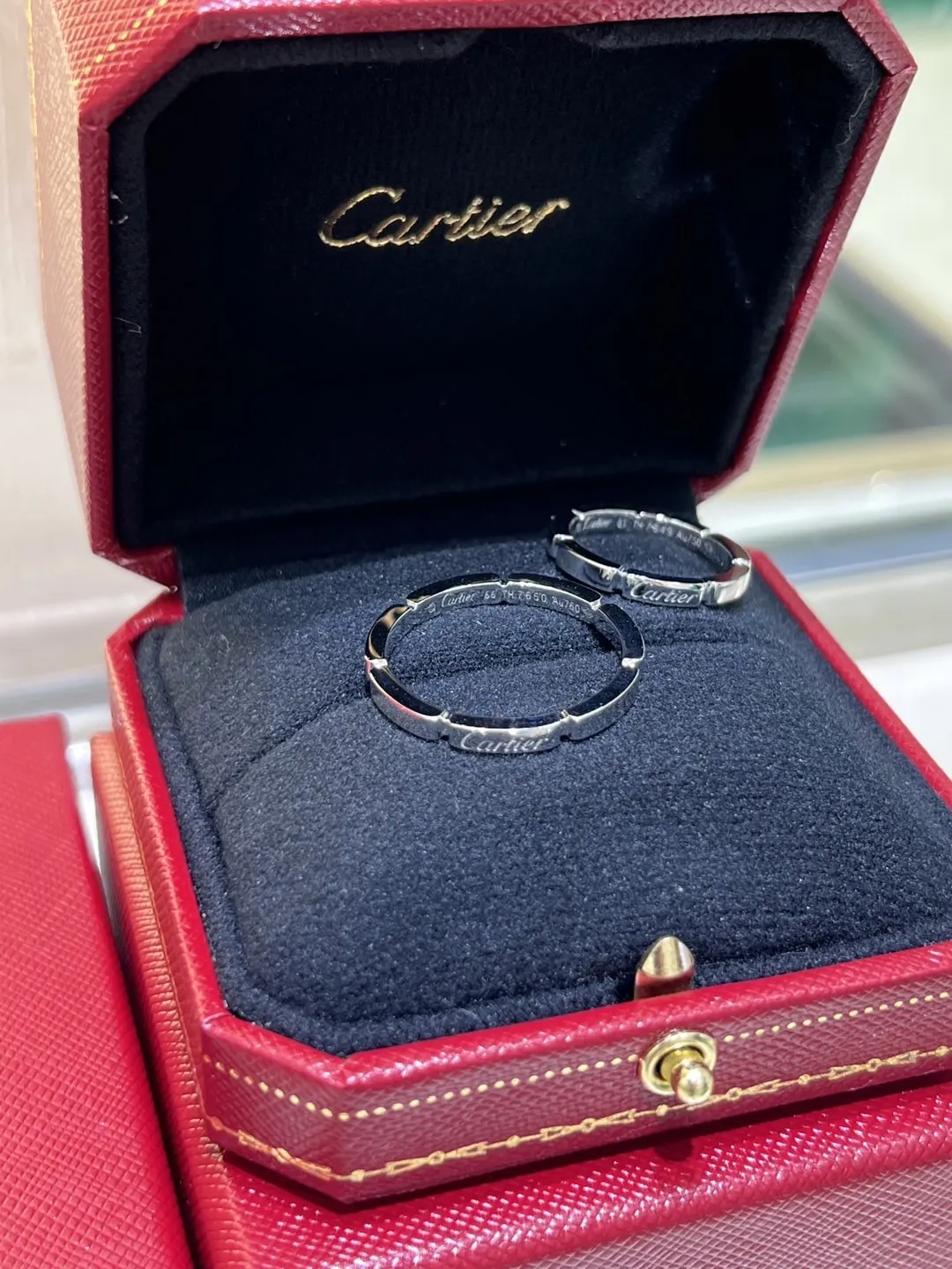Cartier Обручальное кольцо изготовлено из 18-каратного белого золота. Кольцо отличается элегантной и простой формой, напоминающей классический обручальный дизайн.