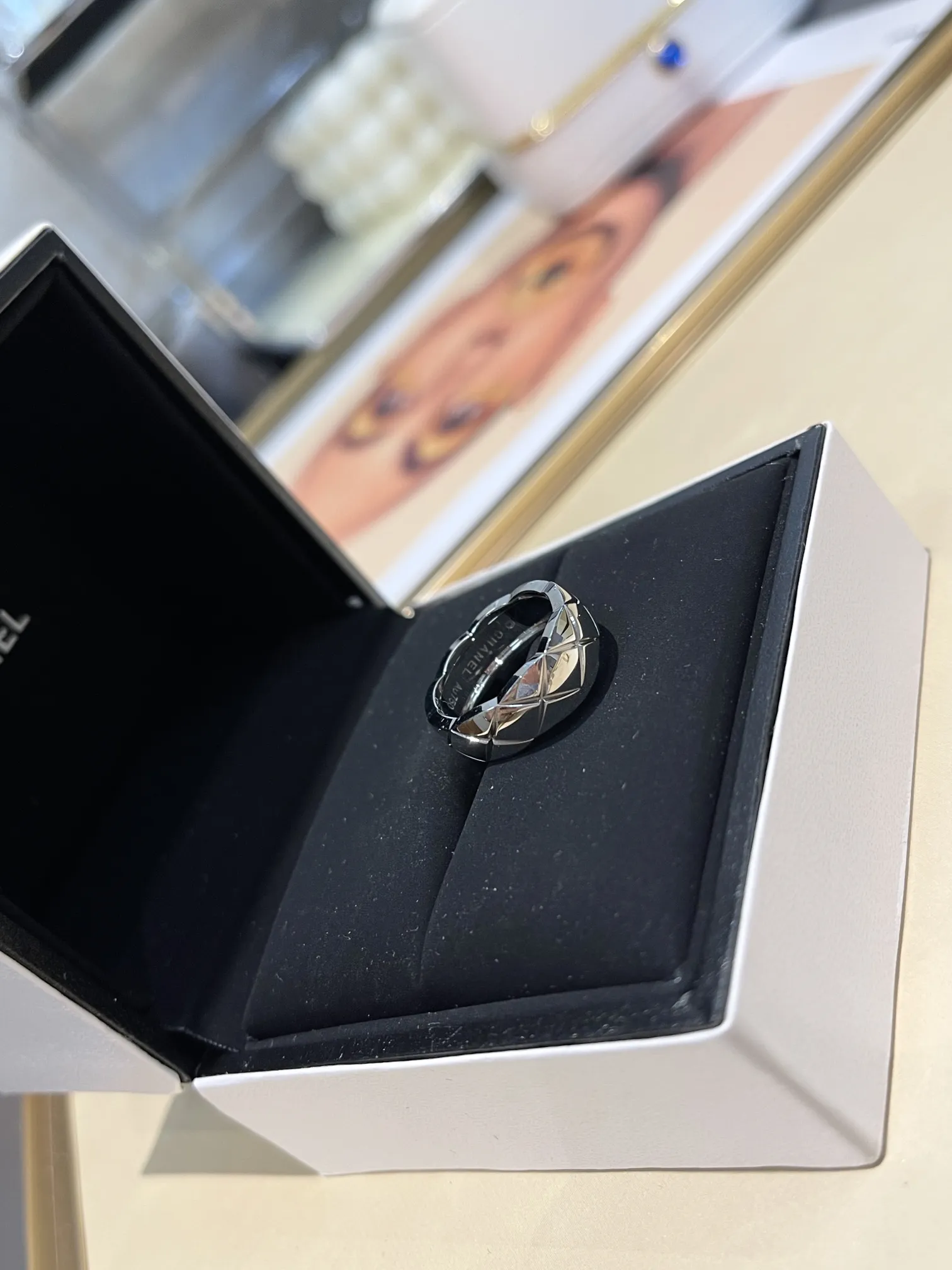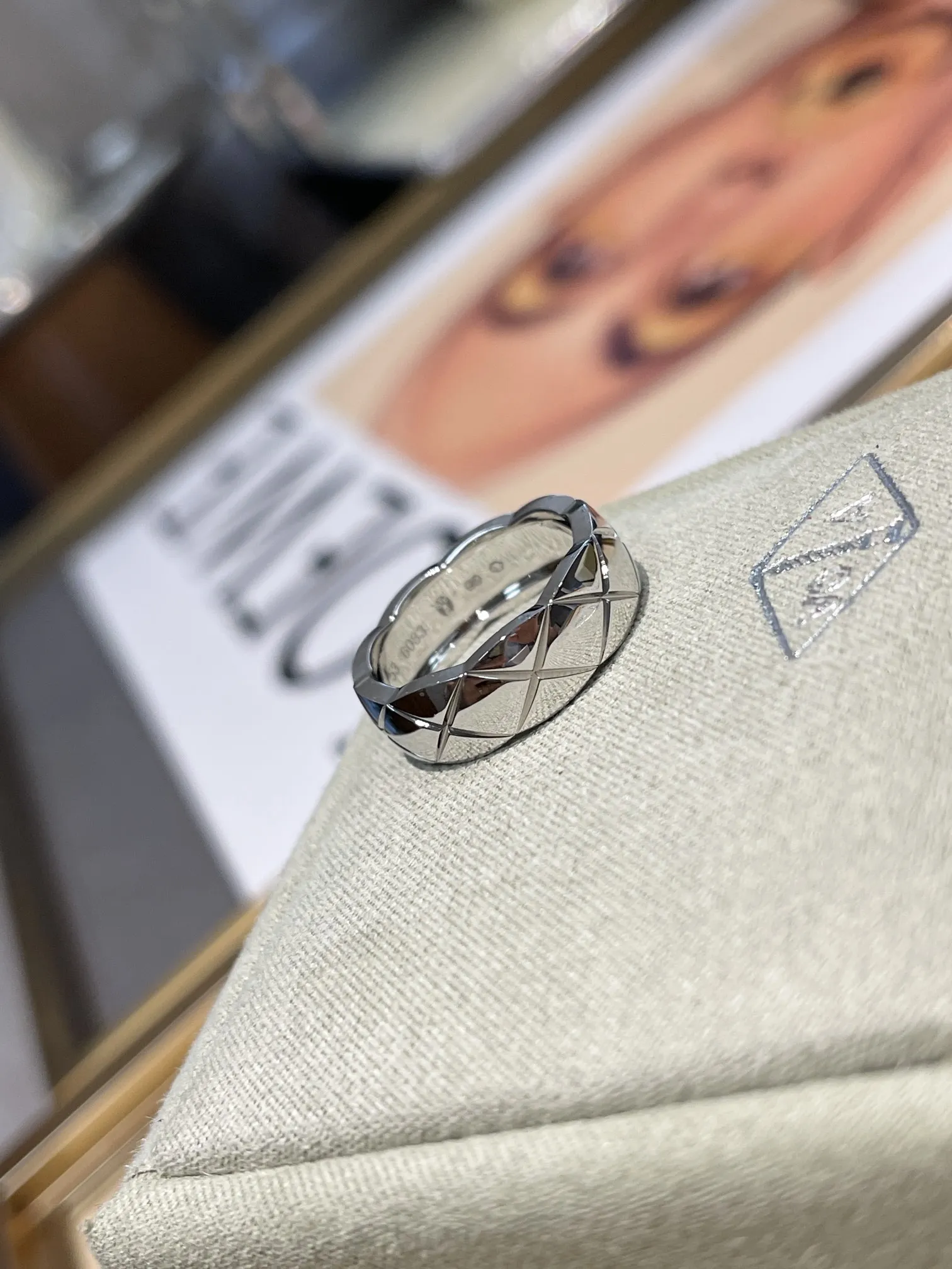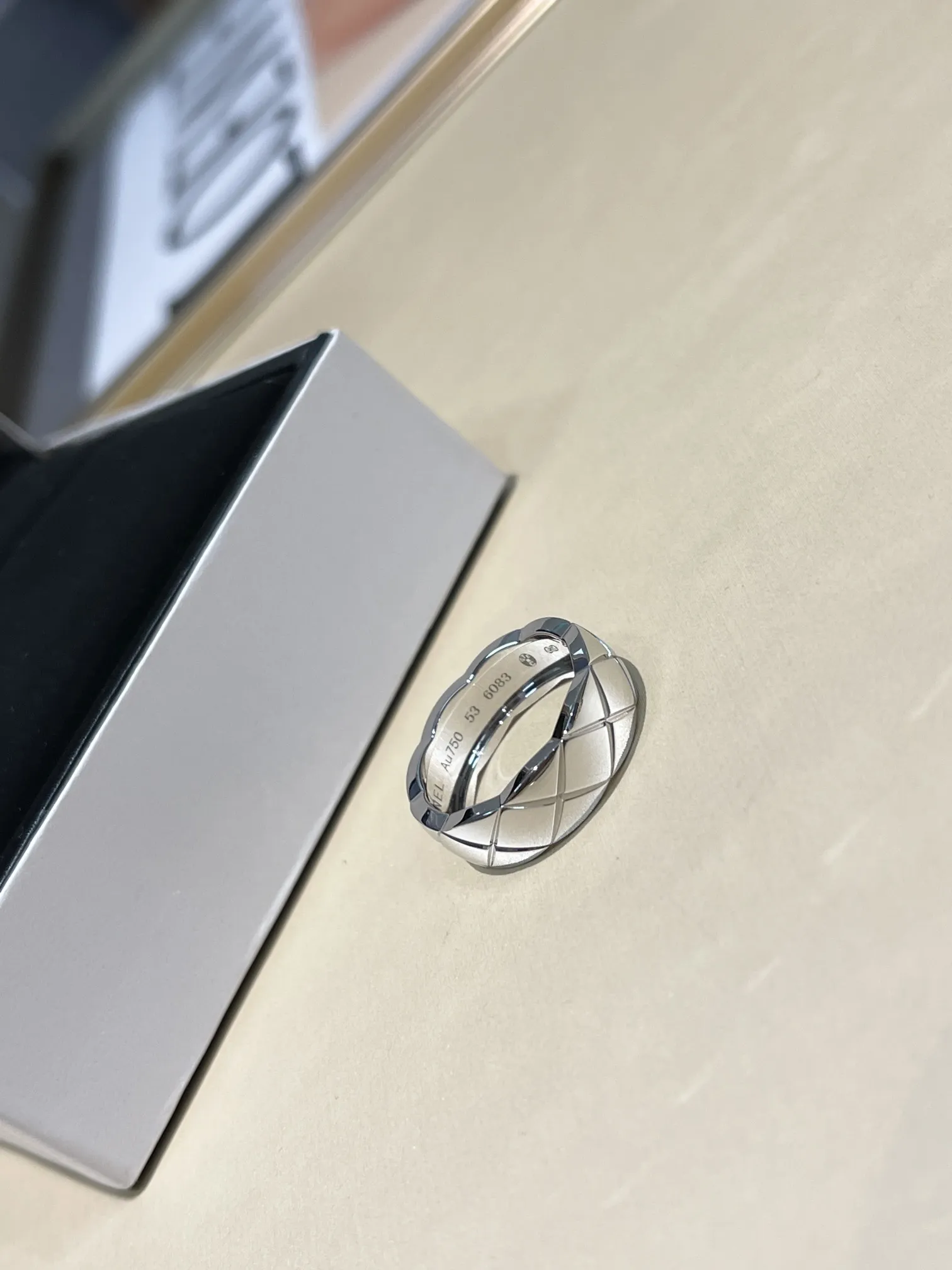 Кольцо Chanel Coco Crush из 18-каратного белого золота. Это элегантное и стильное украшение, которое воплощает в себе дух дома Chanel.