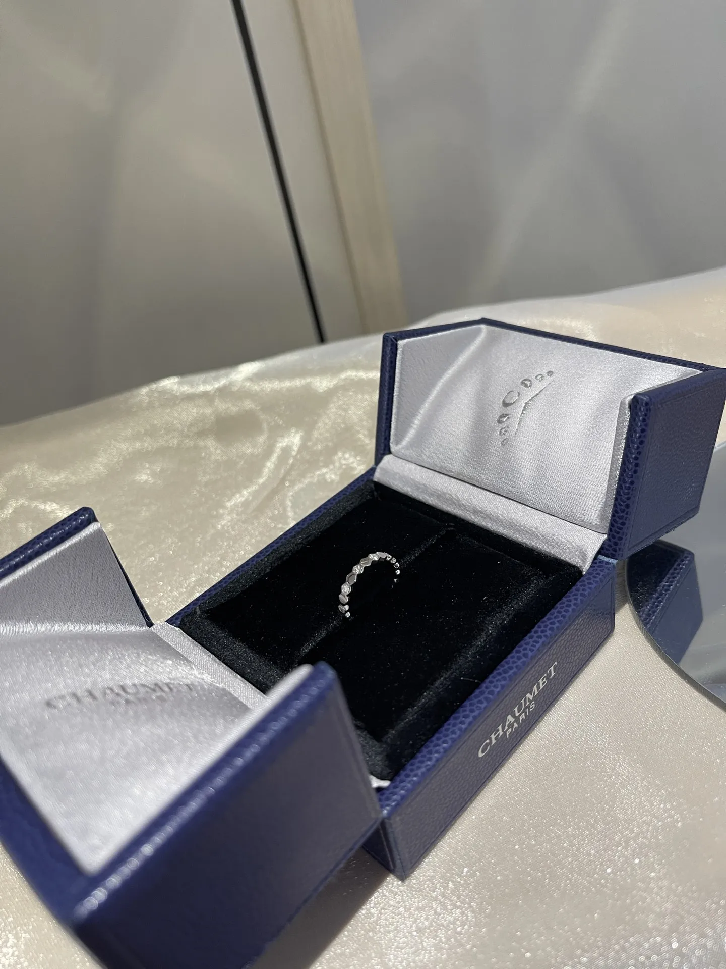 Погрузитесь в мир изящества с кольцом CHAUMET из белого золота, инкрустированным сверкающими бриллиантами. Этот дизайн сочетает в себе изысканность и современную утонченность, подчеркивая вашу неповторимую красоту и стиль. Идеальный аксессуар для особенных моментов и повседневной элегантности.