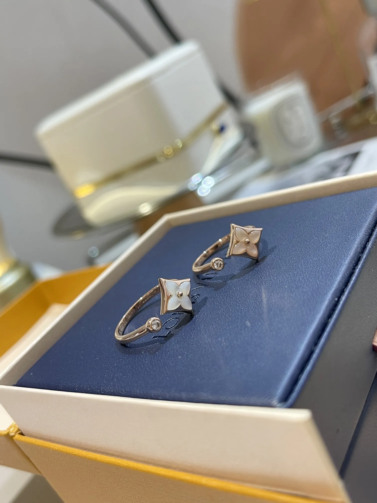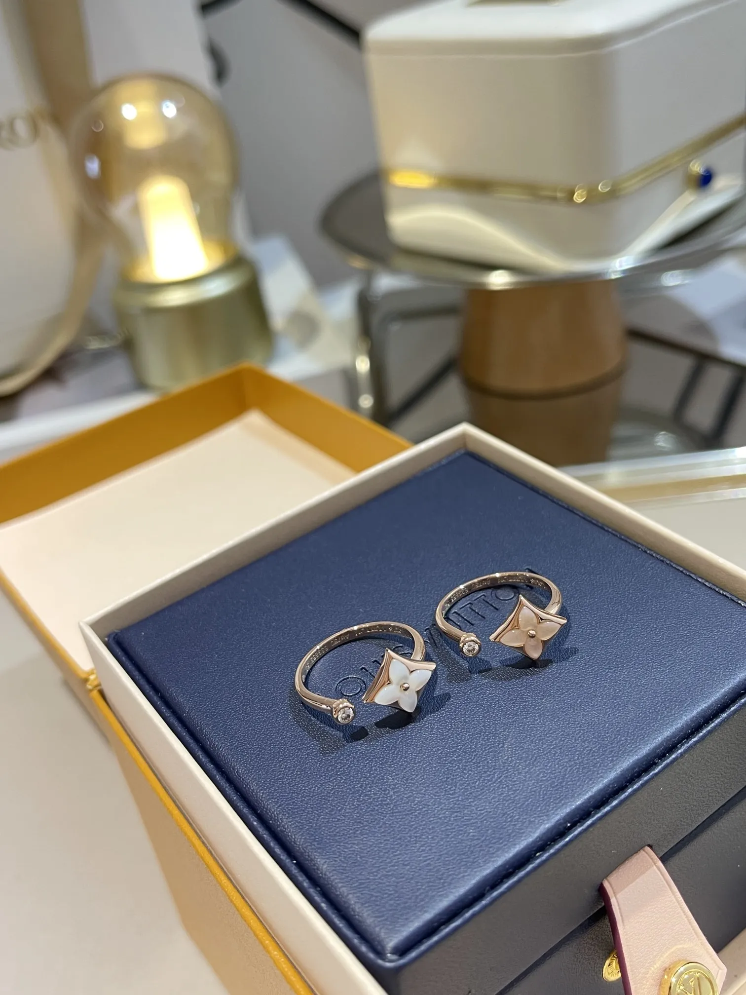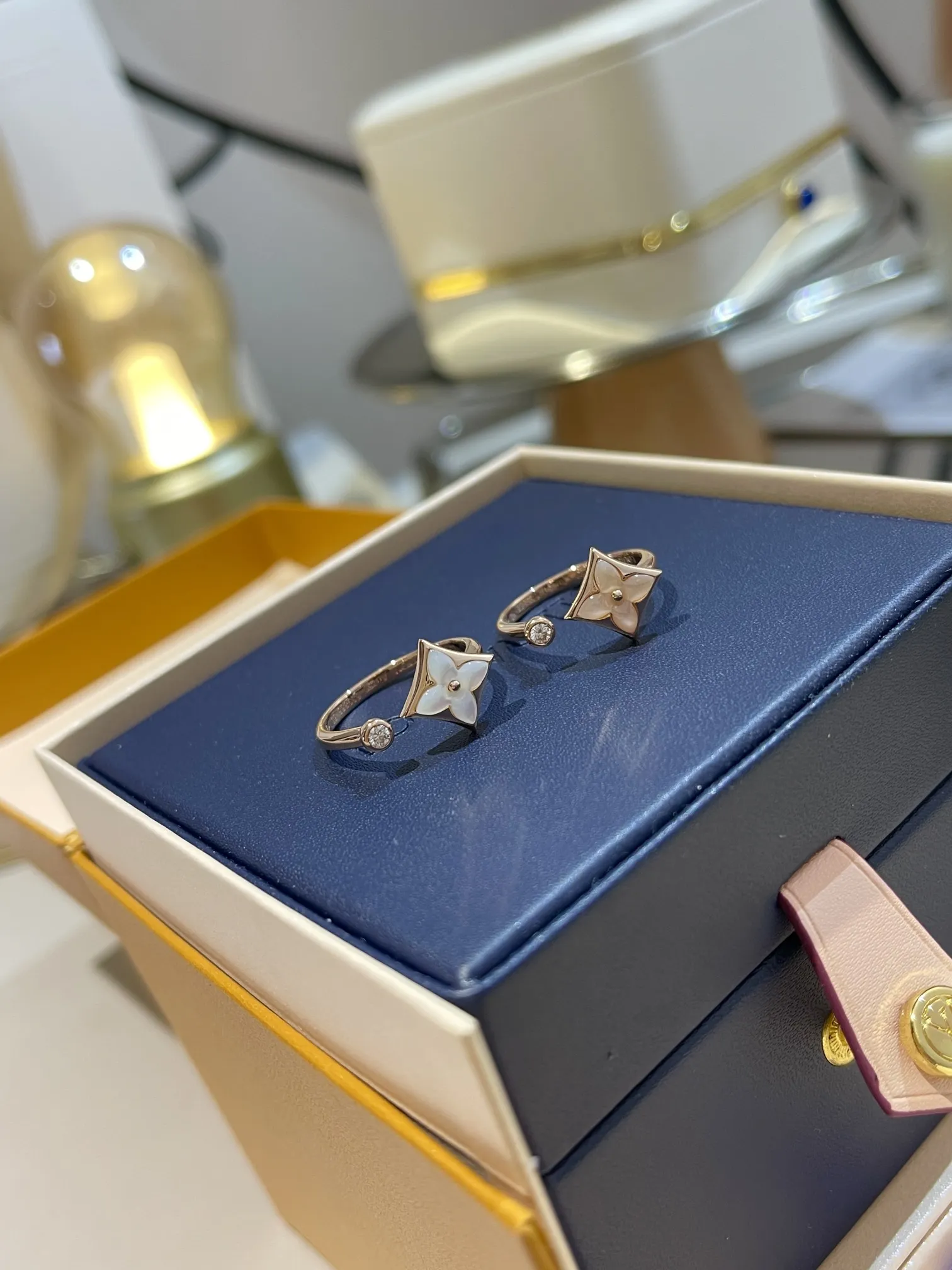 Женское кольцо Louis Vuitton из розового золота и перламутра. Этот материал известен своим естественным, нежным блеском и радужной игрой света.