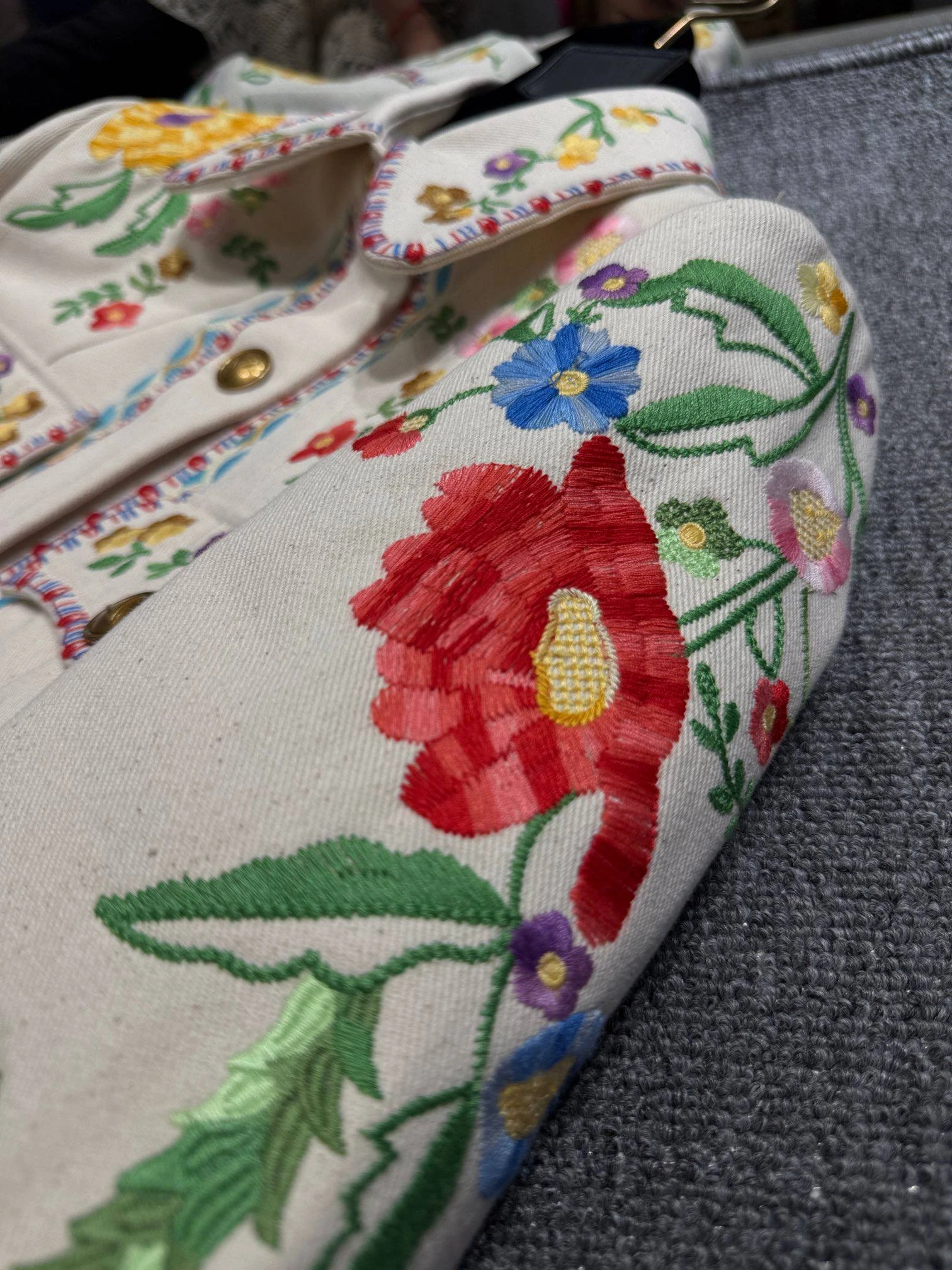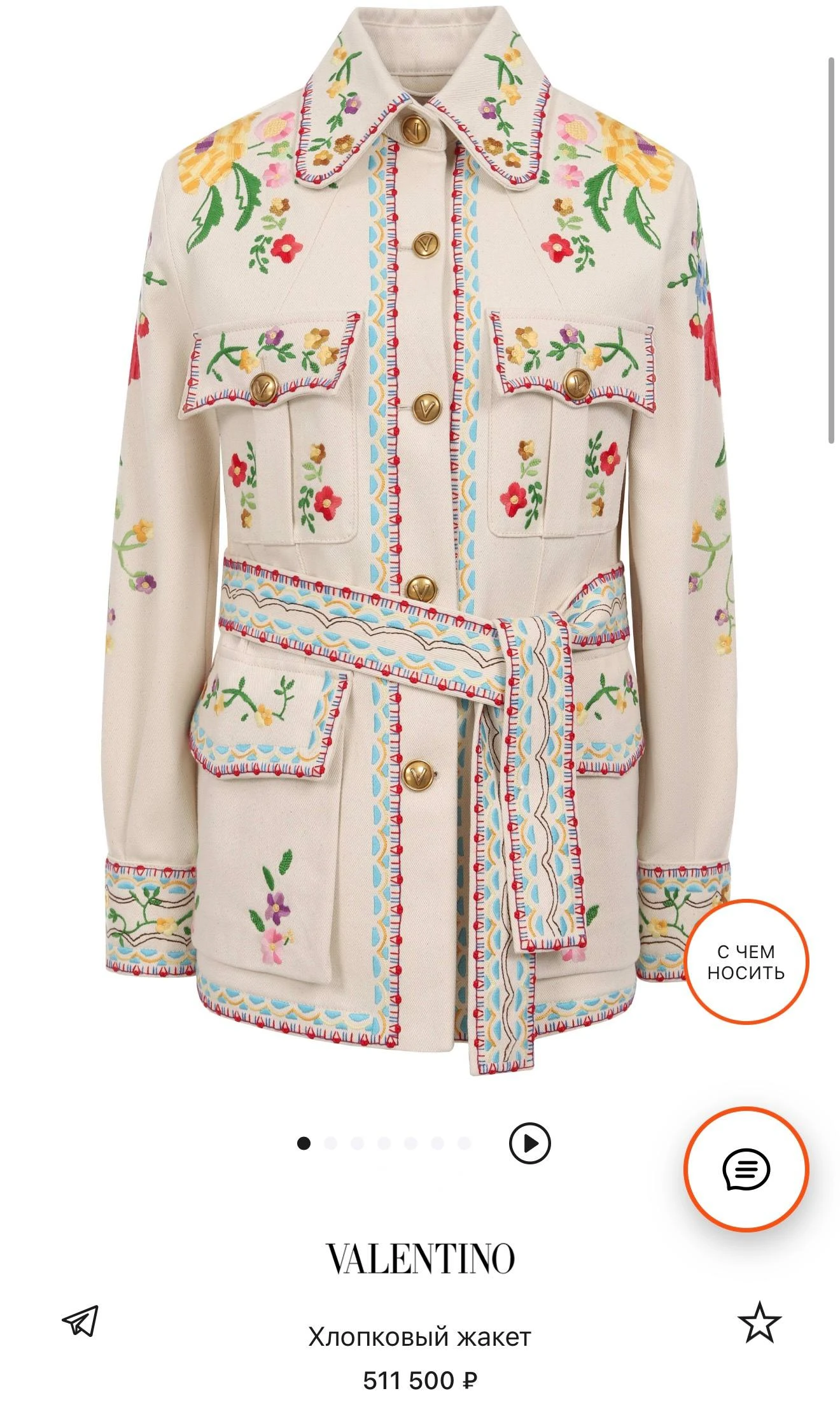 • Цвет: кремово-слоновая кость с многоцветной вышивкой.