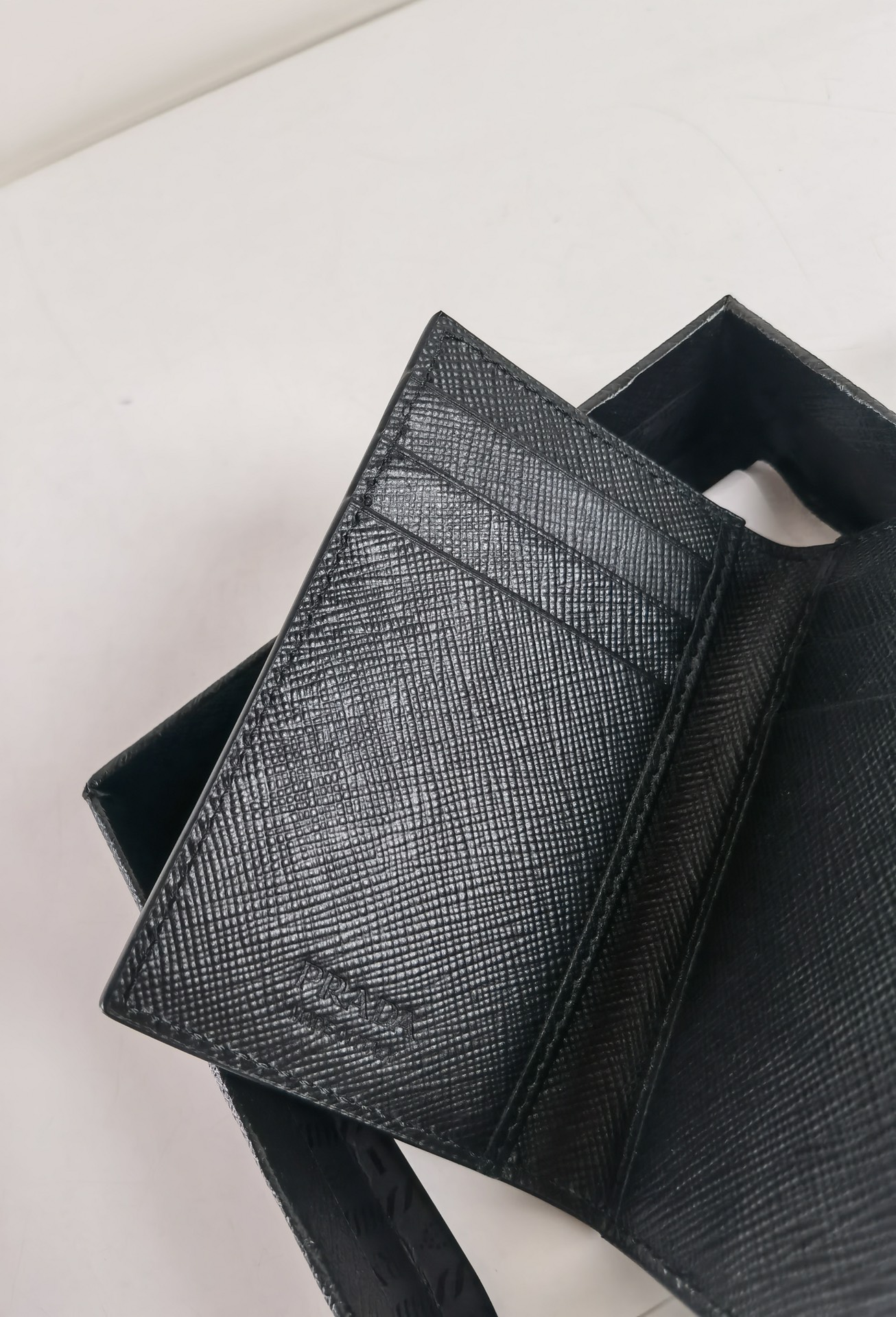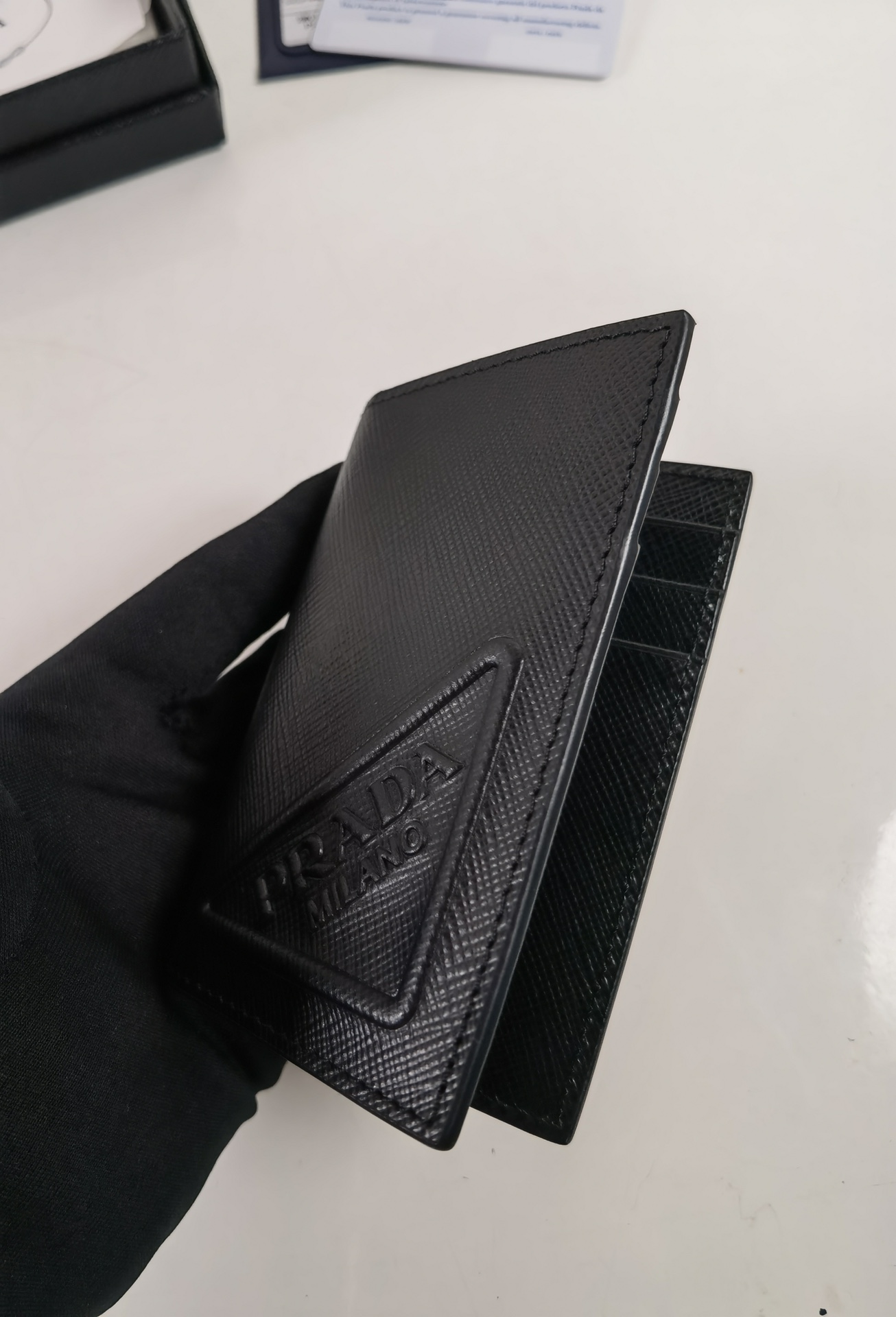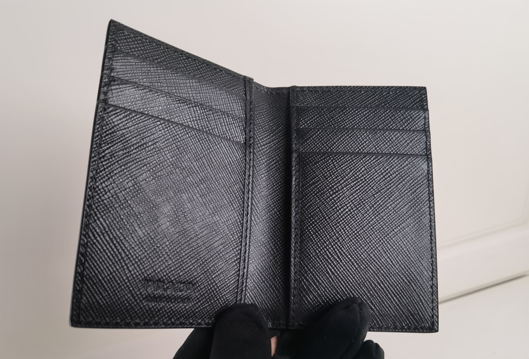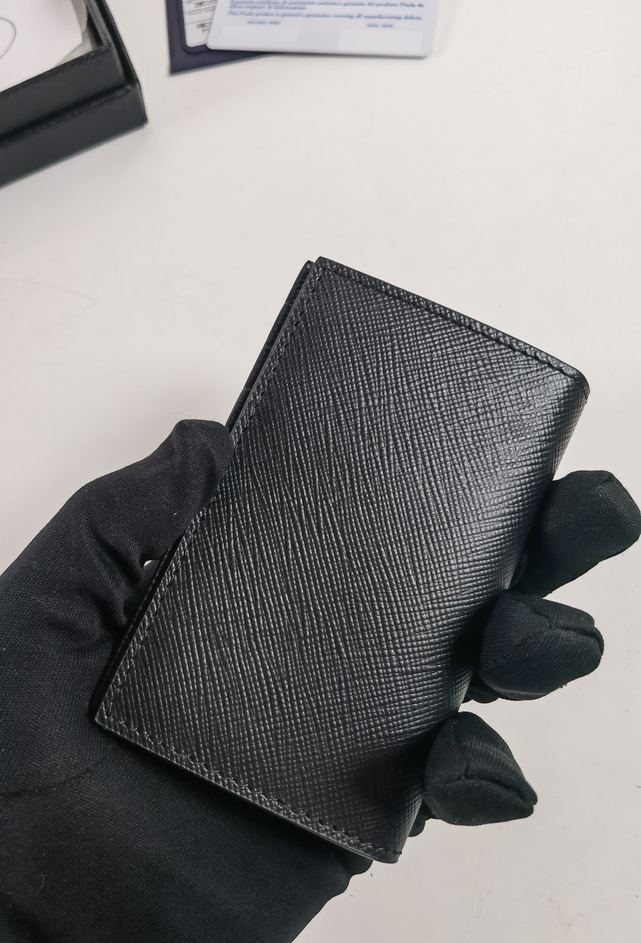 Картхолдер Prada изготовлен из высококачественной кожи и представляет собой стильный и практичный аксессуар для хранения ваших кредитных карт, дебетовых карт и других важных документов. Эта кредитница имеет шесть слотов для карт, что обеспечивает удобное размещение и организацию. Логотип Prada дополняет стильный образ этого аксессуара и придает ему дополнительную изысканность.