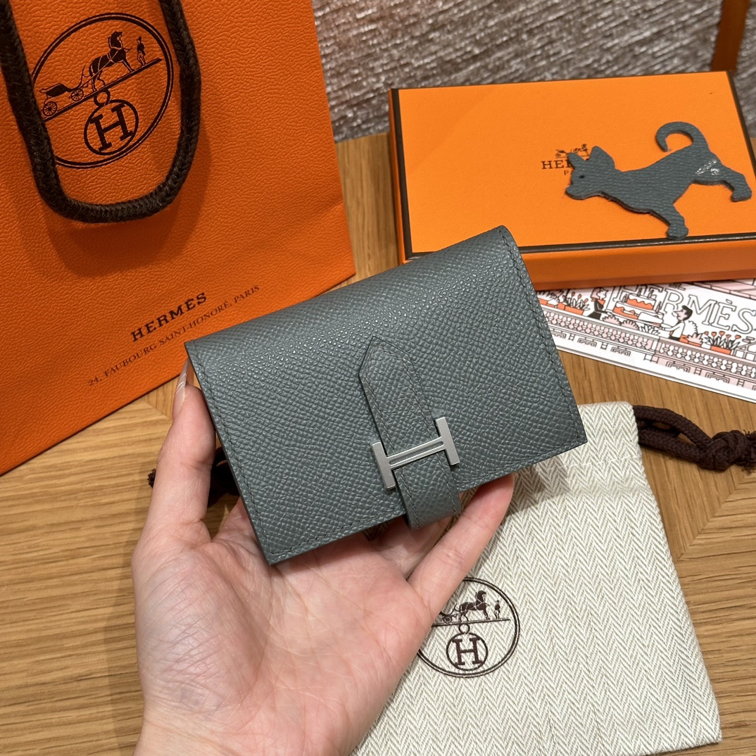 HERMES Кошелёк Bearn 10 см 63/Vert Amanda Epsom