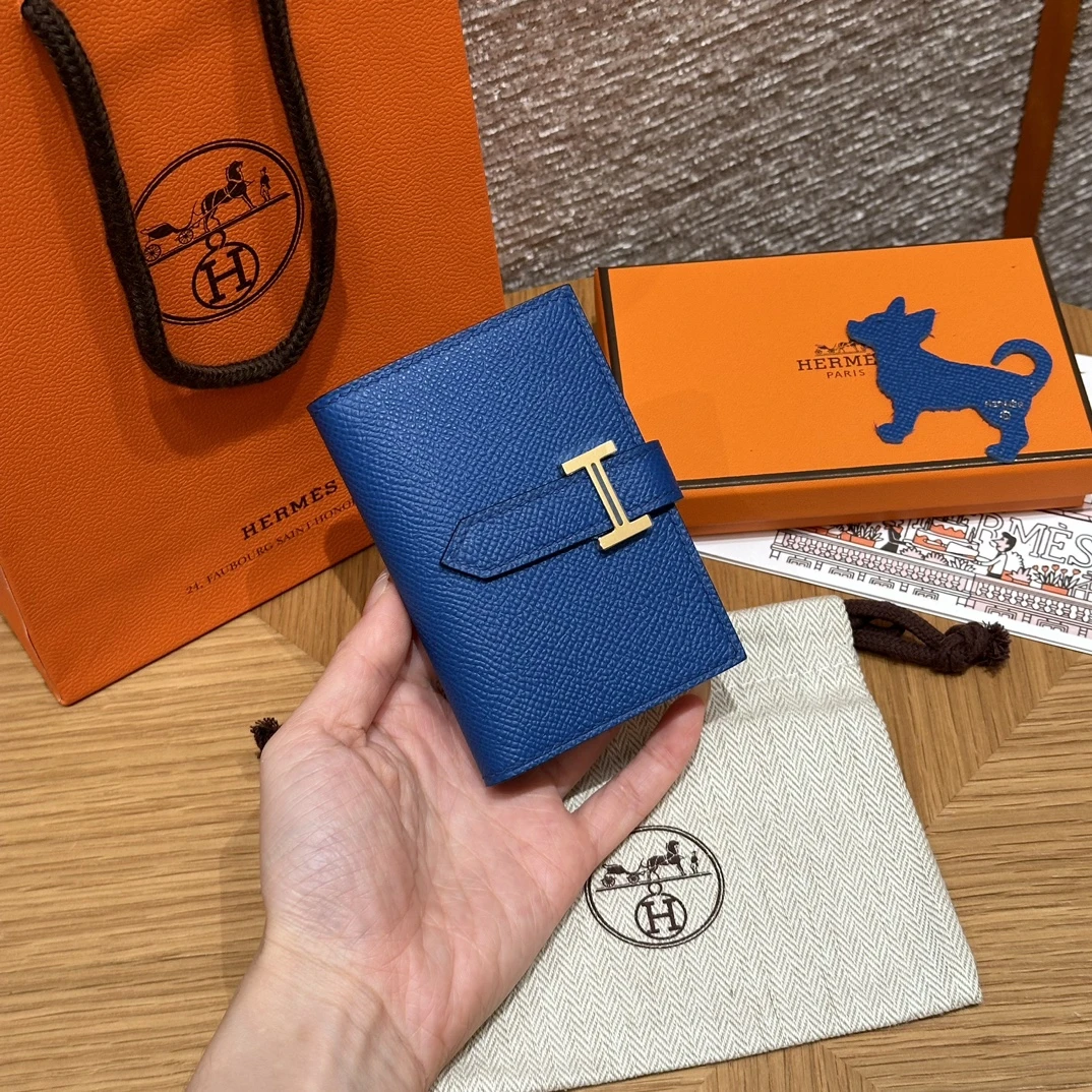 Компактный размер 10 см позволяет удобно носить кошелёк в сумке или кармане. Классический дизайн дополняет культовая застёжка в виде литеры “H”, выполненная из металла с золотым покрытием — фирменная деталь Hermès.