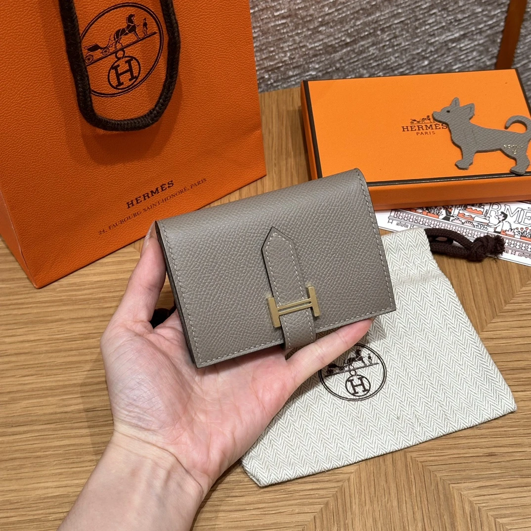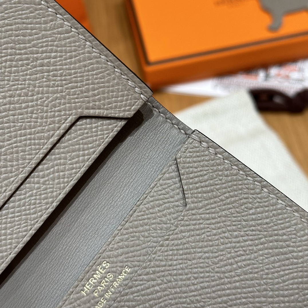 HERMES Кошелёк Bearn 10 см 87/Gris Asphalted Epsom