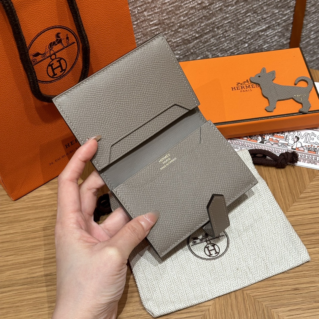 Элегантный кошелёк HERMES Bearn выполнен из премиальной кожи Epsom в изысканном оттенке 87/Gris Asphalted — современный серо-асфальтовый цвет, который прекрасно сочетается с любыми аксессуарами. Компактный размер 10 см позволяет удобно носить кошелёк в небольшой сумке или клатче.