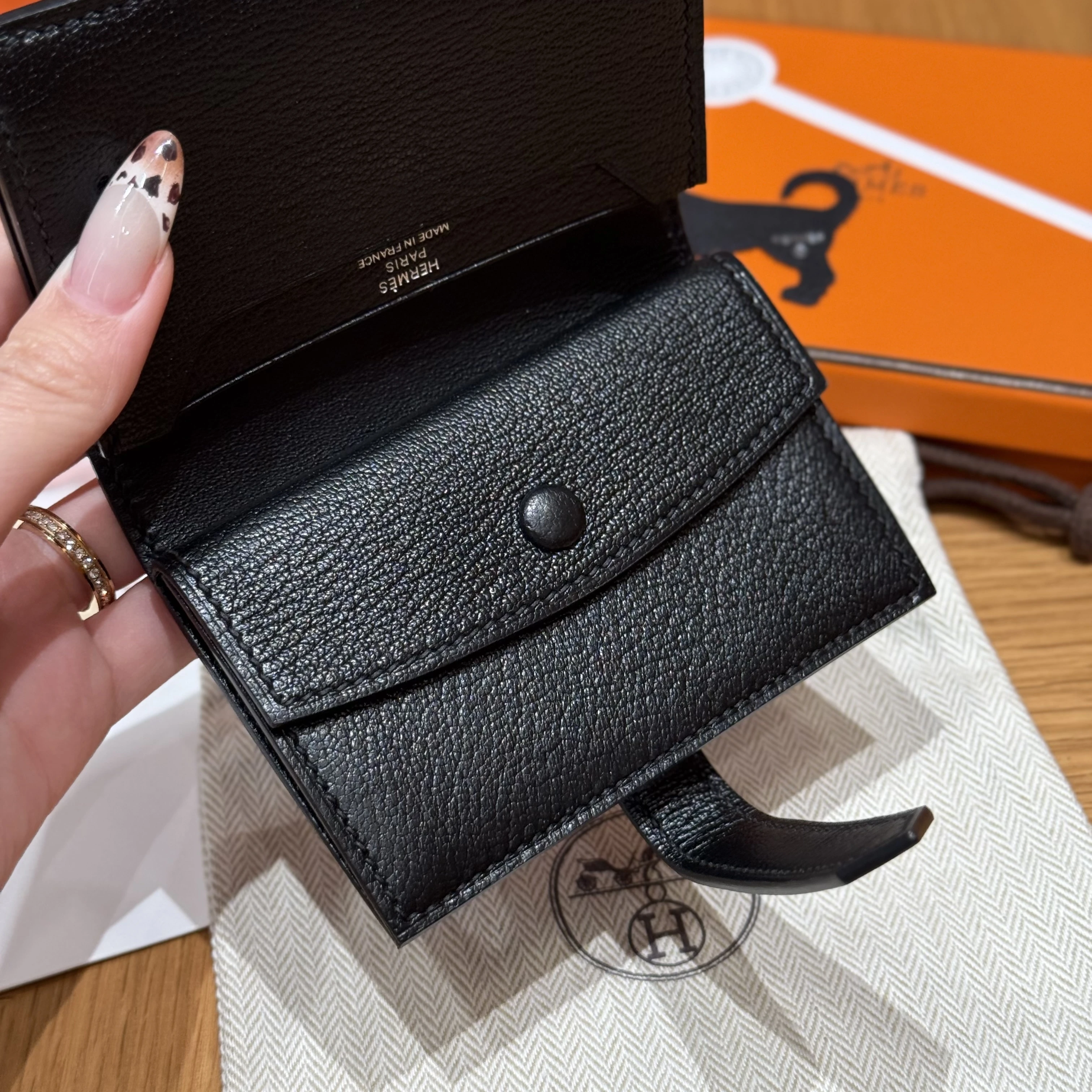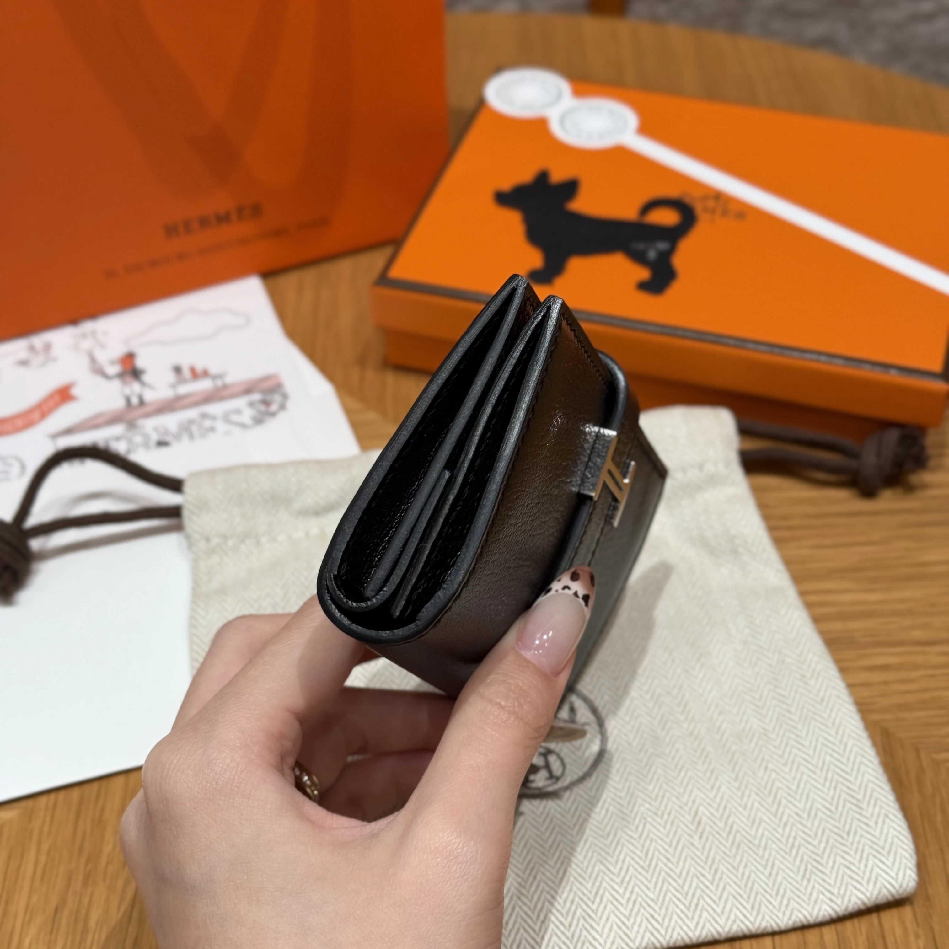 HERMES Кошелёк Bearn 10 см 89/Noir Chèvre