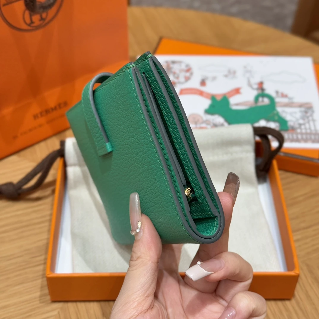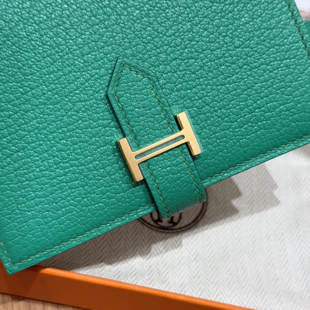 HERMES Кошелёк Bearn 12 см 0T/Vert comics Chèvre