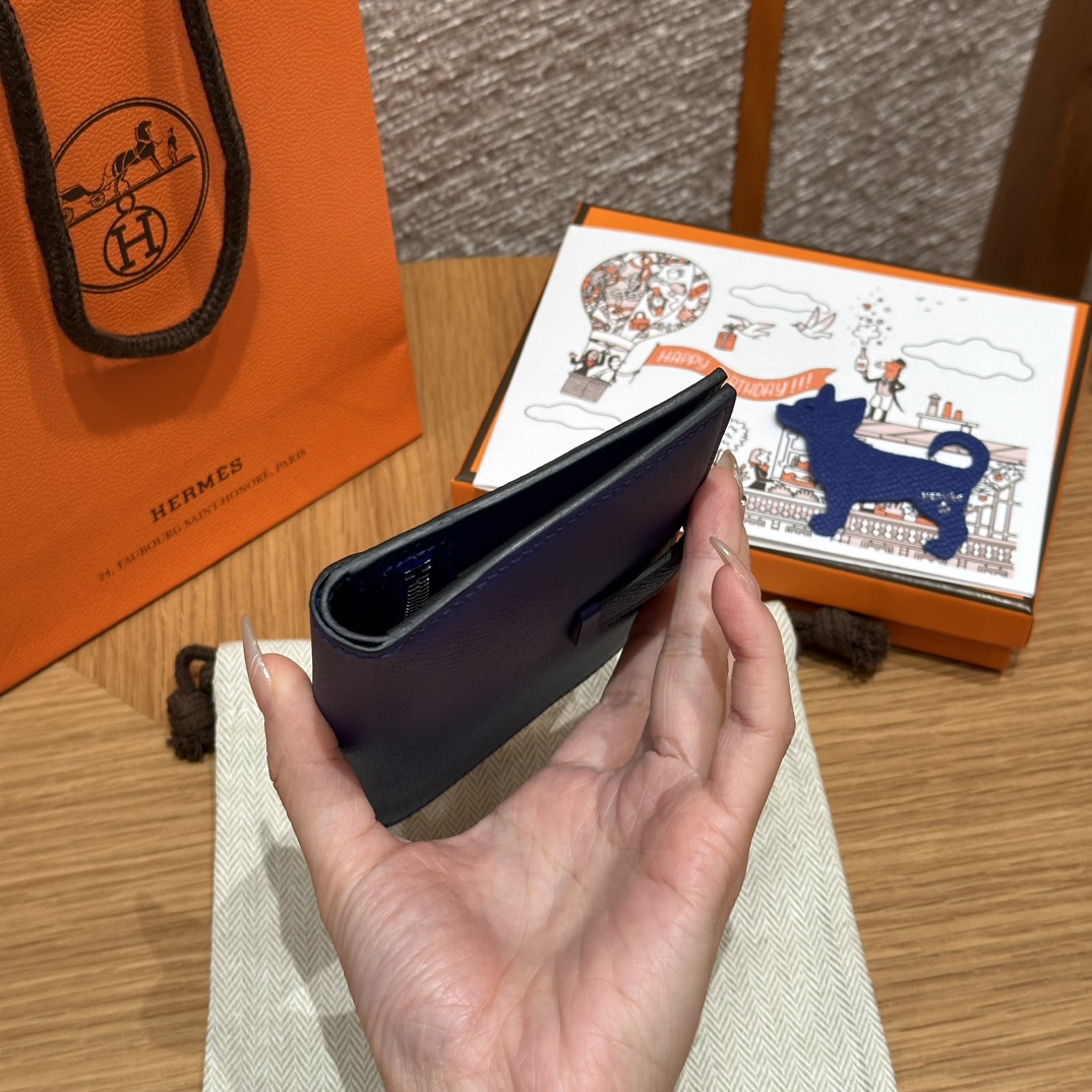 HERMES Кошелёк Bearn 12 см 7T/Blue electric Epsom