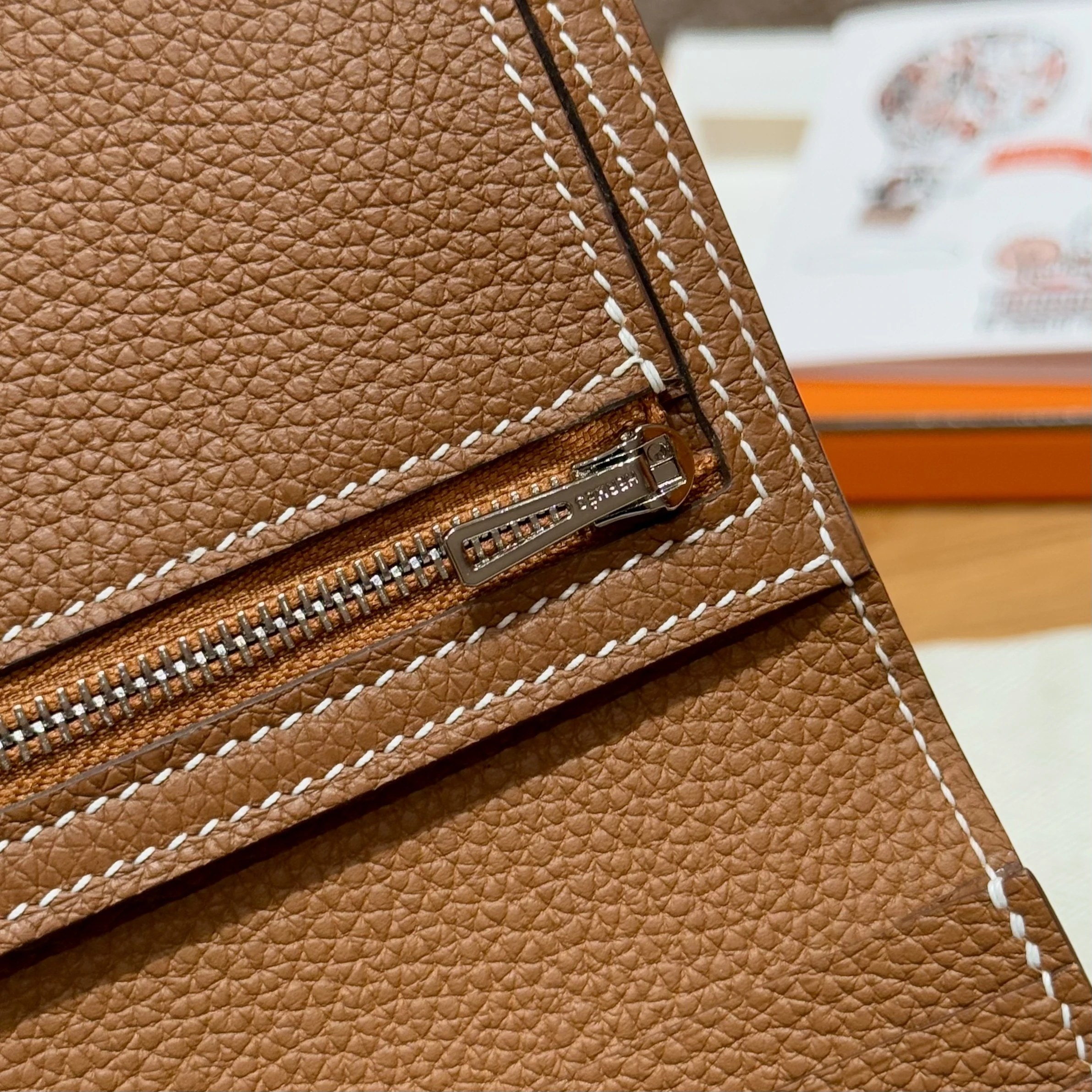 Кожа Togo славится своей мягкой фактурой, устойчивостью к царапинам и долговечностью, а контрастная белая строчка добавляет изысканности и завершенности образу. Внутри кошелек оснащен многочисленными отделениями для карт, наличных и документов, обеспечивая максимальное удобство на каждый день.