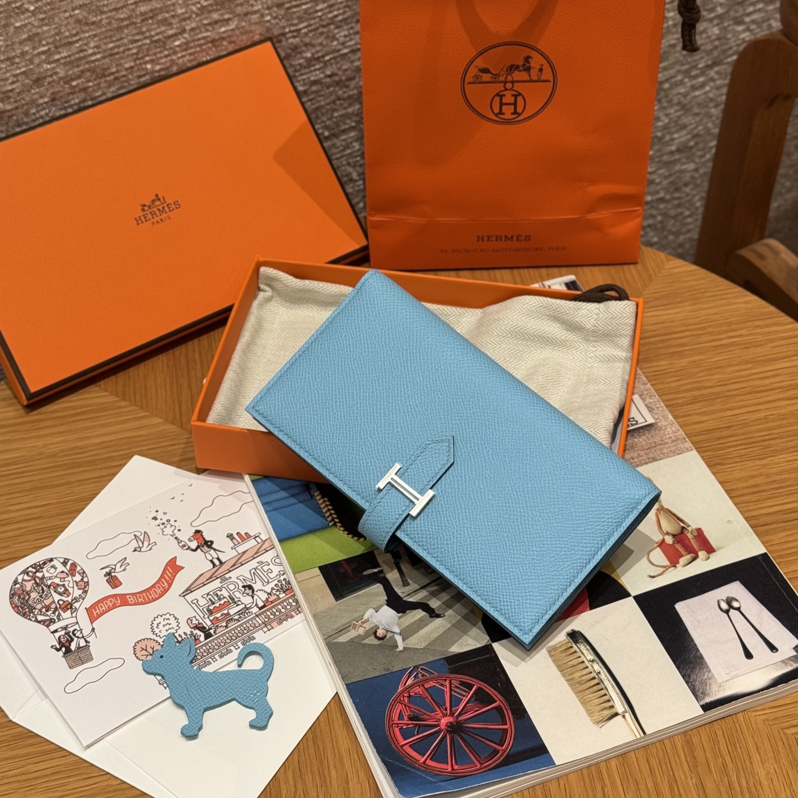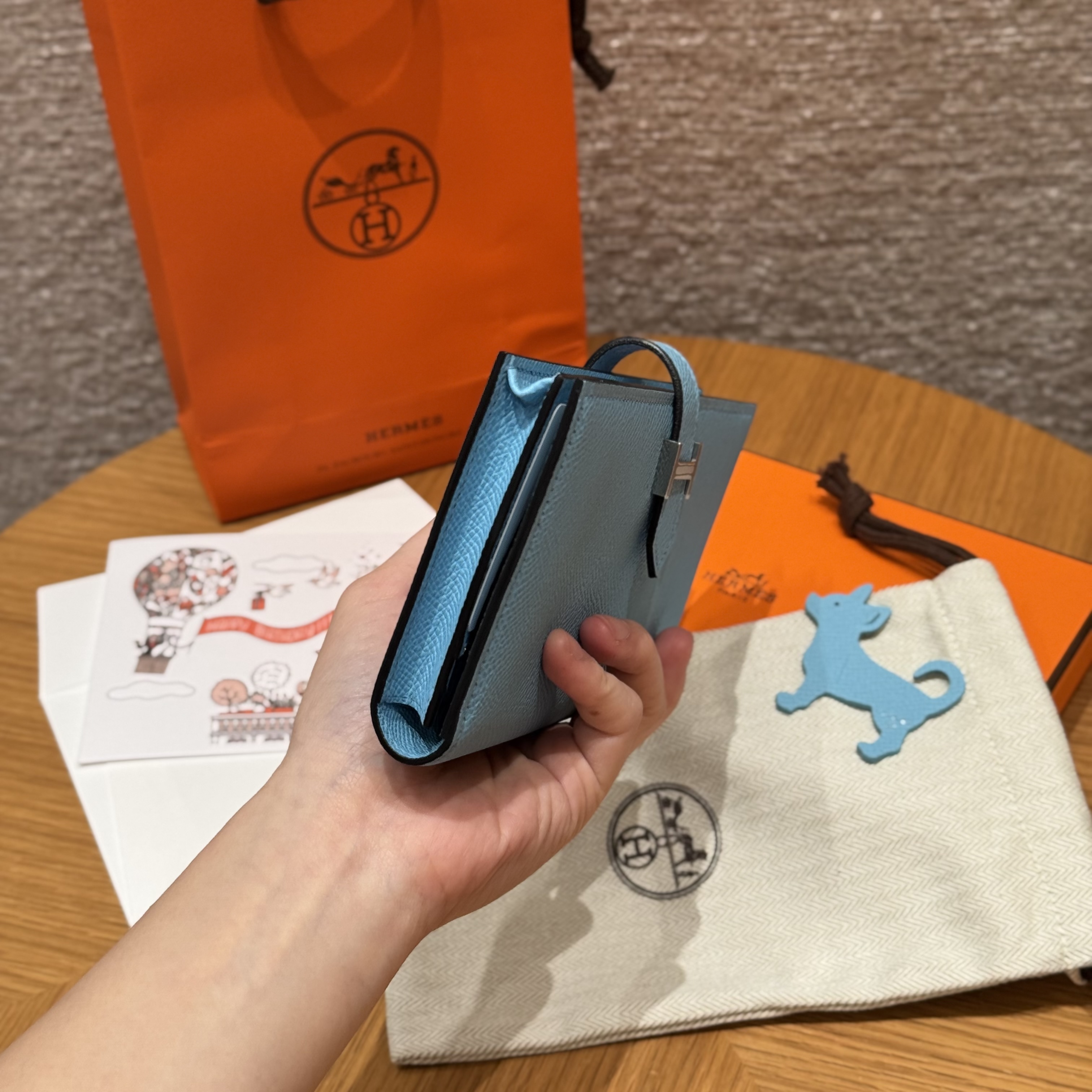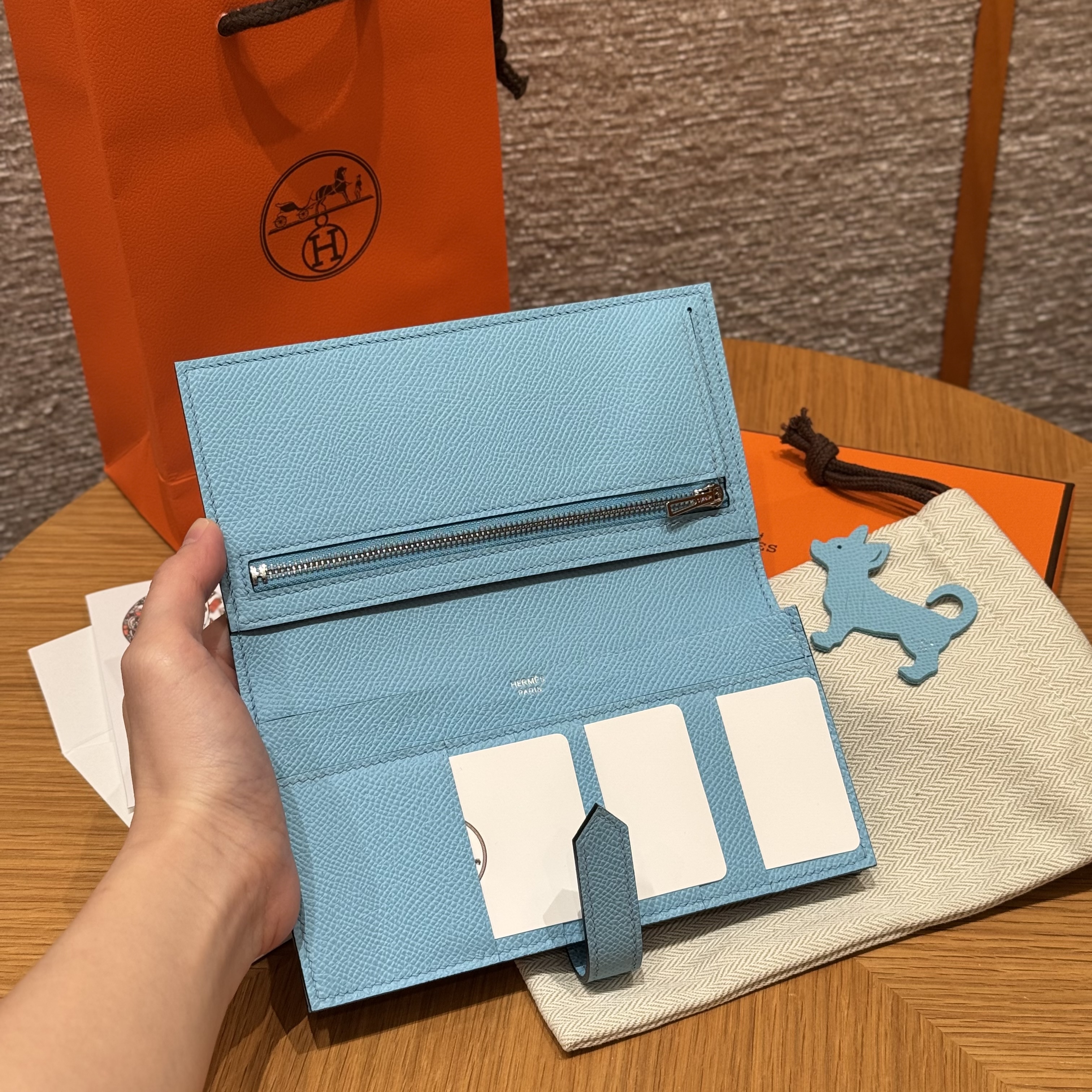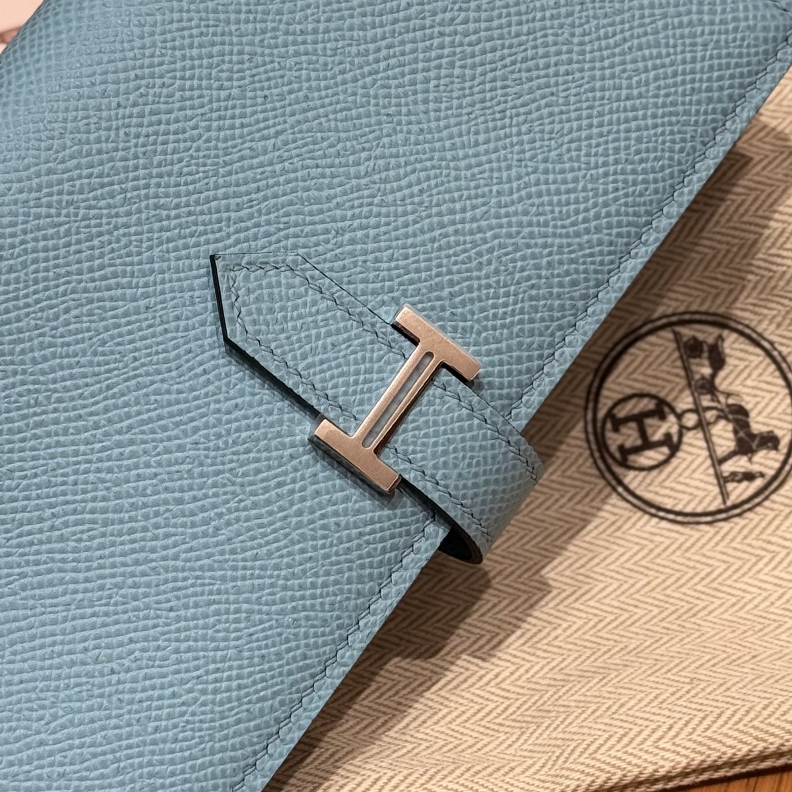 HERMES Кошелёк Bearn 17.5 см 7N/Celeste Epsom