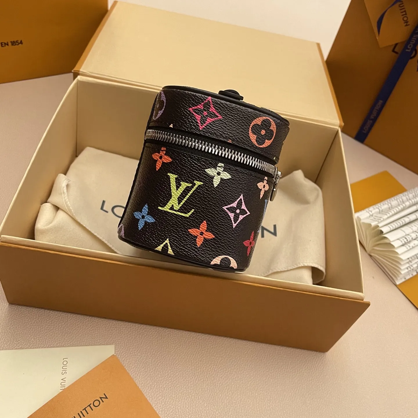 Погрузитесь в мир искусства и моды с этой очаровательной косметичкой из лимитированной коллекции Takashi Murakami. Выполненная в черном цвете с яркими трехцветными акцентами, она станет не только практичным аксессуаром, но и стильным заявлением. Изготовленная из мягкой канвы Monogram, эта компактная косметичка сочетает в себе культовый стиль Louis Vuitton и игривый дизайн Murakami. Удобные кожаные ручки позволяют легко переносить ее, а благодаря плоской форме она идеально поместится в дорожной сумке или чемодане, экономя ценное пространство.