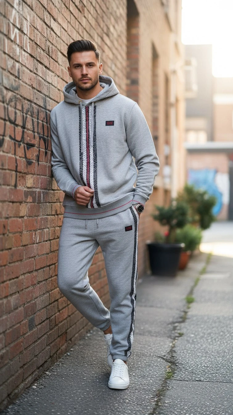 Мужской спортивный костюм BURBERRY выполнен в стильном светло-сером цвете, который идеально подходит для создания современного образа. Комплект состоит из удобных брюк и худи, обеспечивающих максимальный комфорт. Толстовка украшена брендовой пластиной на груди, что придаёт ей выразительный и запоминающийся вид. Этот костюм отлично подходит как для активного отдыха, так и для повседневной носки, сочетая в себе моду и функциональность.