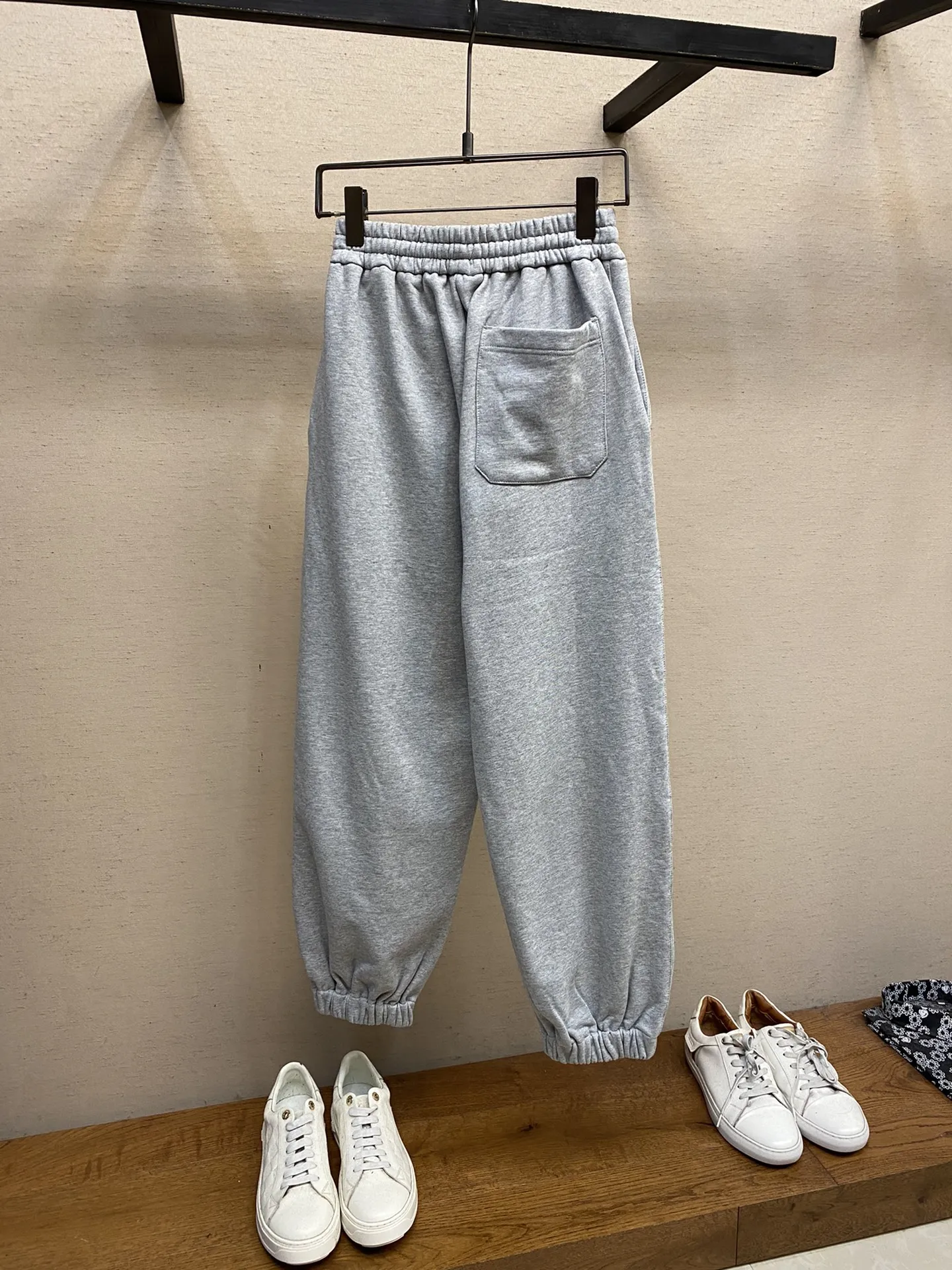 Спортивные брюки Gucci свободного силуэта, выполненные из серого начесанного хлопка, сочетают в себе стиль и комфорт. Они украшены эластичной хлопковой тканью с трехмерным флокирующим эффектом «Gucci Made in Italy». Брюки имеют пояс с кулиской, два наклонных передних кармана и задние карманы, а также эластичный край для удобной посадки. Изготовлены из 100% хлопка.