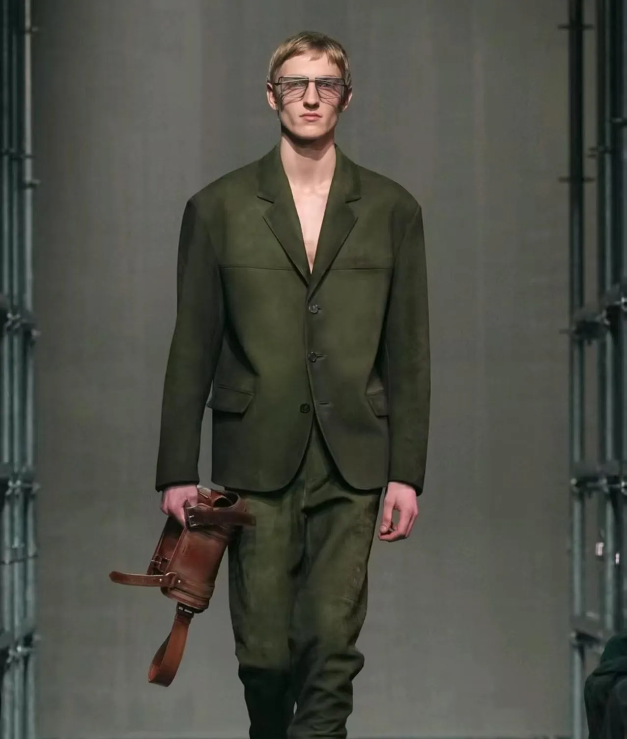 Мужской кожаный пиджак от Prada воплощает в себе элегантность и утонченность, характерные для итальянского бренда. Изготовленный из высококачественной новозеландской коровьей кожи, он отличается мягкостью и долговечностью.