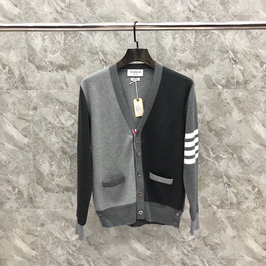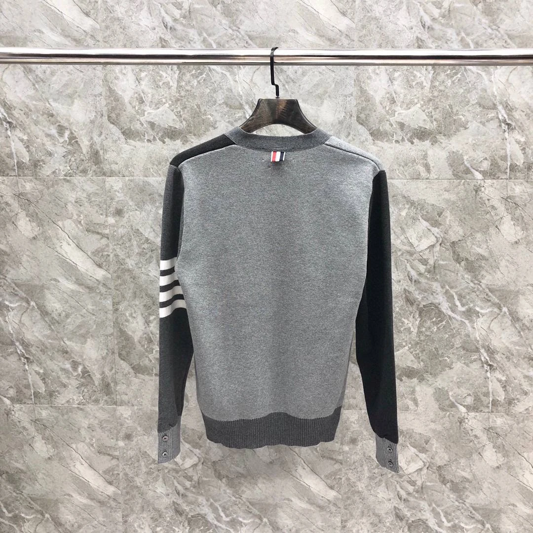 • Кардиган: V‑образный вырез, контрастные панели серого и черного цвета, накладные карманы и пуговицы. На левом рукаве — фирменные 4 белые полосы; внутри — фирменная трёхцветная лента на шовке (tricolor loop). Лаконичный, но выразительный элемент верхней одежды, который легко носить отдельно или в комплекте с брюками.