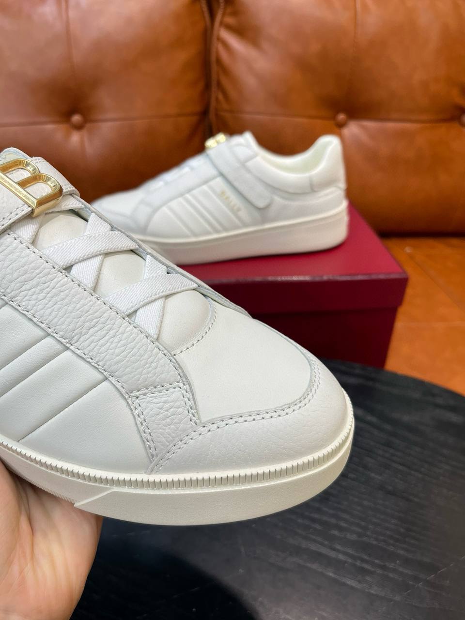 Представляем мужские кроссовки BALLY — идеальное сочетание комфорта и стиля. Эти кроссовки изготовлены из высококачественной телячьей кожи, что обеспечивает не только долговечность, но и приятные ощущения при носке. Элегантный дизайн с тройным крестом и удобными липучками придает обуви современный и минималистичный вид, который легко вписывается в любой гардероб. Эти кроссовки идеально подходят как для повседневной носки, так и для активного отдыха.