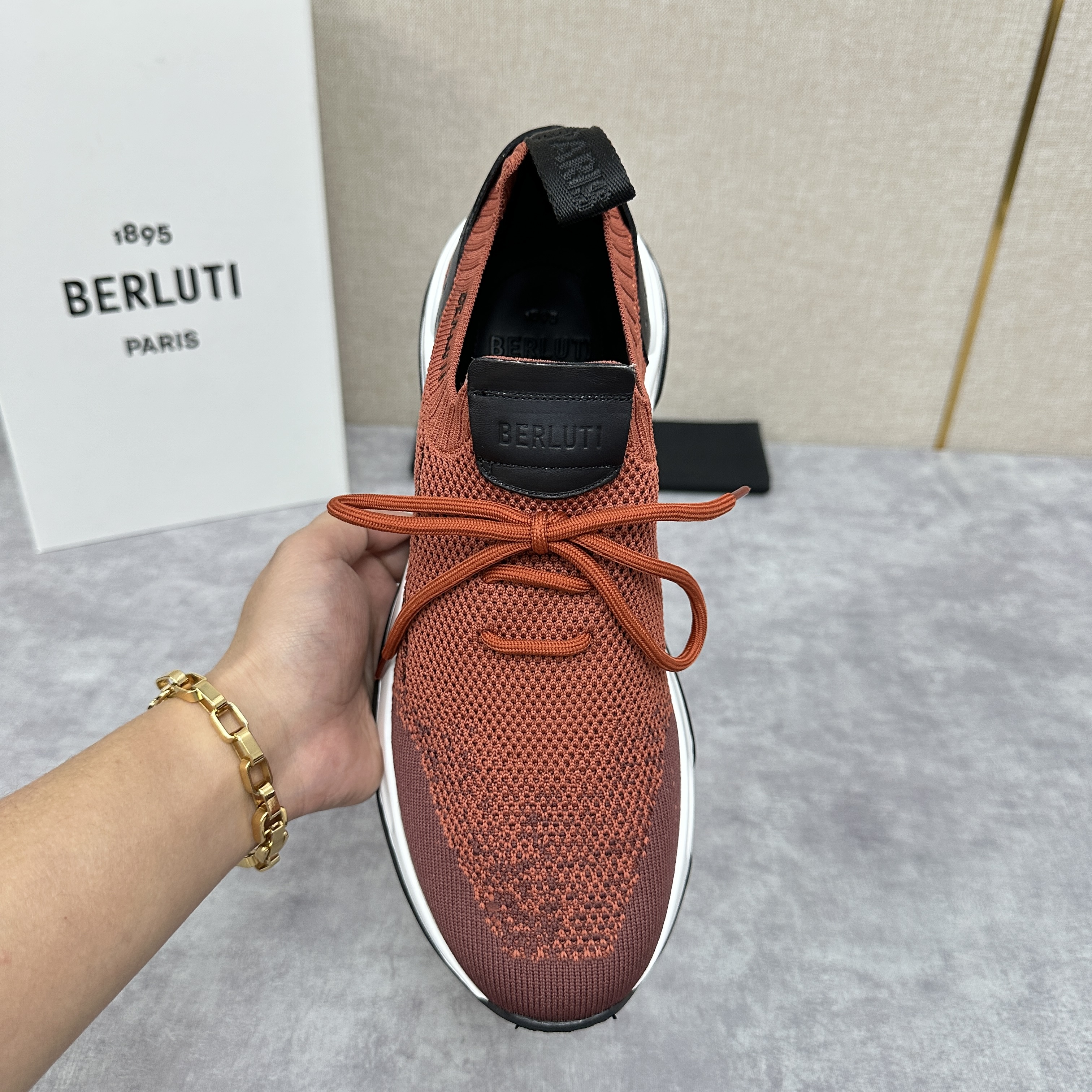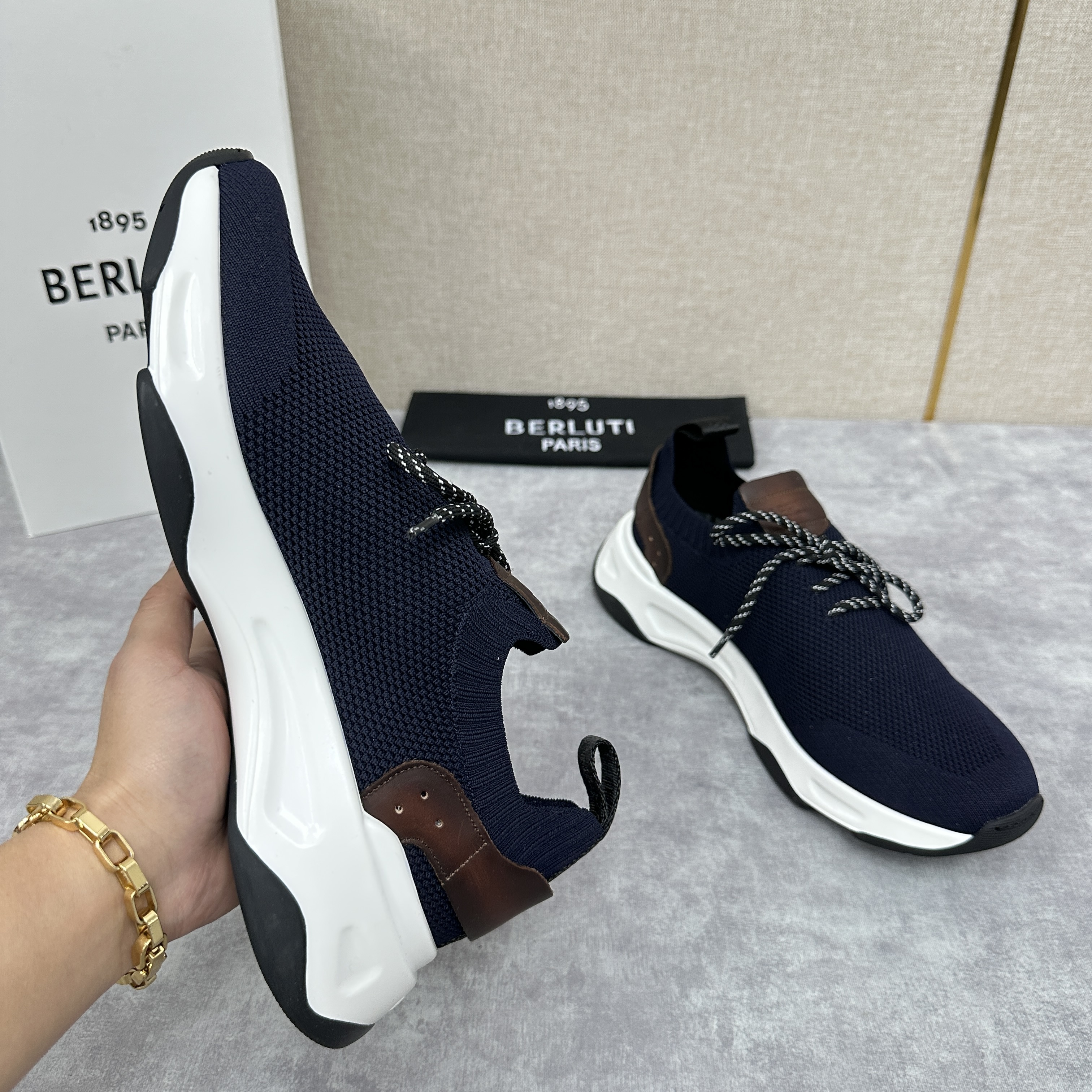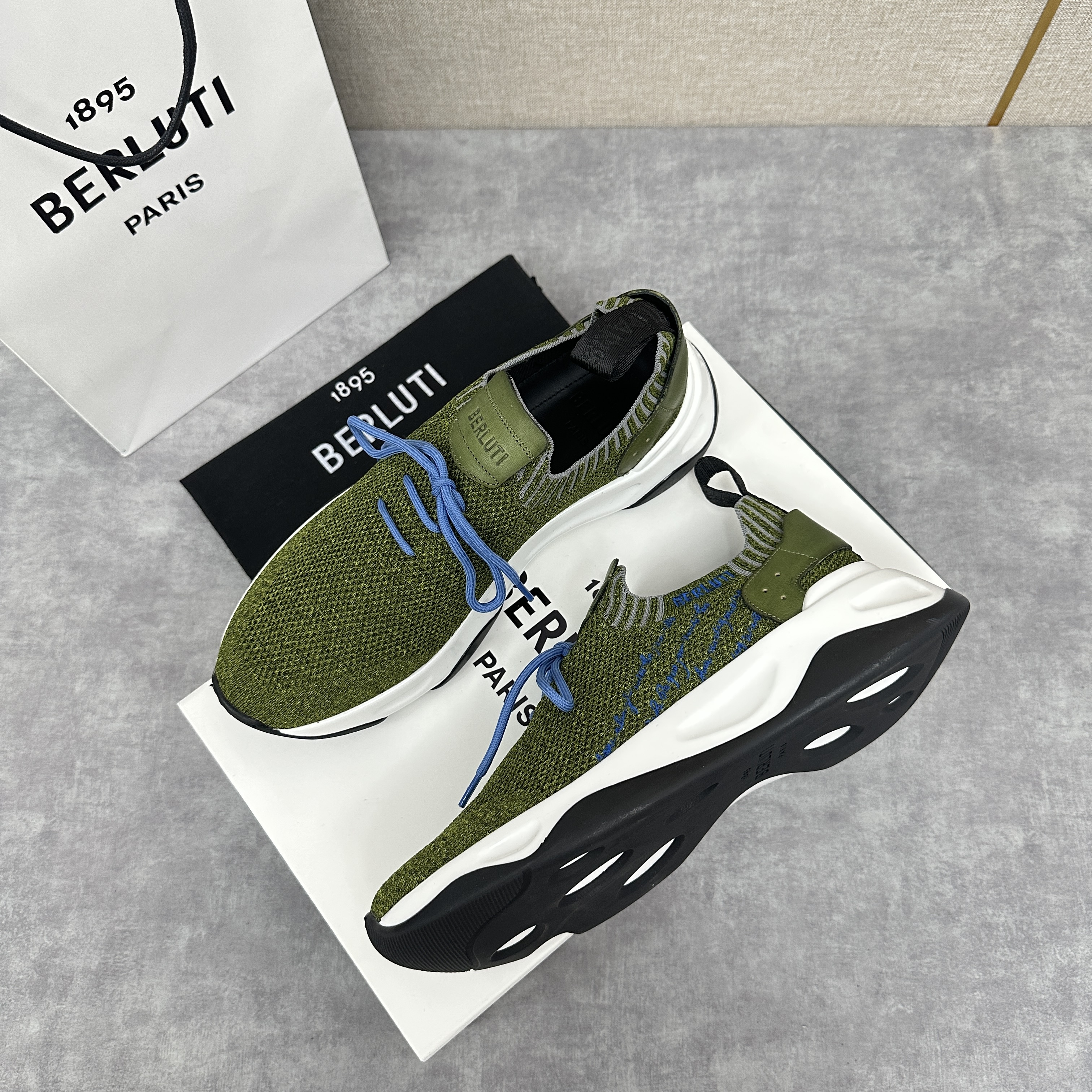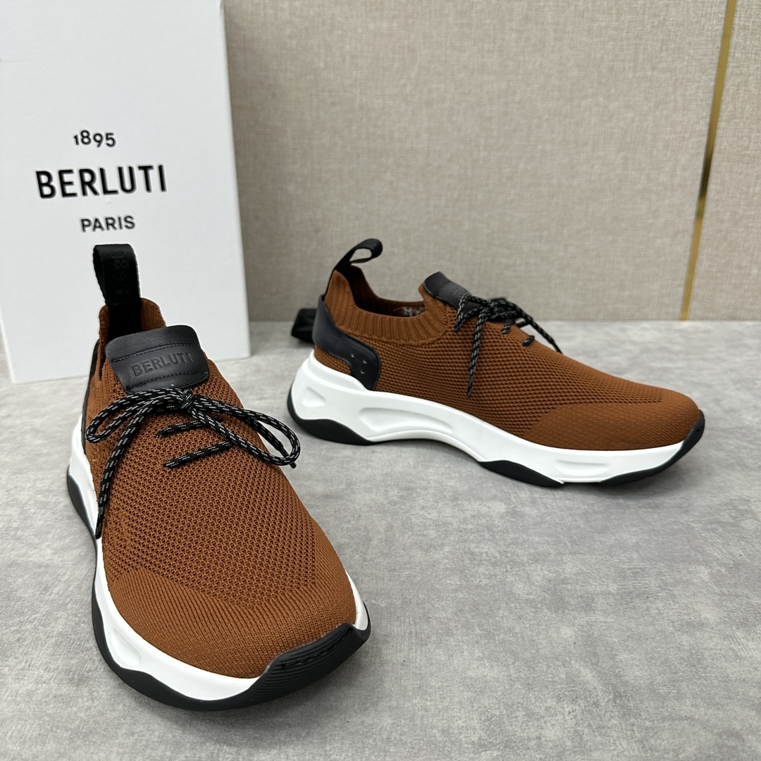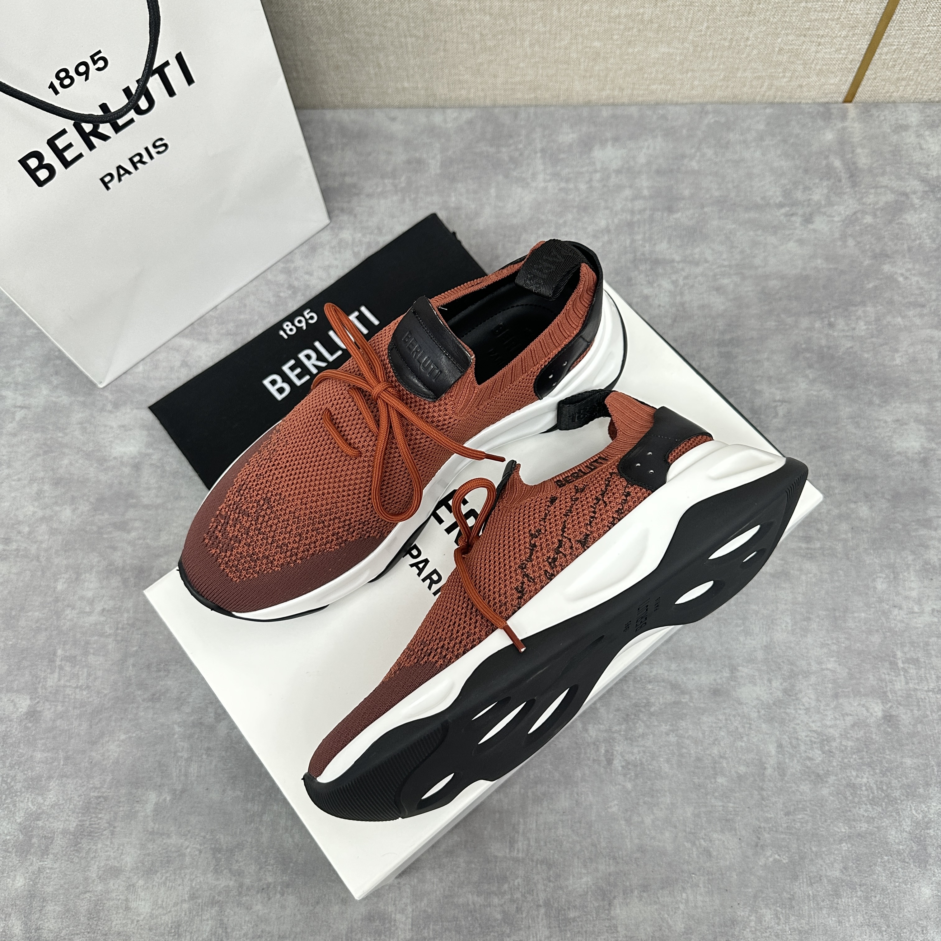 Элегантные мужские кроссовки Berluti из текстиля — сочетание инновационного дизайна и непревзойдённого комфорта. Модель выполнена из мягкого и прочного трикотажного материала, который обеспечивает отличную вентиляцию и идеально облегает ногу. Легкая подошва из вспененного материала с амортизирующим эффектом снижает нагрузку при ходьбе, а стильные кожаные вставки добавляют роскошный акцент.