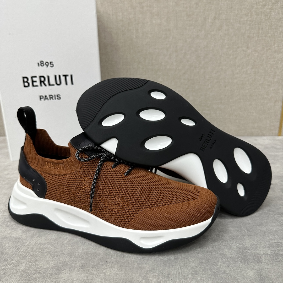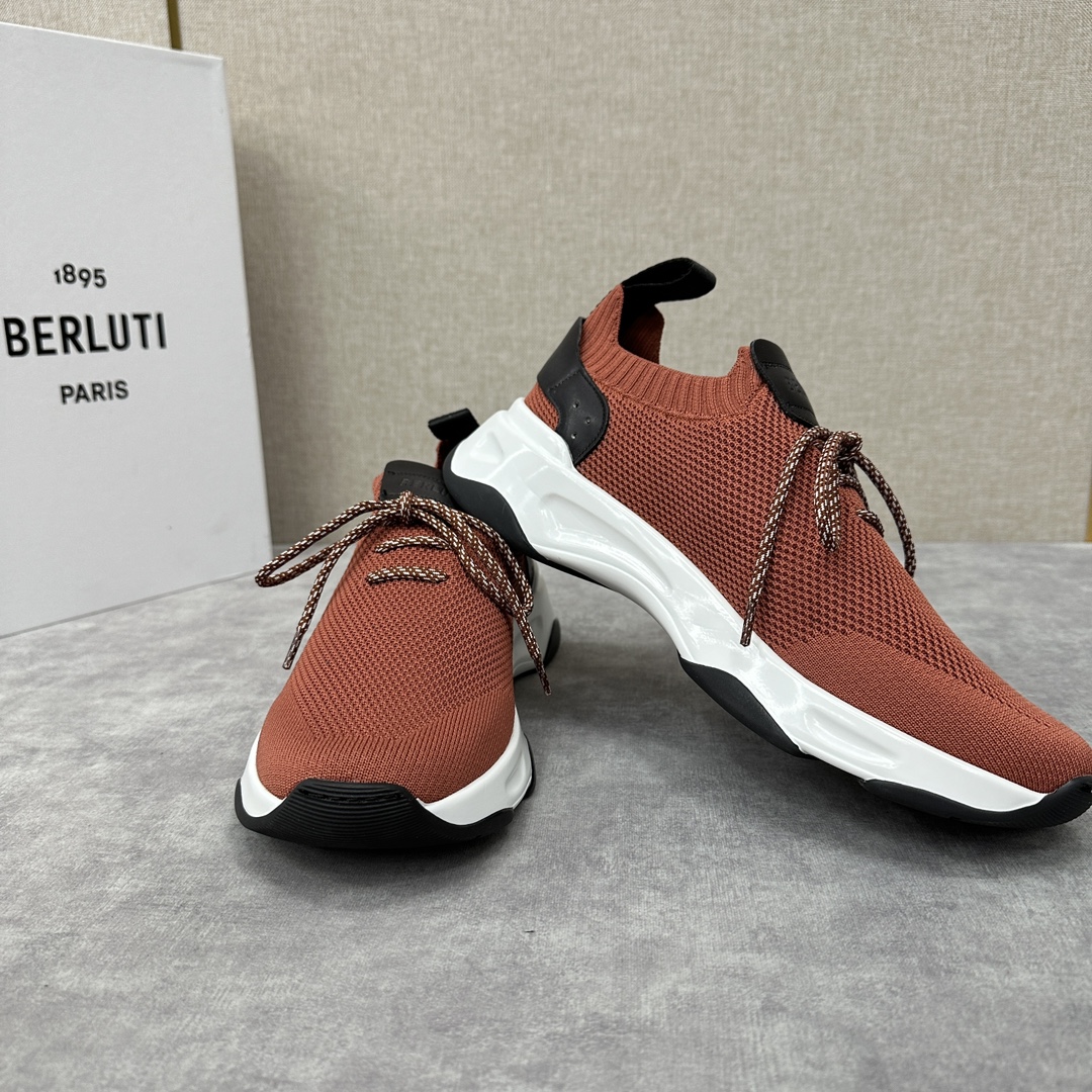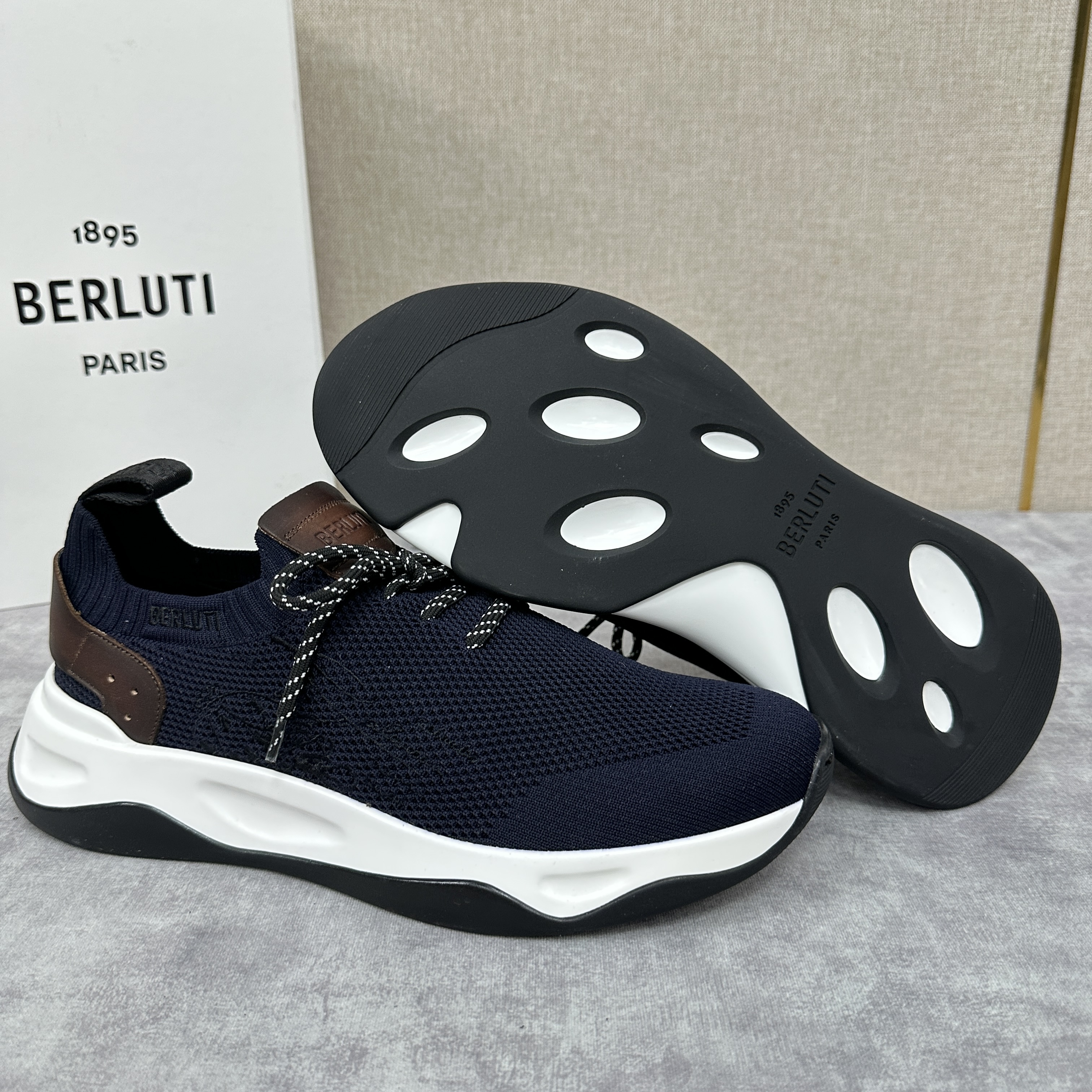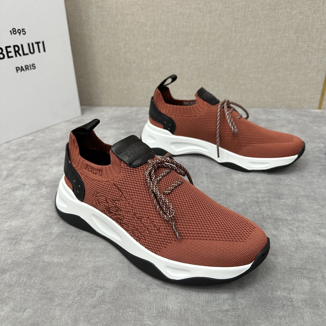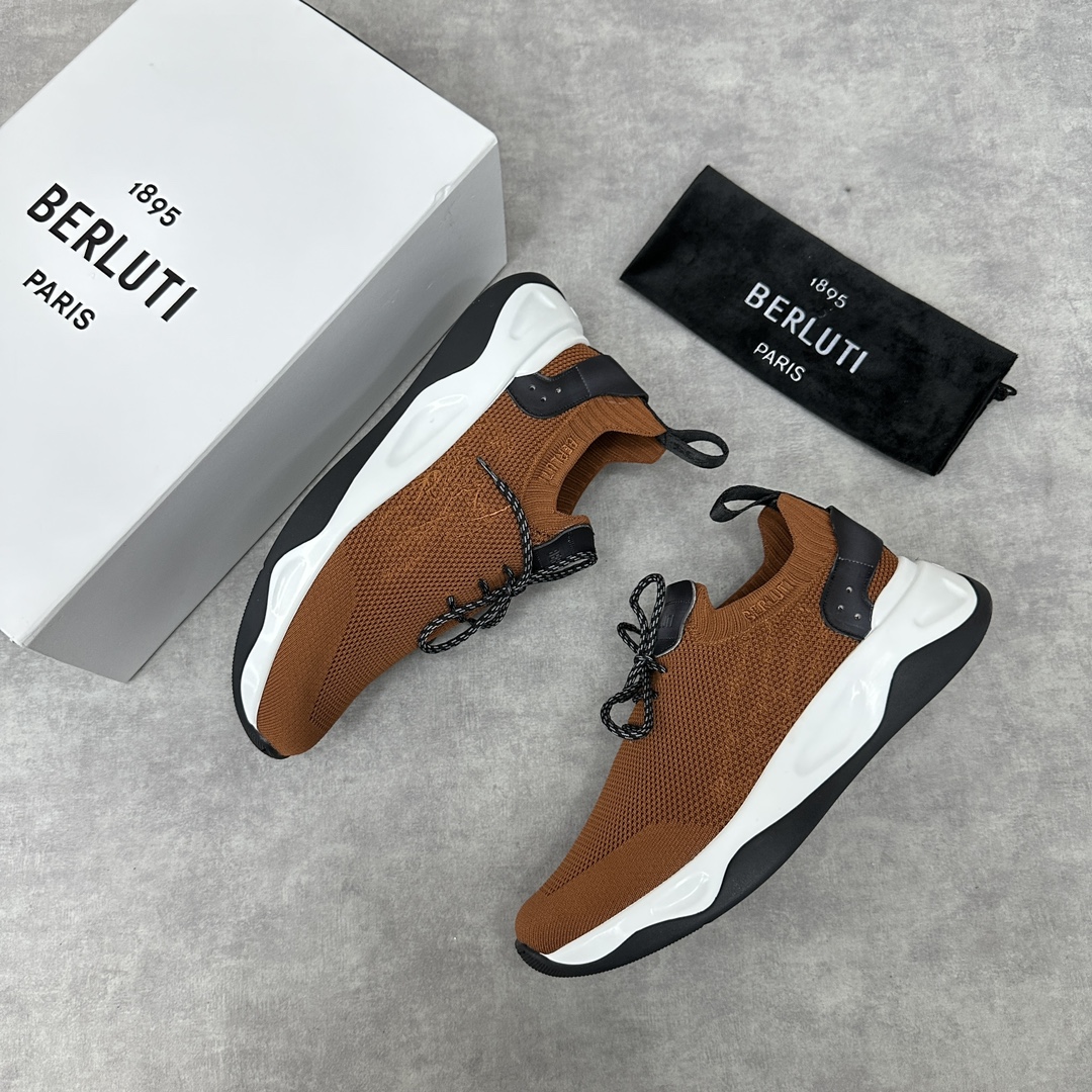 Элегантные мужские кроссовки Berluti из текстиля — сочетание инновационного дизайна и непревзойдённого комфорта. Модель выполнена из мягкого и прочного трикотажного материала, который обеспечивает отличную вентиляцию и идеально облегает ногу. Легкая подошва из вспененного материала с амортизирующим эффектом снижает нагрузку при ходьбе, а стильные кожаные вставки добавляют роскошный акцент.
