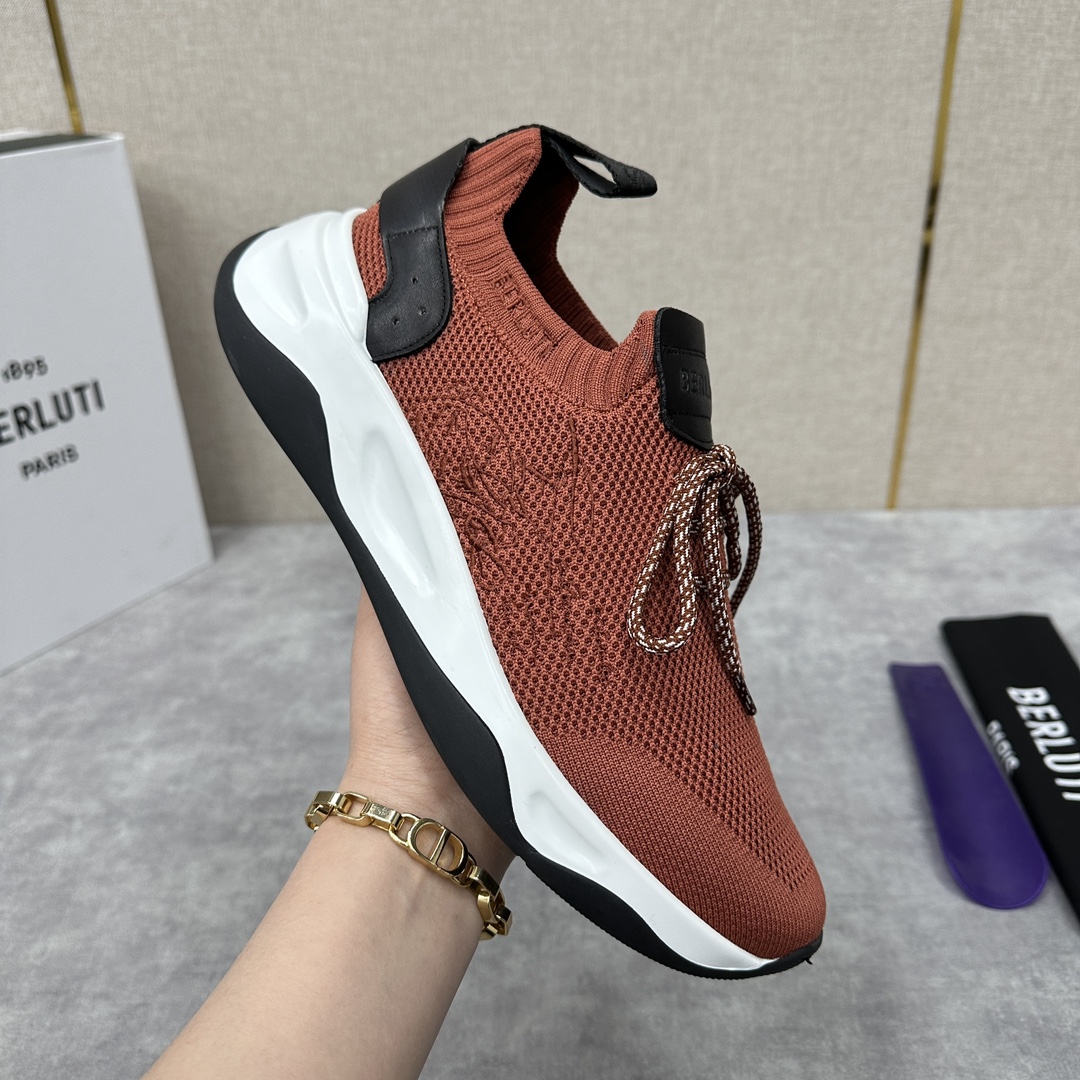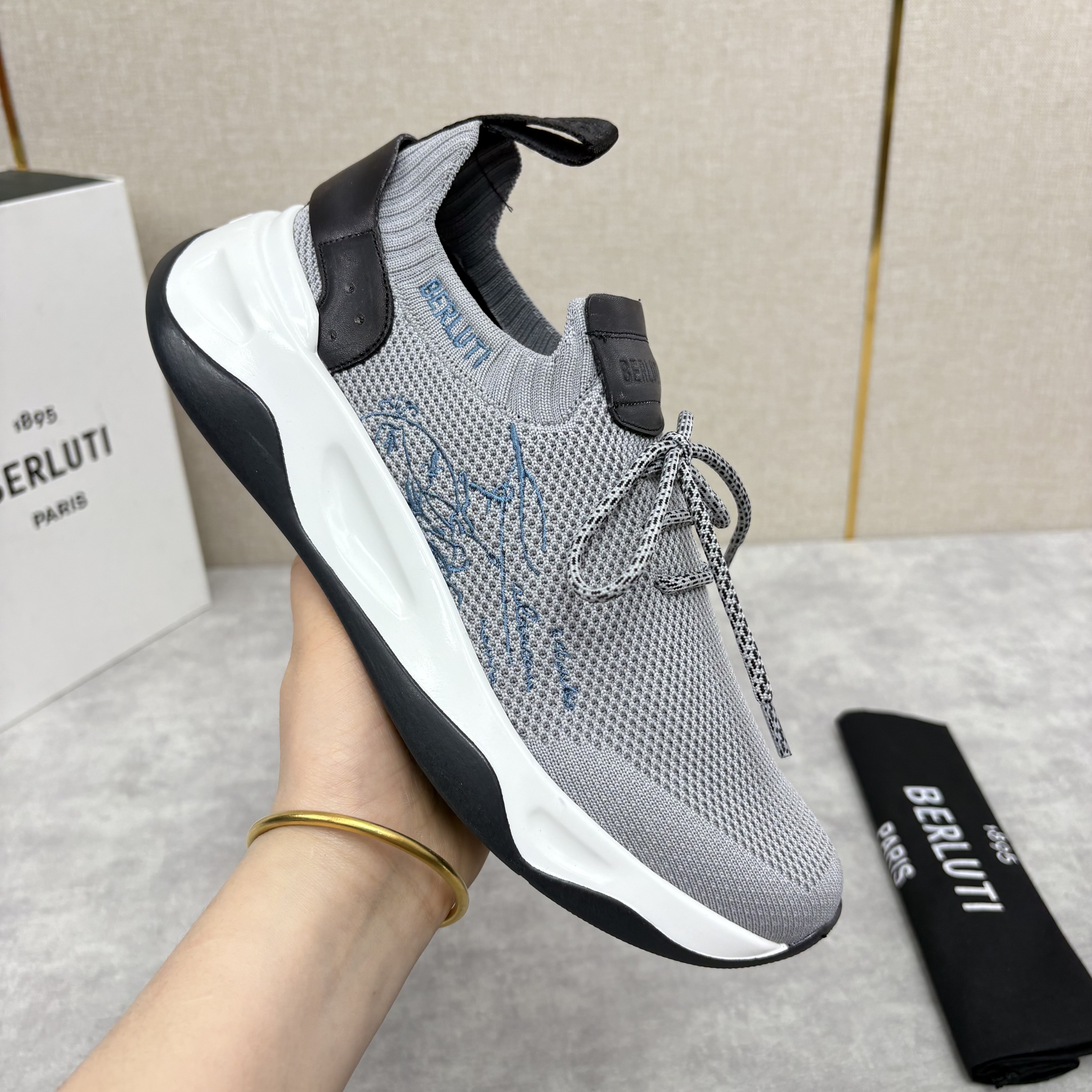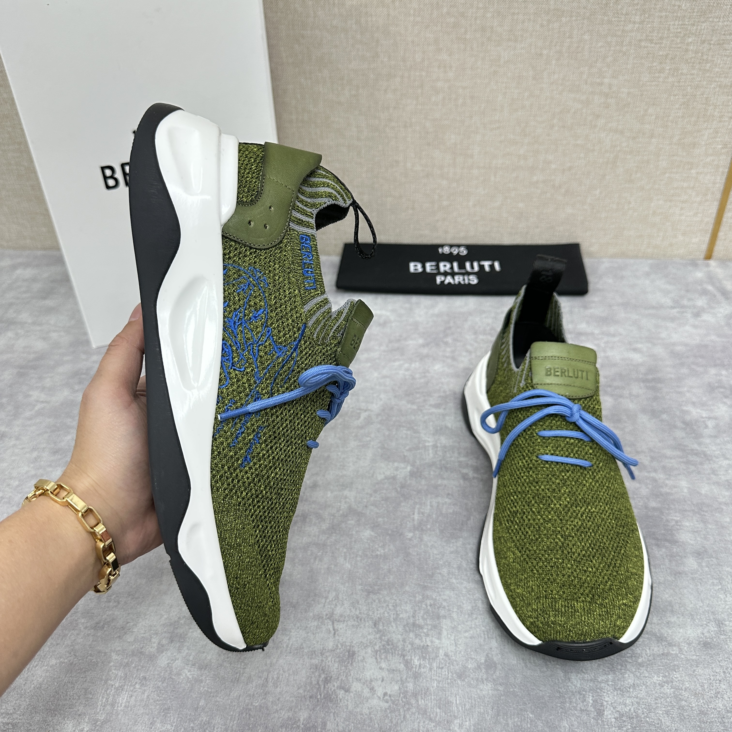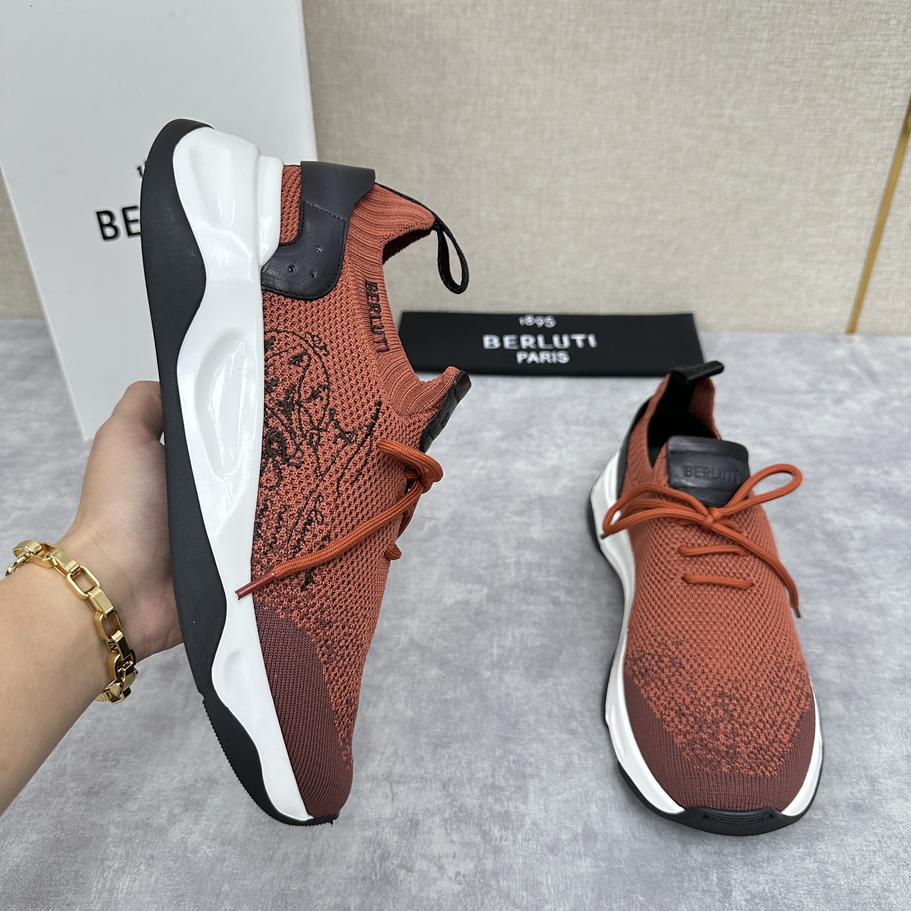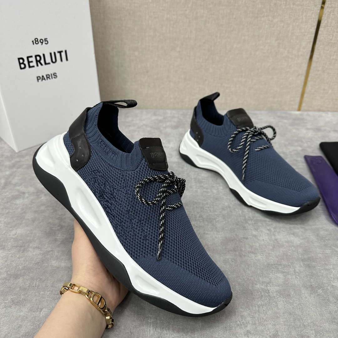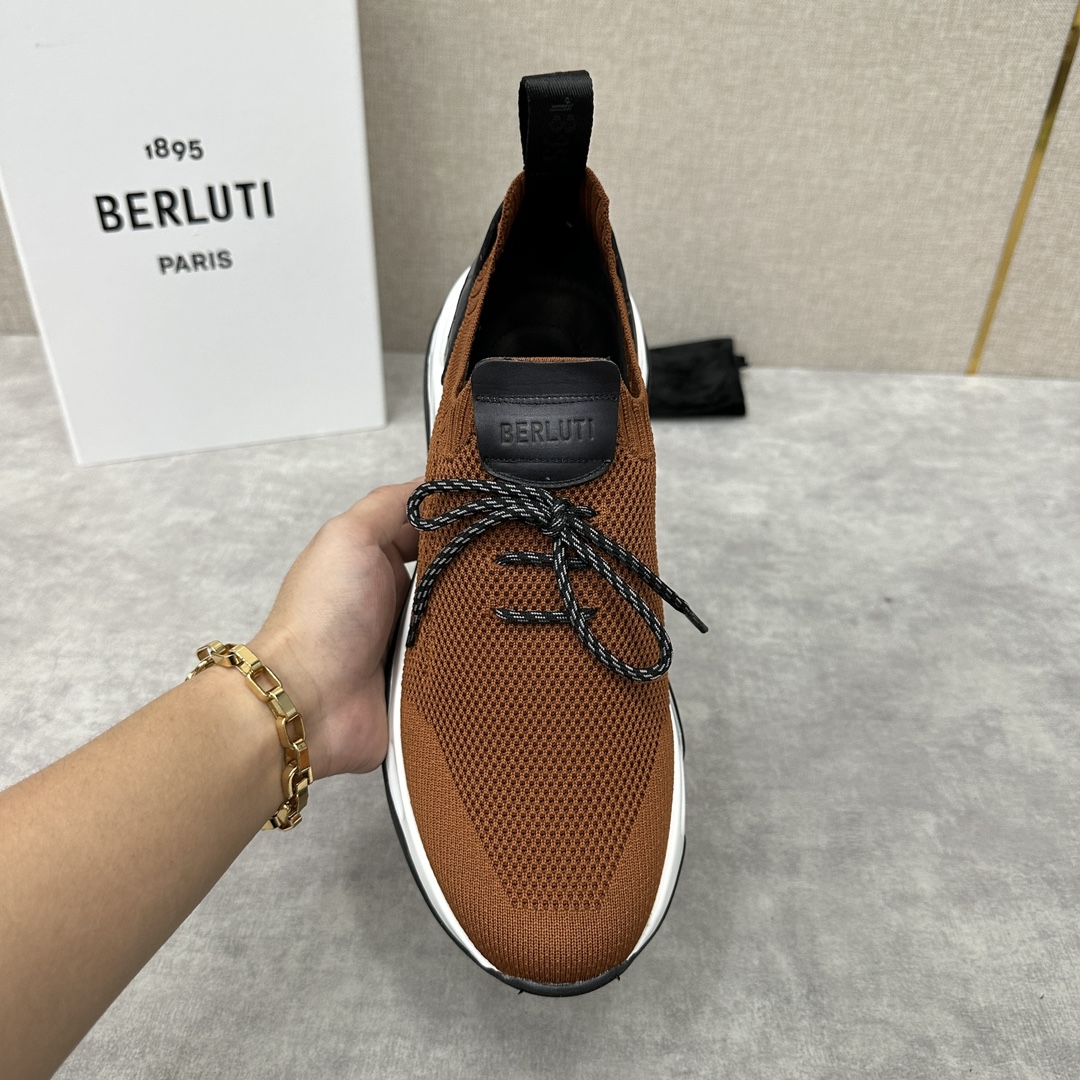Элегантные мужские кроссовки Berluti из текстиля — сочетание инновационного дизайна и непревзойдённого комфорта. Модель выполнена из мягкого и прочного трикотажного материала, который обеспечивает отличную вентиляцию и идеально облегает ногу. Легкая подошва из вспененного материала с амортизирующим эффектом снижает нагрузку при ходьбе, а стильные кожаные вставки добавляют роскошный акцент.