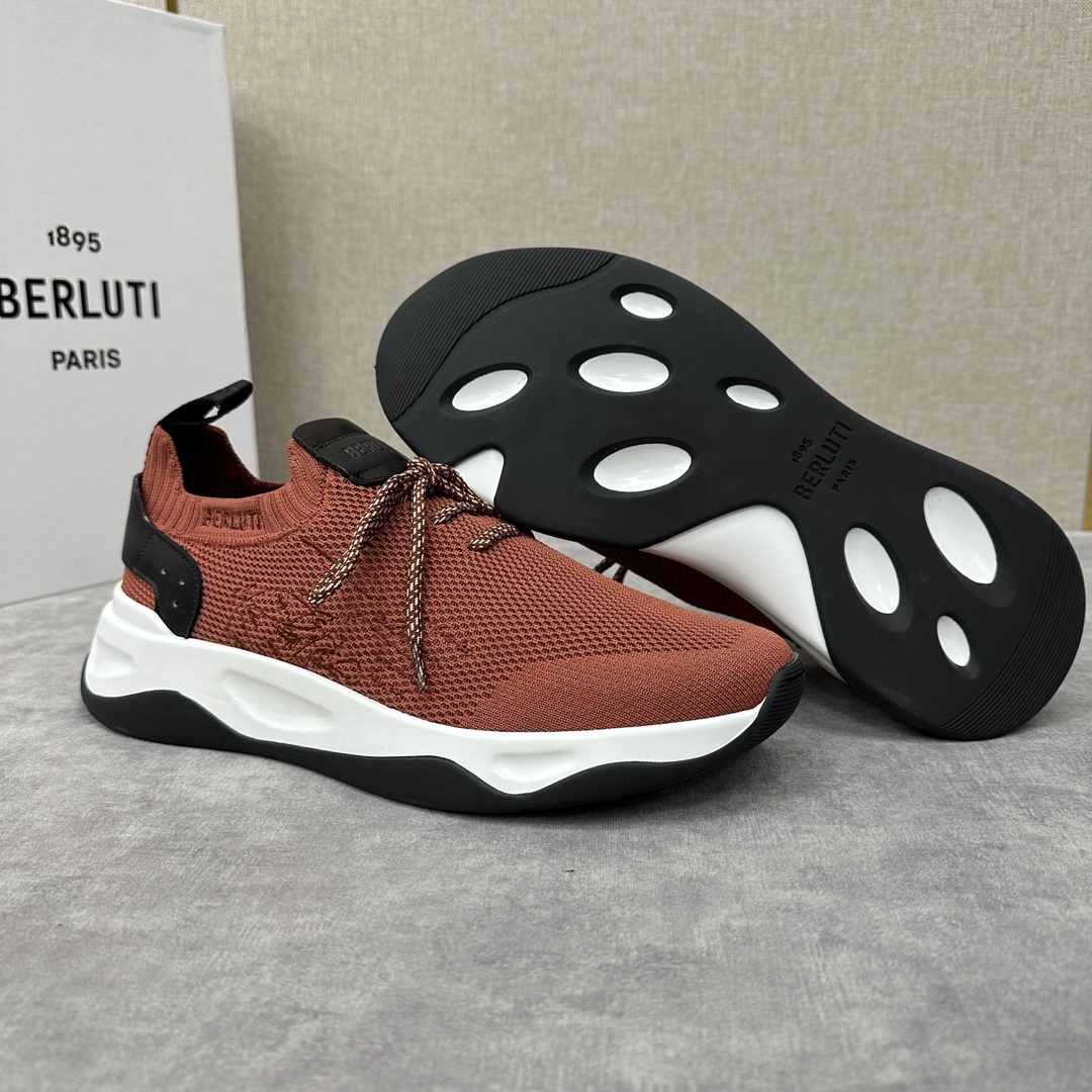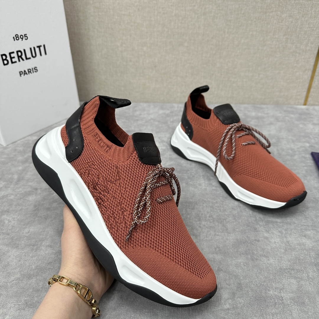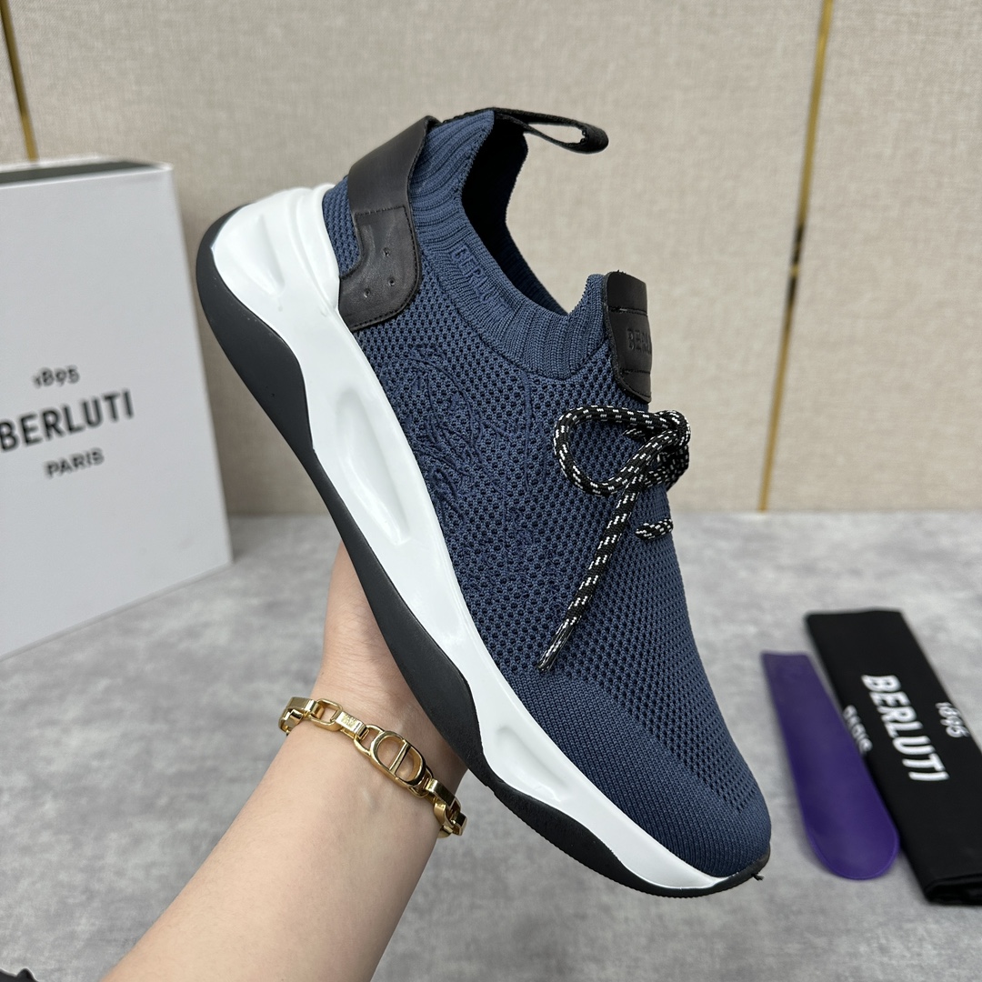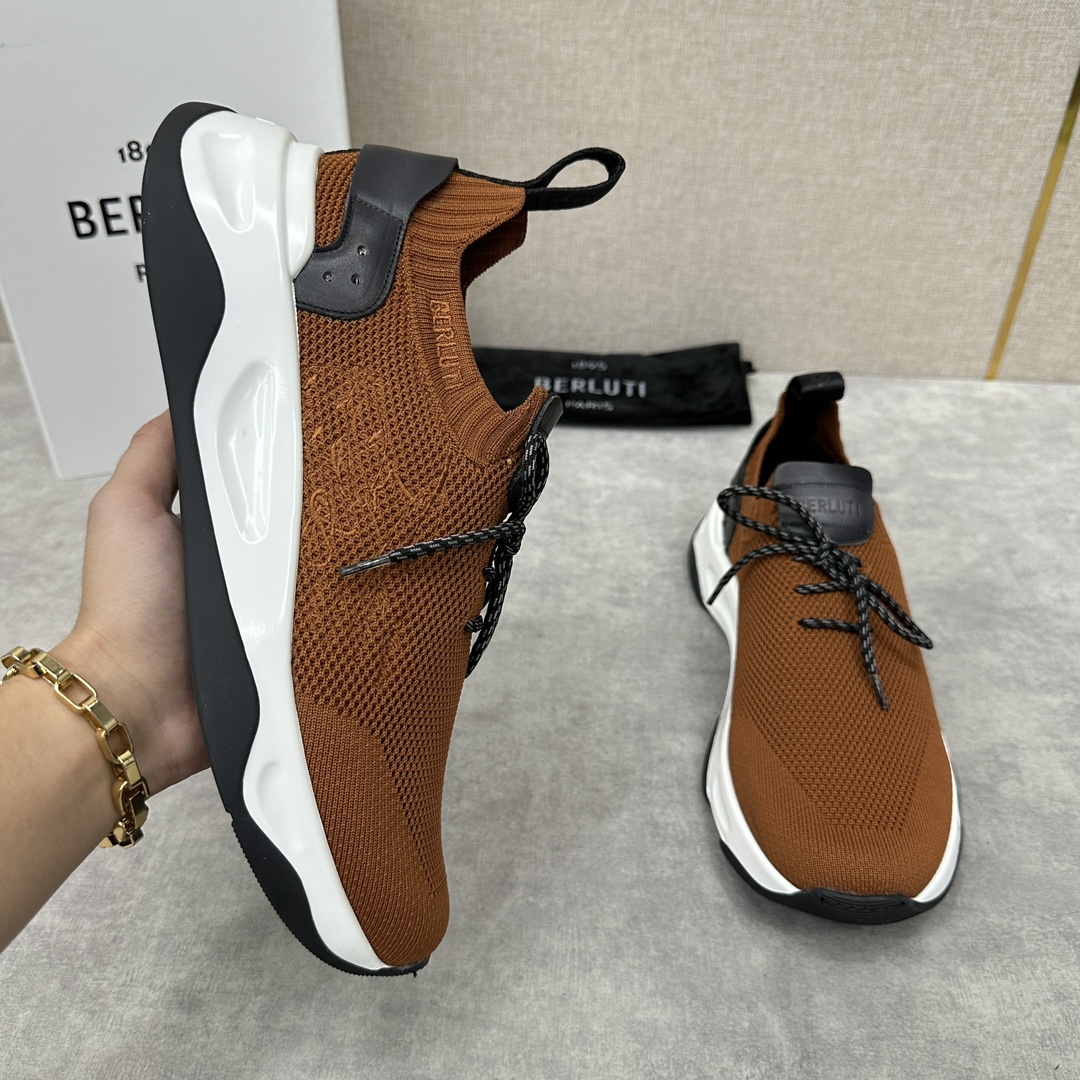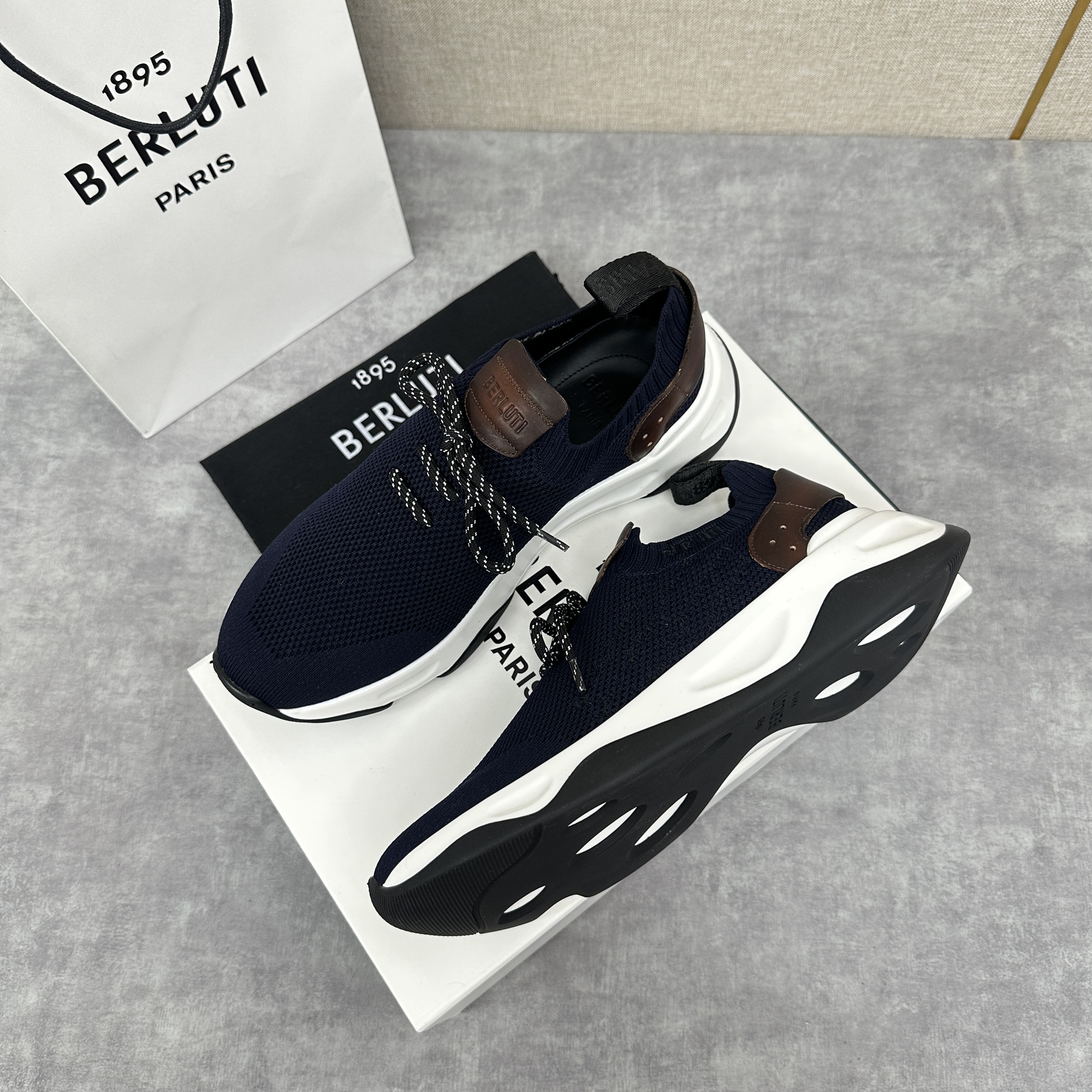 Элегантные мужские кроссовки Berluti из текстиля — сочетание инновационного дизайна и непревзойдённого комфорта. Модель выполнена из мягкого и прочного трикотажного материала, который обеспечивает отличную вентиляцию и идеально облегает ногу. Легкая подошва из вспененного материала с амортизирующим эффектом снижает нагрузку при ходьбе, а стильные кожаные вставки добавляют роскошный акцент.