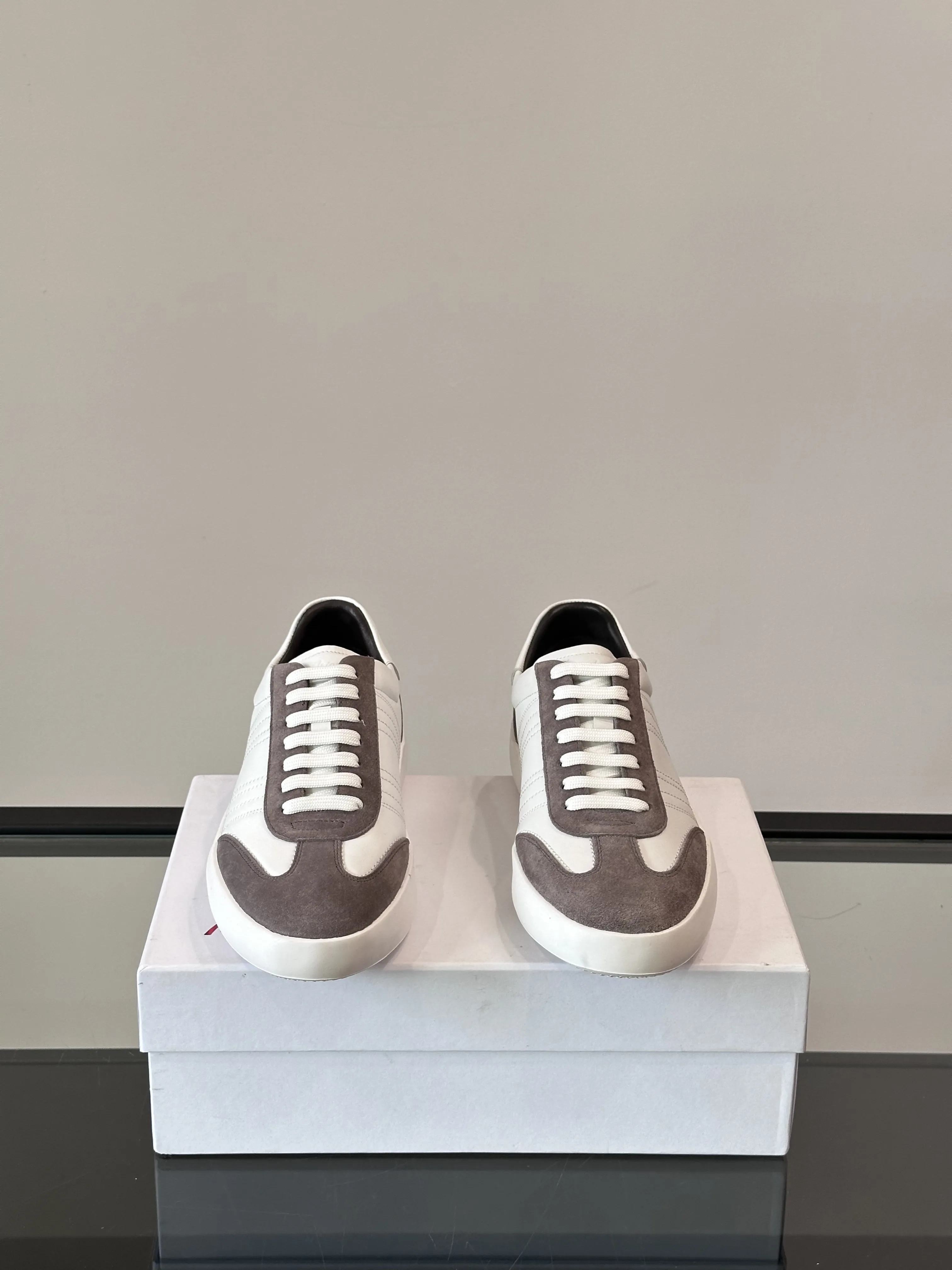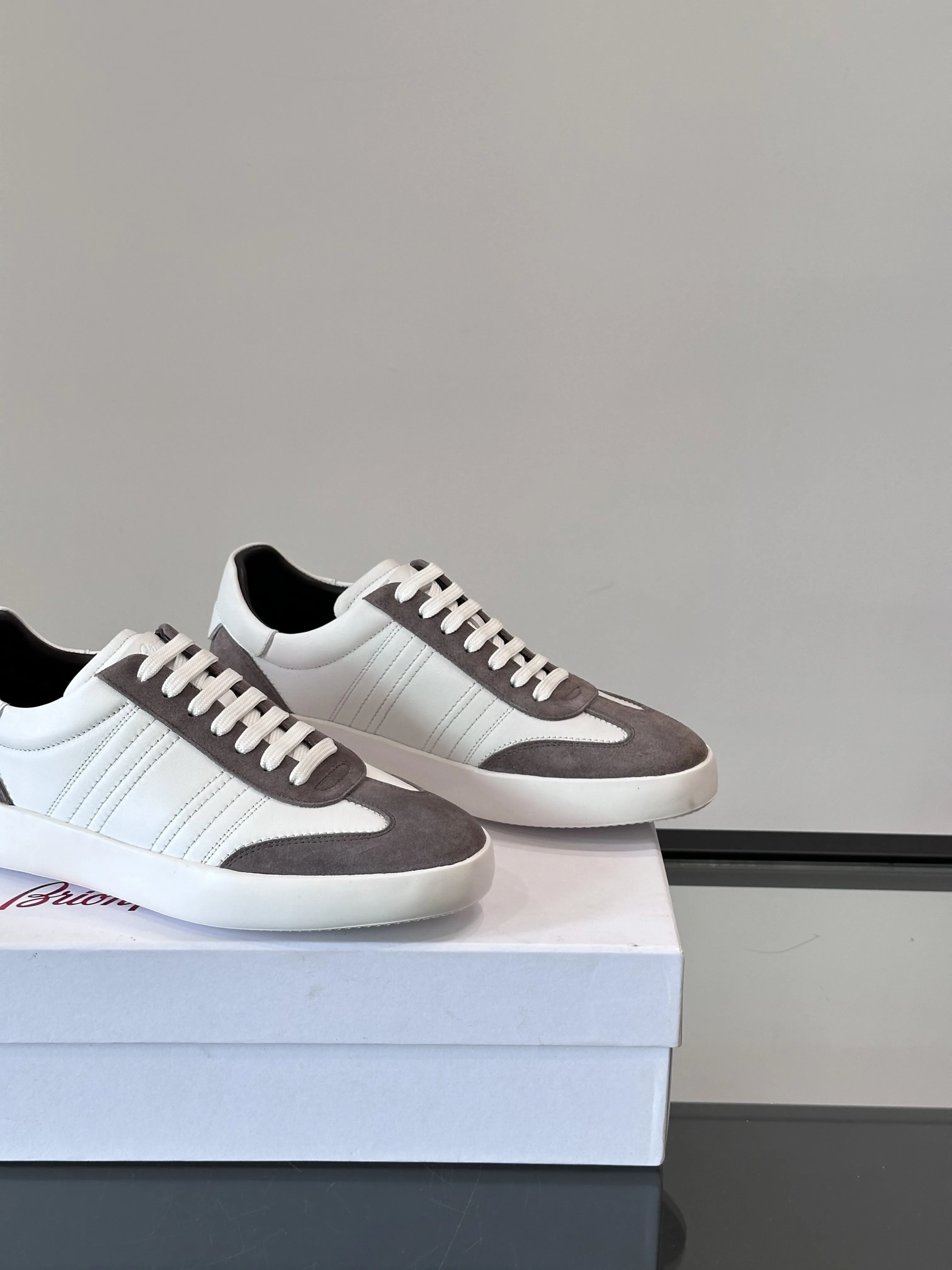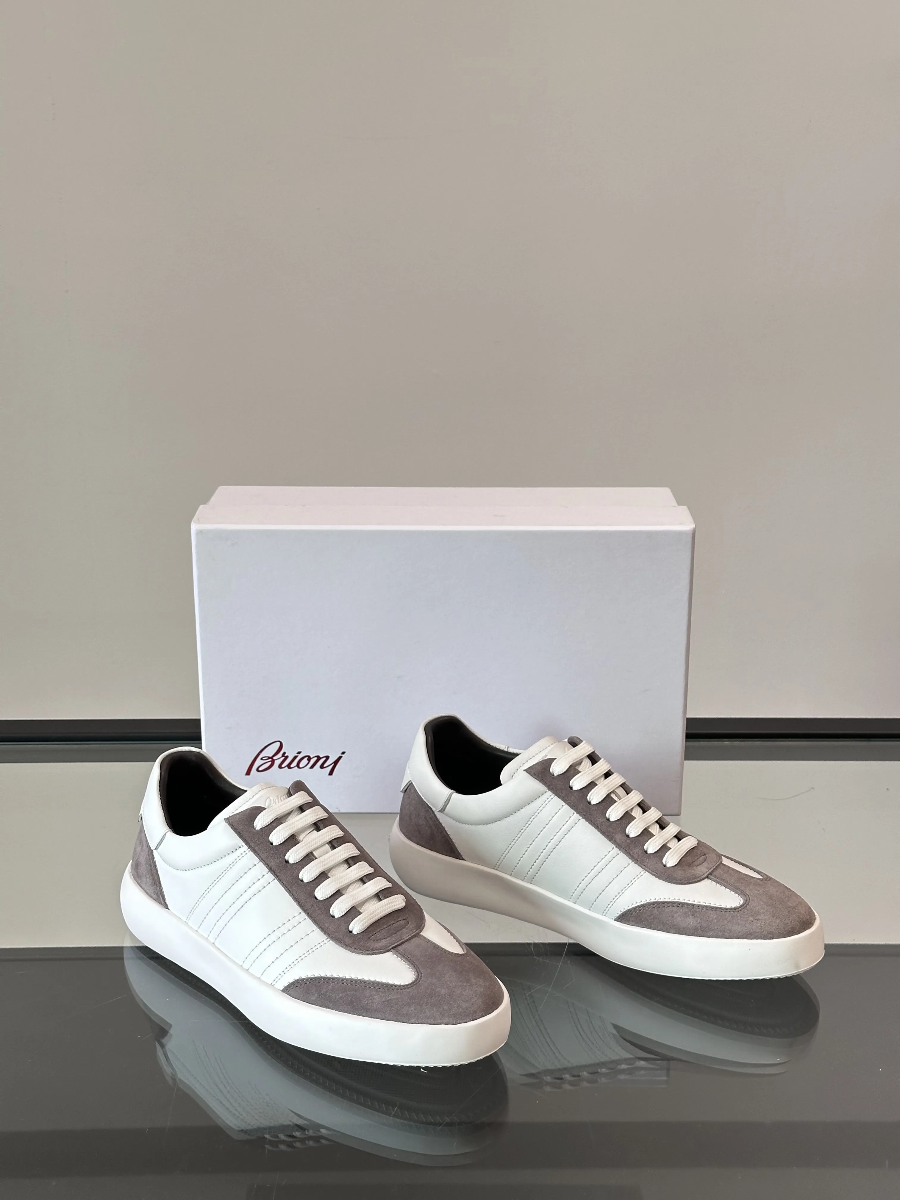 Почувствуйте непревзойденный комфорт и изысканный стиль в новых мужских кроссовках Brioni. Верх кроссовок выполнен из мягчайшей замши мерсерской выделки и роскошной телячьей кожи, что обеспечивает комфорт и долговечность. Тщательно отобранные материалы отличаются трехмерной текстурой и дарят неповторимые тактильные ощущения. Элегантный силуэт с классической М-образной формой носка делает эти кроссовки вечной инвестицией в ваш гардероб. Они никогда не выйдут из моды, оставаясь символом безупречного вкуса. Подкладка из специально обработанной телячьей кожи обеспечивает максимальный комфорт на протяжении всего дня. Съемная стелька с кожаной полувилкой украшена эксклюзивным логотипом Brioni, добавляя элемент роскоши.
