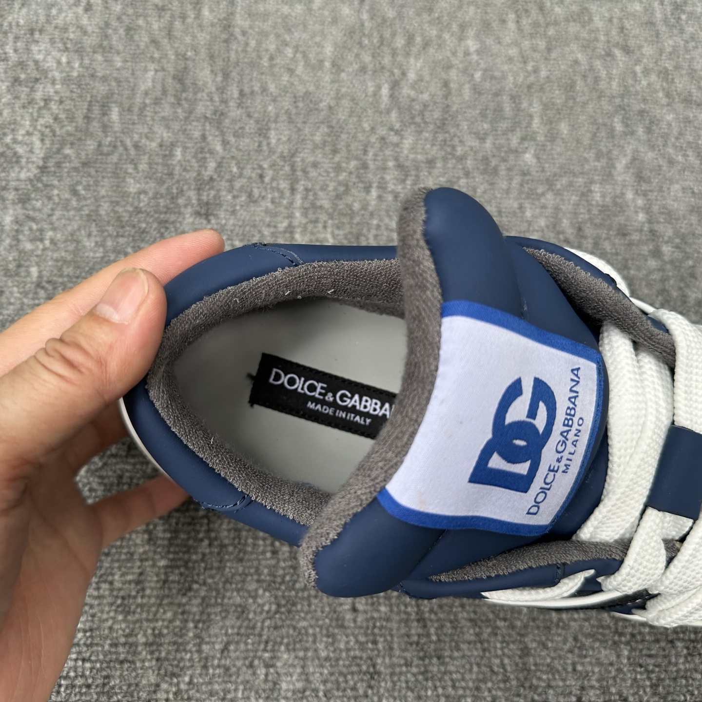 На язычке кроссовок располагается фирменный лейбл с логотипом DG и надписью Dolce Gabbana, выполненные в синей гамме, что подчеркивает эксклюзивность и узнаваемость бренда. Перфорация на мысе обеспечивает дополнительную вентиляцию, а мягкая внутренняя подкладка заботится о комфорте на протяжении всего дня.